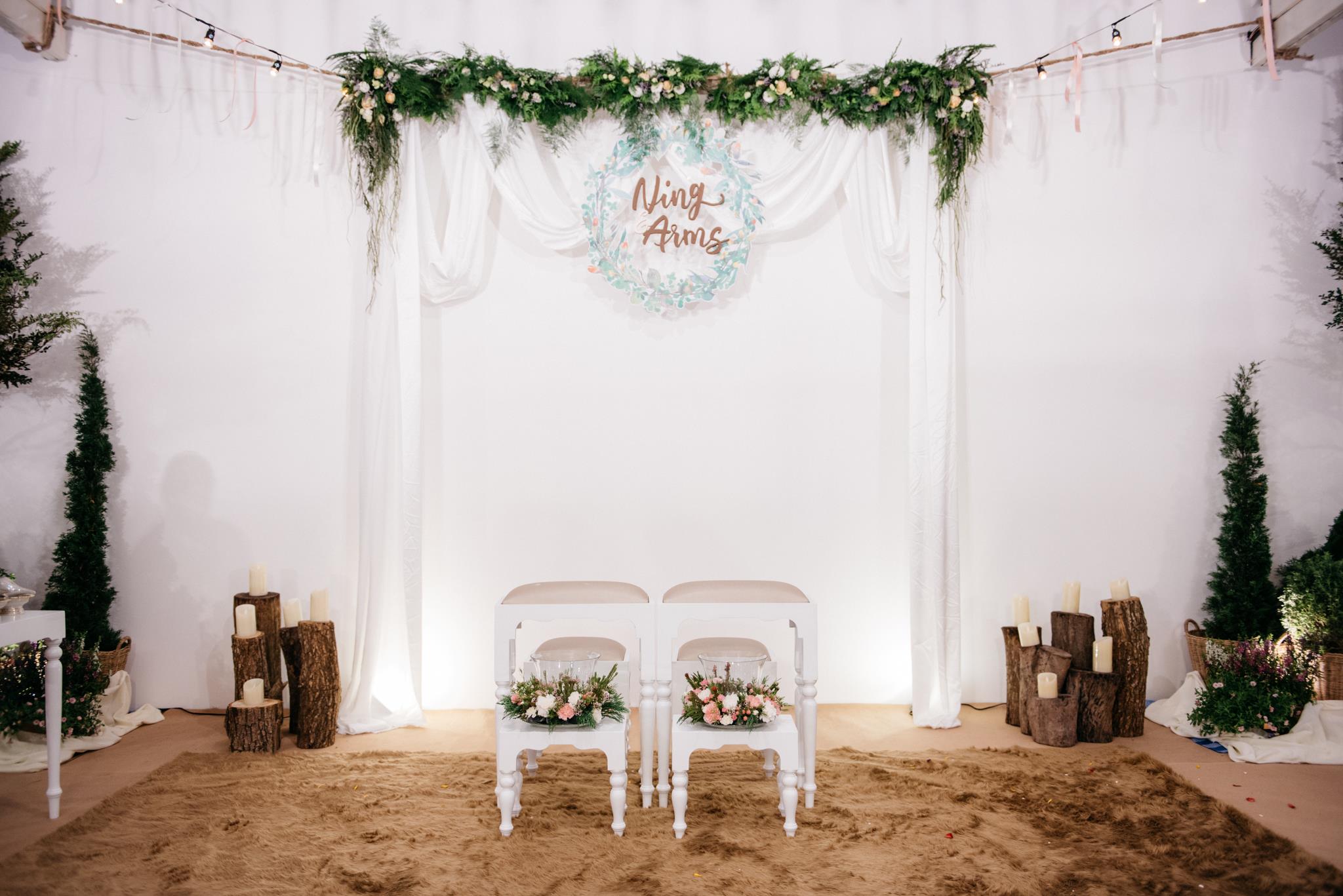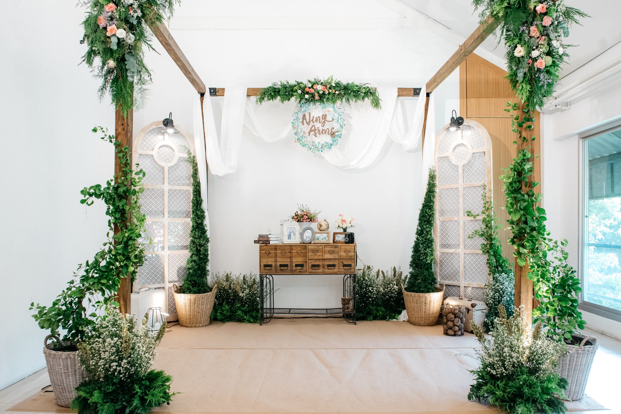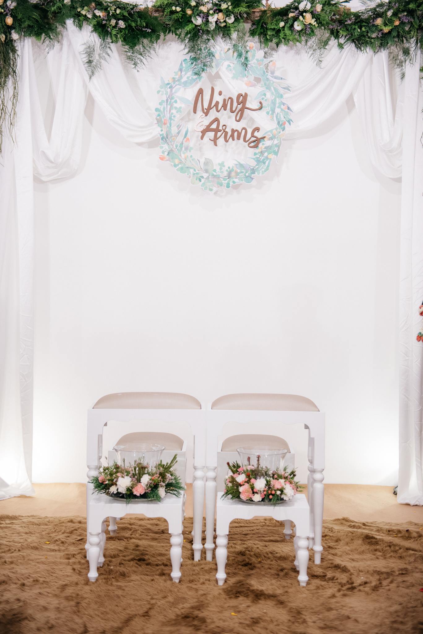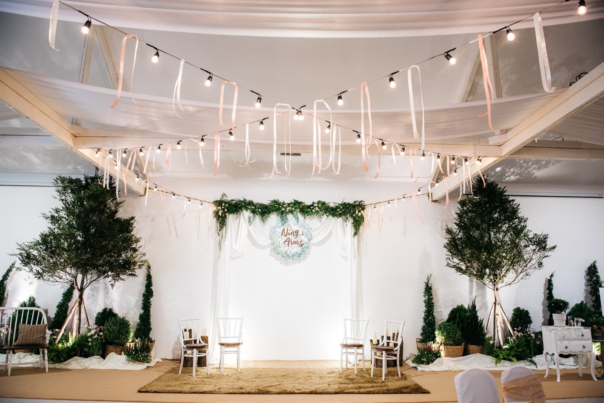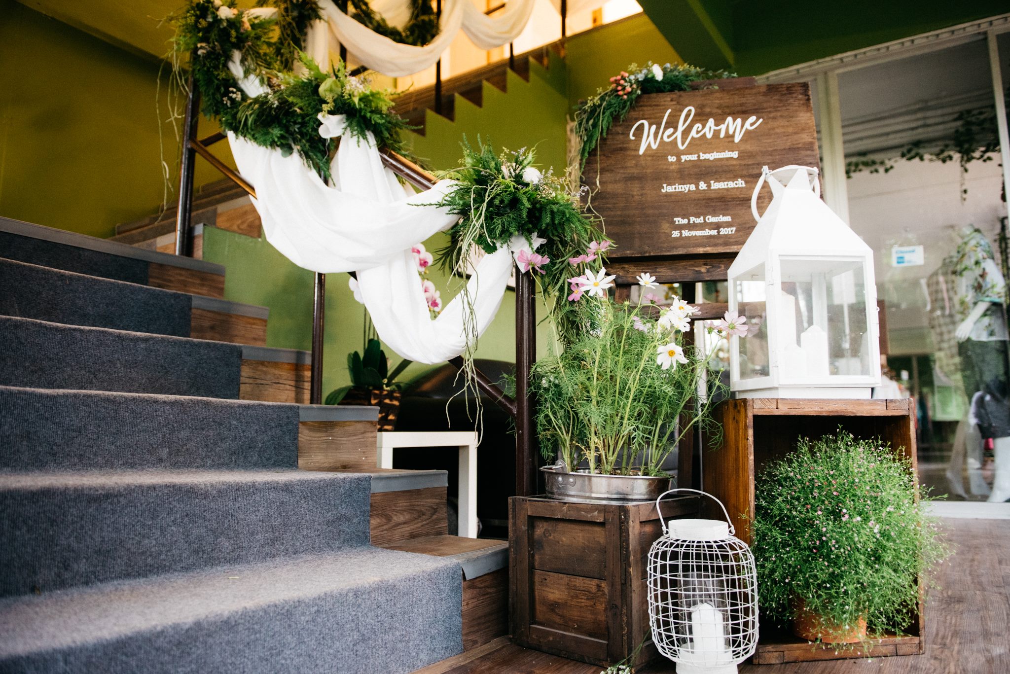 ก่อนอื่นต้องขอขอบคุณบ่าวสาวทั้งคุณอาร์มและคุณหนิงที่ไว้วาง ใจให้ Shabby Chic Gardens ได้ดูแลงานตกแต่งสถานที่ทั้งหมด งานนี้เหมือนเป็นการยกสวนไปไว้ในห้องจัดเลี้ยงกันเลยทีเดียว เนื่องจากเจ้าสาวเน้นว่าของสวนเอาซะมากๆ นุ่นเลยออกแบบให้เหมือนมีสวนเป็นฉากหลังในห้องสีขาวสะอาดตา ที่หนักหนาสาหัสหน่อยคือการยกต้นไม้ใหญ่เข้าไปไว้ในห้องจัดเลี้ยงที่อยู่บนชั้นสอง ไม่ใช่เรื่องง่ายแต่ก็ไม่ยากเกินความสามารถของพวกเรา 555555 ทีมงานเราสามารถค่ะ (ขอพักแพร๊บ) เวทีสำหรับงานพิธีการจึงออกมาสวยสมดังที่เจ้าสาวตั้งใจ ส่วนเจ้าบ่าวก็ไม่น้อยหน้า เพราะรูปภาพที่นำมาใช้ตกแต่งในงานเจ้าบ่าวเป็นคนคลีเอทโทนสีและปรับภาพให้ดูเข้ากับงานด้วยตัวเองเลย งานนี้จึงเหมือนเป็นการร่วมมือกันของทุกฝ่าย ลองไปชมภาพพร้อมๆ กันค่ะ