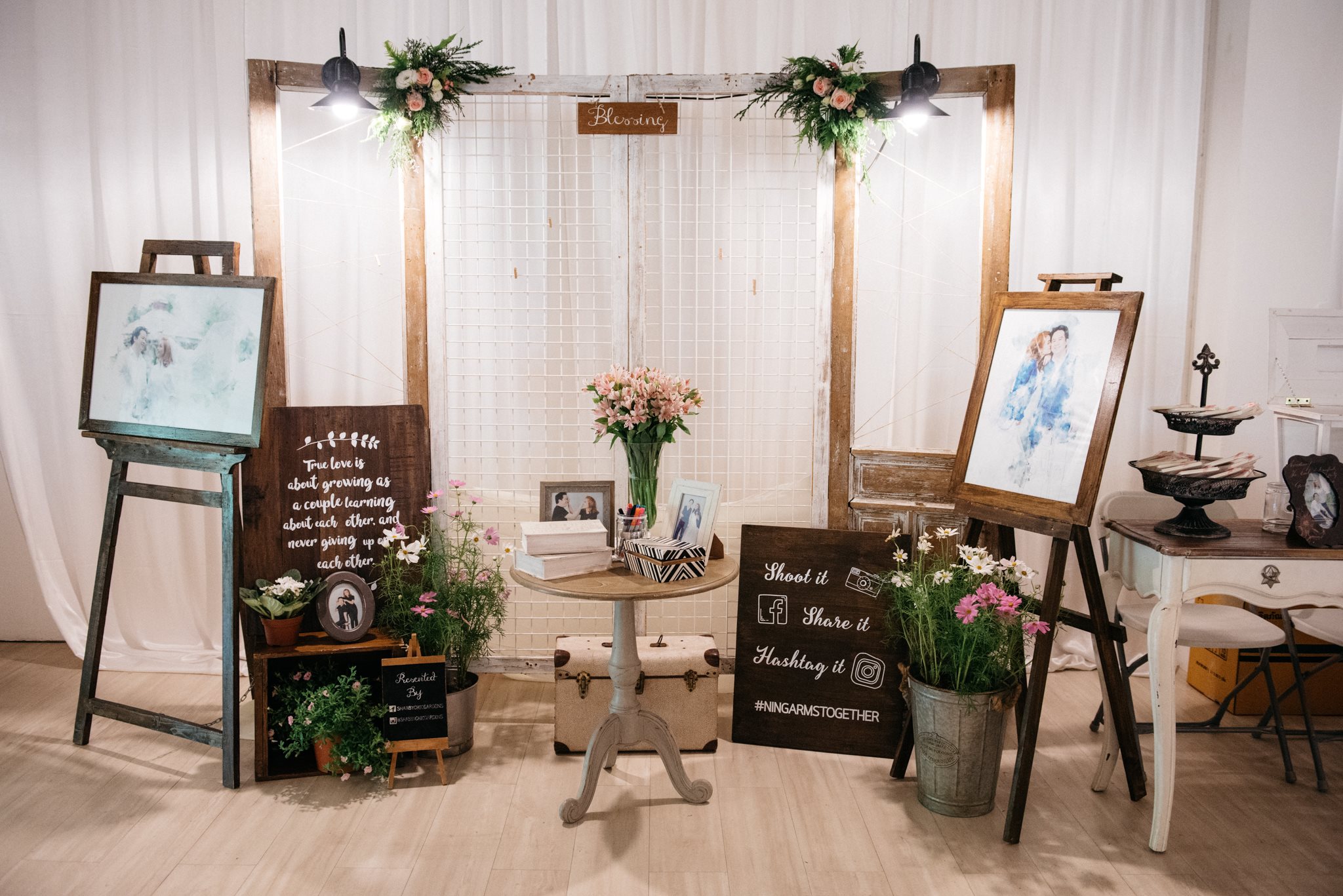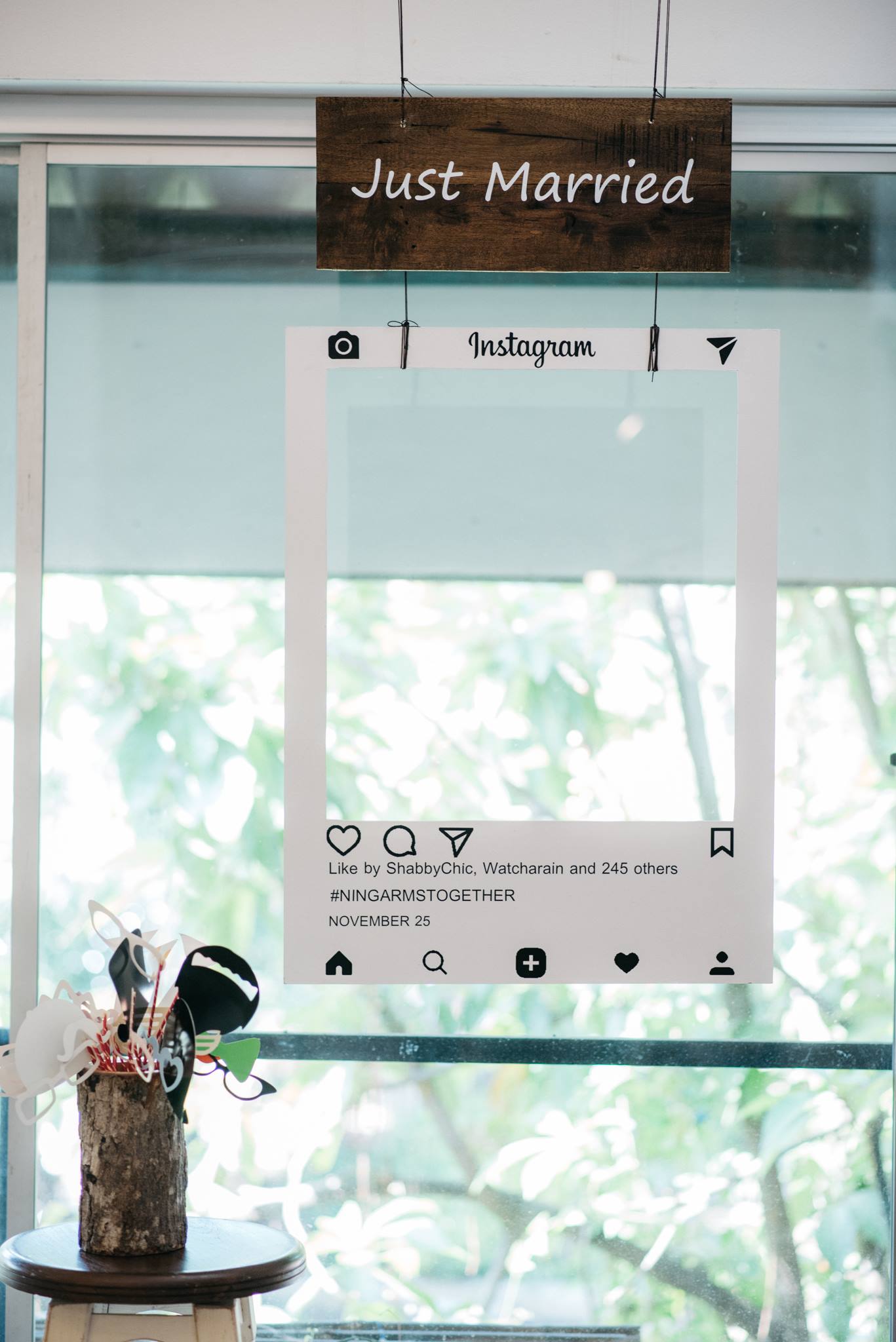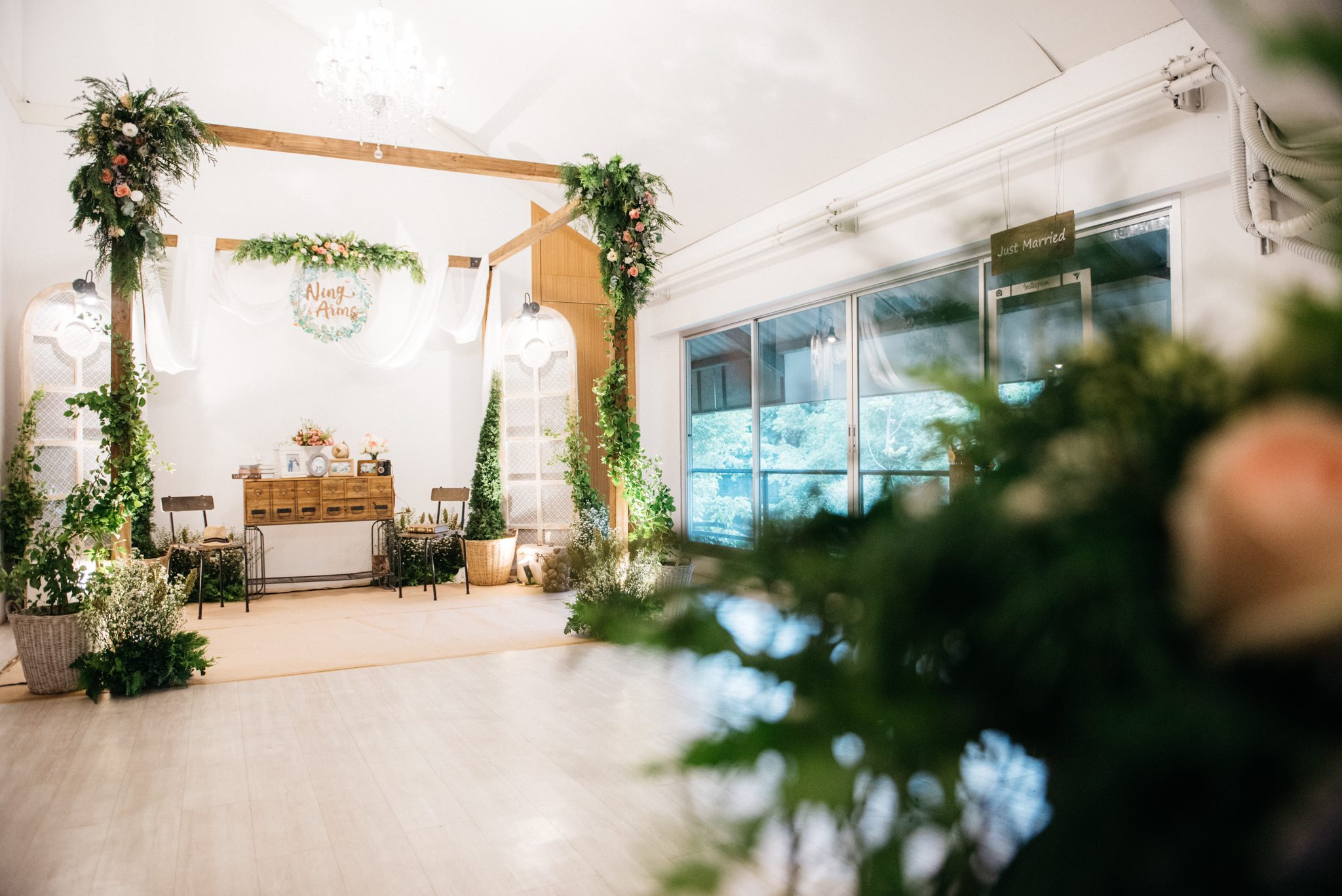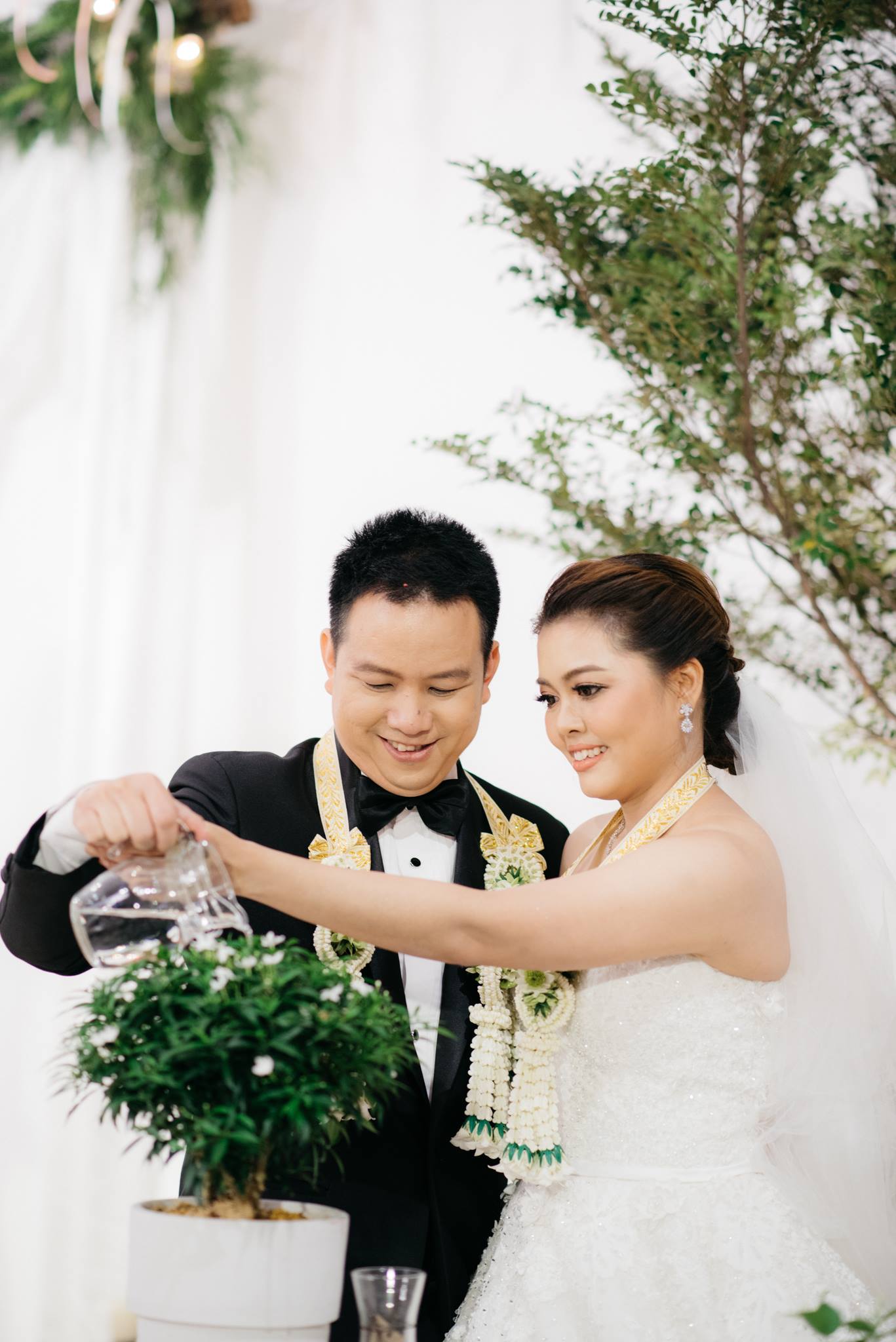 ก่อนอื่นต้องขอขอบคุณบ่าวสาวทั้งคุณอาร์มและคุณหนิงที่ไว้วาง ใจให้ Shabby Chic Gardens ได้ดูแลงานตกแต่งสถานที่ทั้งหมด งานนี้เหมือนเป็นการยกสวนไปไว้ในห้องจัดเลี้ยงกันเลยทีเดียว เนื่องจากเจ้าสาวเน้นว่าของสวนเอาซะมากๆ นุ่นเลยออกแบบให้เหมือนมีสวนเป็นฉากหลังในห้องสีขาวสะอาดตา ที่หนักหนาสาหัสหน่อยคือการยกต้นไม้ใหญ่เข้าไปไว้ในห้องจัดเลี้ยงที่อยู่บนชั้นสอง ไม่ใช่เรื่องง่ายแต่ก็ไม่ยากเกินความสามารถของพวกเรา 555555 ทีมงานเราสามารถค่ะ (ขอพักแพร๊บ) เวทีสำหรับงานพิธีการจึงออกมาสวยสมดังที่เจ้าสาวตั้งใจ ส่วนเจ้าบ่าวก็ไม่น้อยหน้า เพราะรูปภาพที่นำมาใช้ตกแต่งในงานเจ้าบ่าวเป็นคนคลีเอทโทนสีและปรับภาพให้ดูเข้ากับงานด้วยตัวเองเลย งานนี้จึงเหมือนเป็นการร่วมมือกันของทุกฝ่าย ลองไปชมภาพพร้อมๆ กันค่ะ