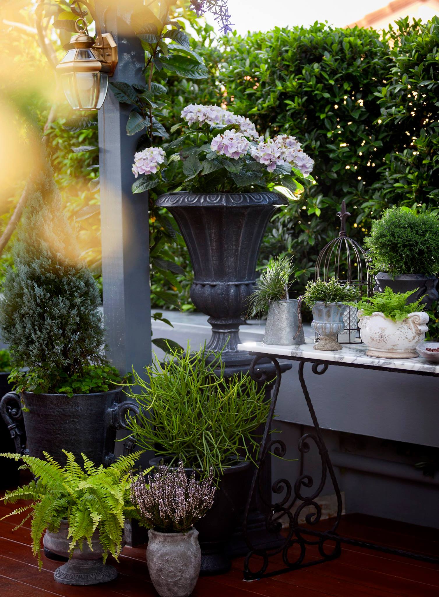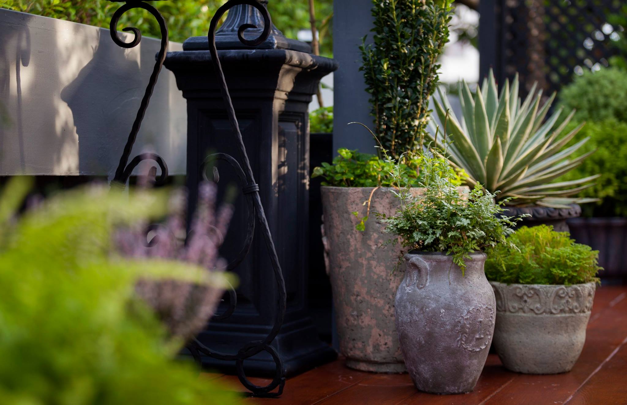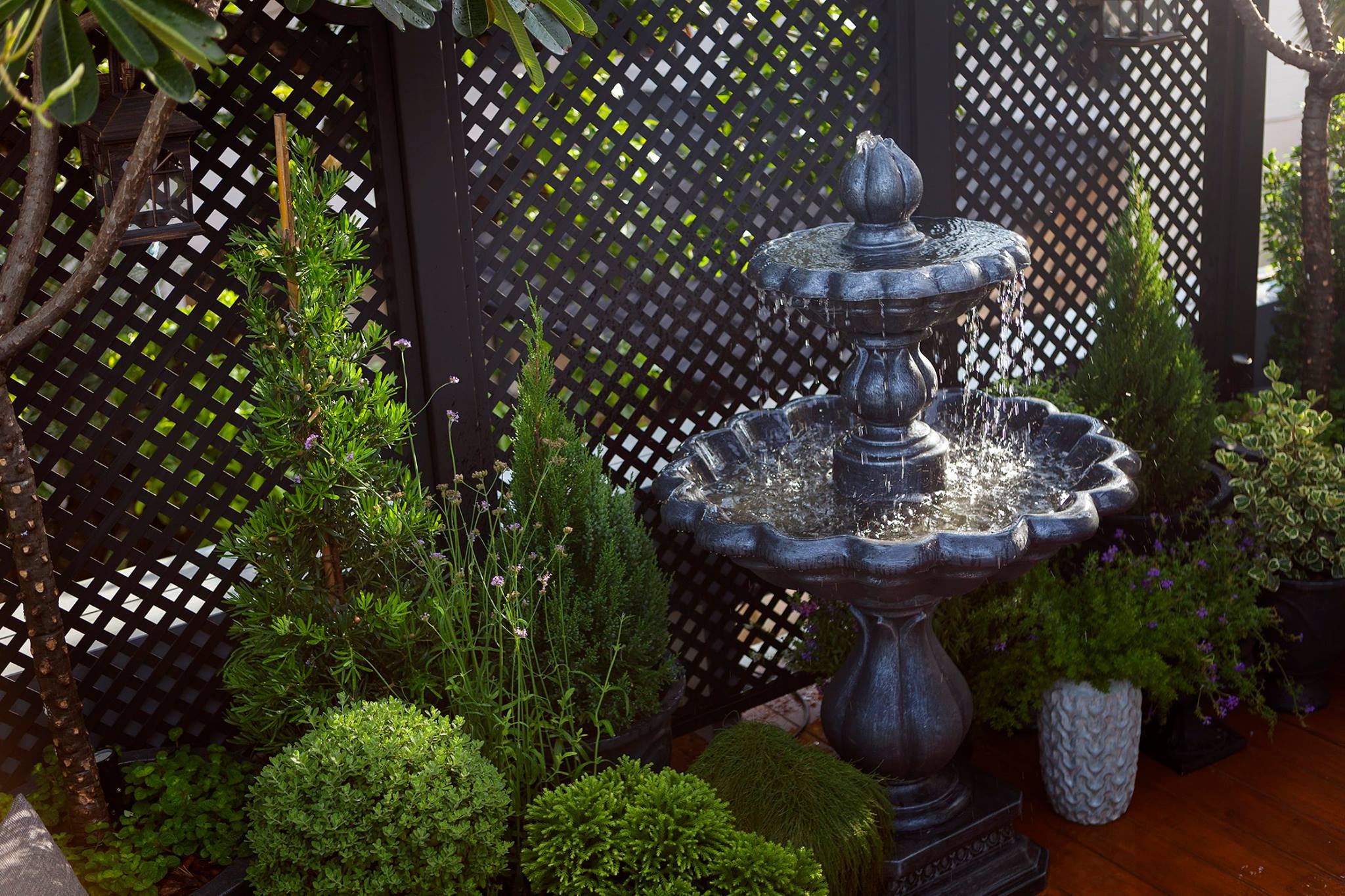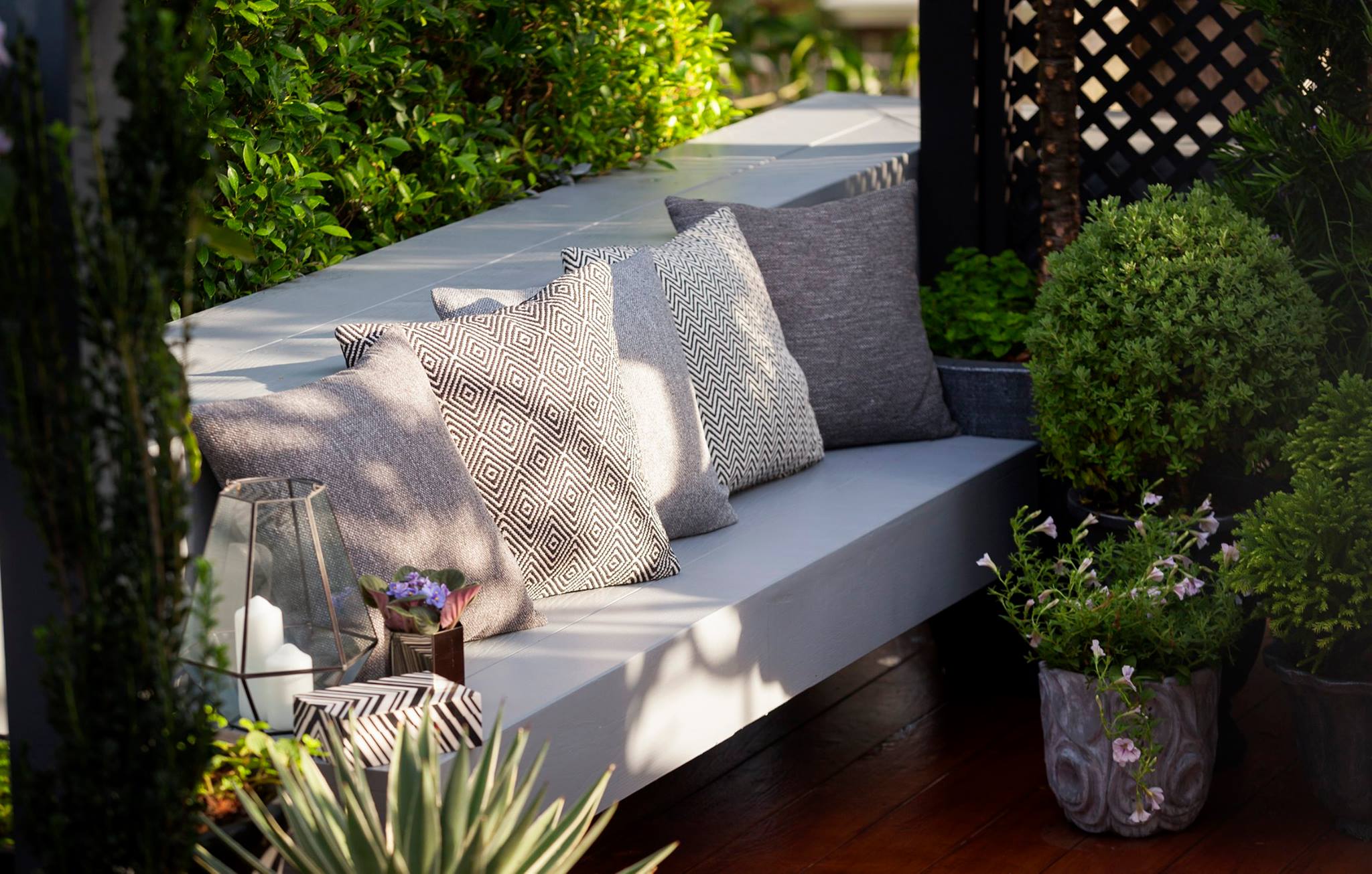 มาอวดงานสวนกันบ้างค่ะ สวนระเบียงบ้านคุณเอ๊ะเป็นงานรีนูเวทจากระเบียงบ้านเดิมขนาดของระเบียงค่อนข้างกว้าง อีกทั้งส่วนนี้ยังเชื่อมต่อจากห้องนอนส่วนตัว เราจึงออกแบบให้มีรั้วของแนวต้นไทรเพื่อพรางสายตาและสร้างความเป็นส่วนตัว ตัวศาลาเดิมที่มีอยู่ถูกเปลี่ยนโทนสีให้เข้ากับสไตล์การตกแต่ง ผนังด้านหนึ่งของสวนออกแบบให้เป็นระแนงเหล็กทำสีดำพรางสายตาจากเพื่อนบ้าน และวางอ่างน้ำล้นเน้นจุดรับสายตาและเพิ่มเสียงน้ำสร้างบรรยากาศชวนนั่งดูช่างลงตัวกับที่นั่งยาวที่ออกแบบไว้ด้านข้างโดยยึดติดกับขอบกระบะปลูกต้นไม้เดิมเพิ่มประโยชน์การใช้งานในสวนได้เป็นอย่างดี ส่วนอีกหนึ่งไฮไลน์เป็นมุมโต๊ะเลี้ยงต้นไม้ที่รับมุมมองจากมุมห้องนอน เราออกแบบให้เป็นมุมสะสมต้นไม้เล็กๆ และของกระจุกกระจิกได้อย่างน่ารัก ทำให้รูปแบบการตกแต่งสวนโดยเป็นสไตล์โมเดิร์นคลาสสิกยอดนิยม เน้นความอบอุ่นและประโยชน์ใช้งานสูงสุดด้วยคะ