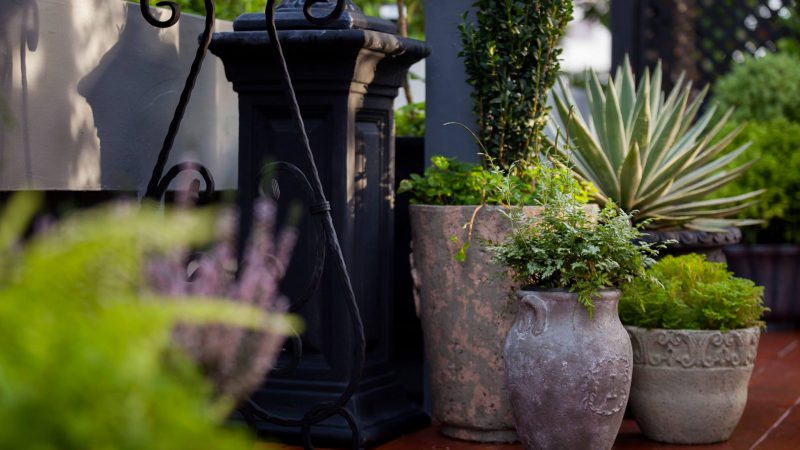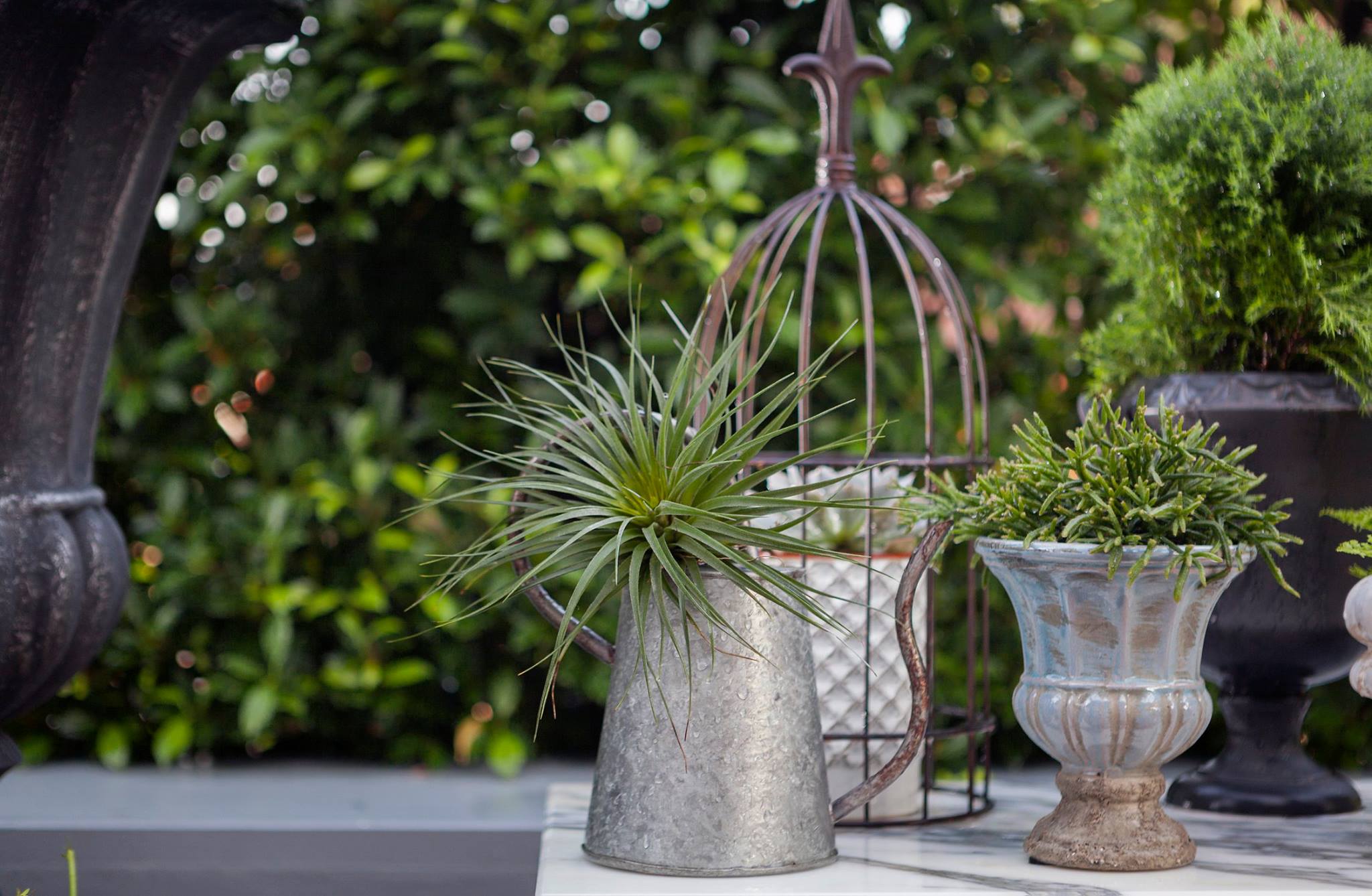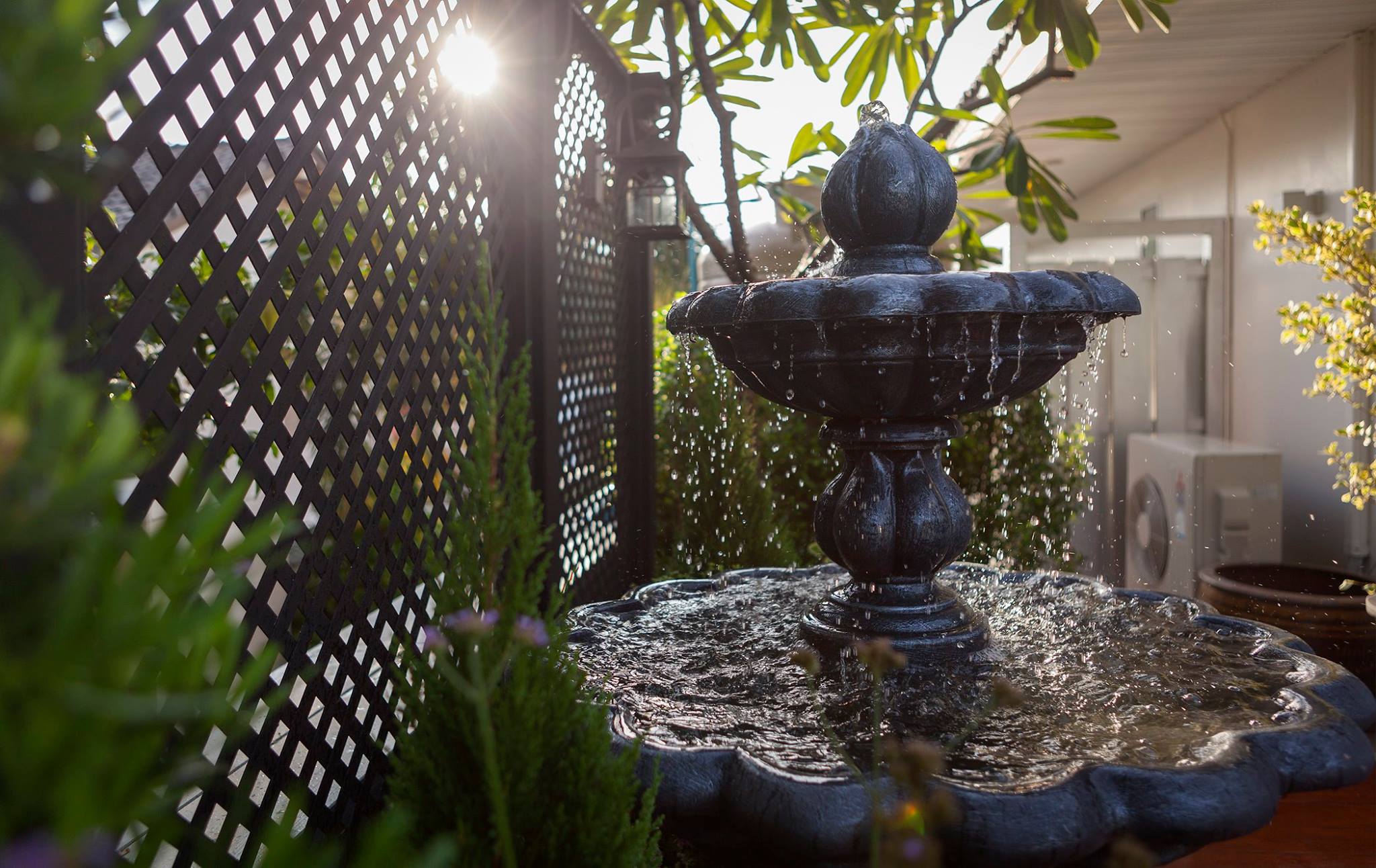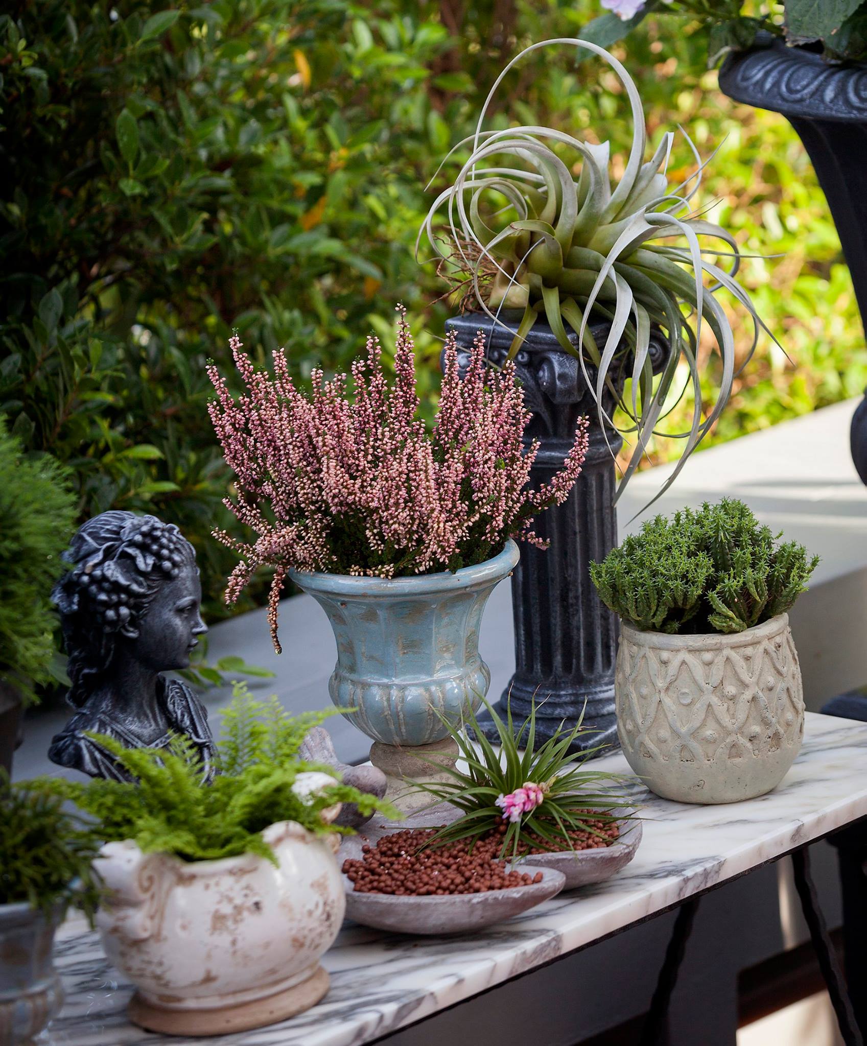 มาอวดงานสวนกันบ้างค่ะ สวนระเบียงบ้านคุณเอ๊ะเป็นงานรีนูเวทจากระเบียงบ้านเดิมขนาดของระเบียงค่อนข้างกว้าง อีกทั้งส่วนนี้ยังเชื่อมต่อจากห้องนอนส่วนตัว เราจึงออกแบบให้มีรั้วของแนวต้นไทรเพื่อพรางสายตาและสร้างความเป็นส่วนตัว ตัวศาลาเดิมที่มีอยู่ถูกเปลี่ยนโทนสีให้เข้ากับสไตล์การตกแต่ง ผนังด้านหนึ่งของสวนออกแบบให้เป็นระแนงเหล็กทำสีดำพรางสายตาจากเพื่อนบ้าน และวางอ่างน้ำล้นเน้นจุดรับสายตาและเพิ่มเสียงน้ำสร้างบรรยากาศชวนนั่งดูช่างลงตัวกับที่นั่งยาวที่ออกแบบไว้ด้านข้างโดยยึดติดกับขอบกระบะปลูกต้นไม้เดิมเพิ่มประโยชน์การใช้งานในสวนได้เป็นอย่างดี ส่วนอีกหนึ่งไฮไลน์เป็นมุมโต๊ะเลี้ยงต้นไม้ที่รับมุมมองจากมุมห้องนอน เราออกแบบให้เป็นมุมสะสมต้นไม้เล็กๆ และของกระจุกกระจิกได้อย่างน่ารัก ทำให้รูปแบบการตกแต่งสวนโดยเป็นสไตล์โมเดิร์นคลาสสิกยอดนิยม เน้นความอบอุ่นและประโยชน์ใช้งานสูงสุดด้วยคะ