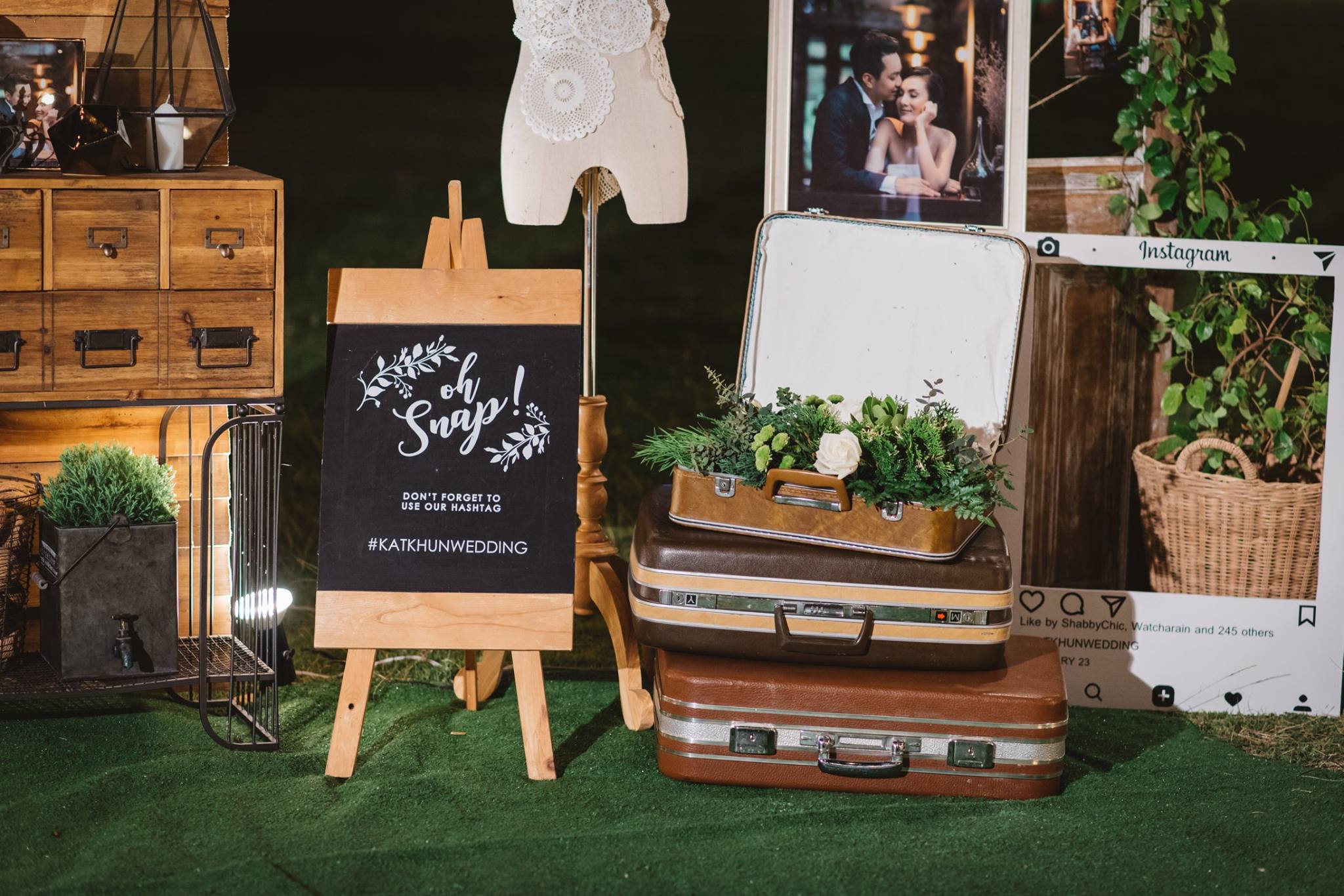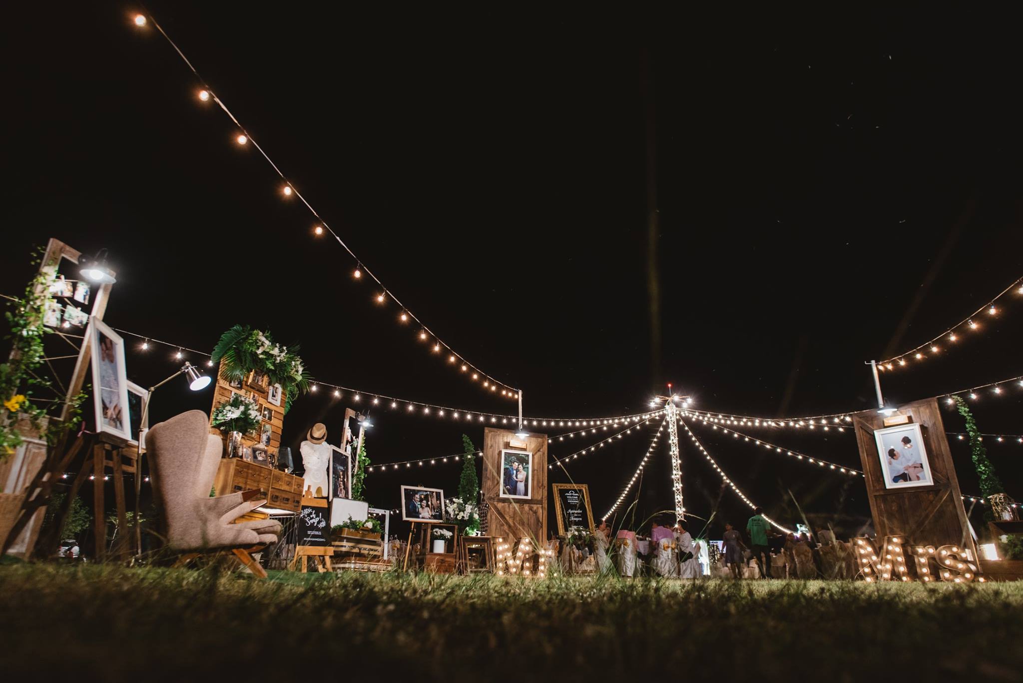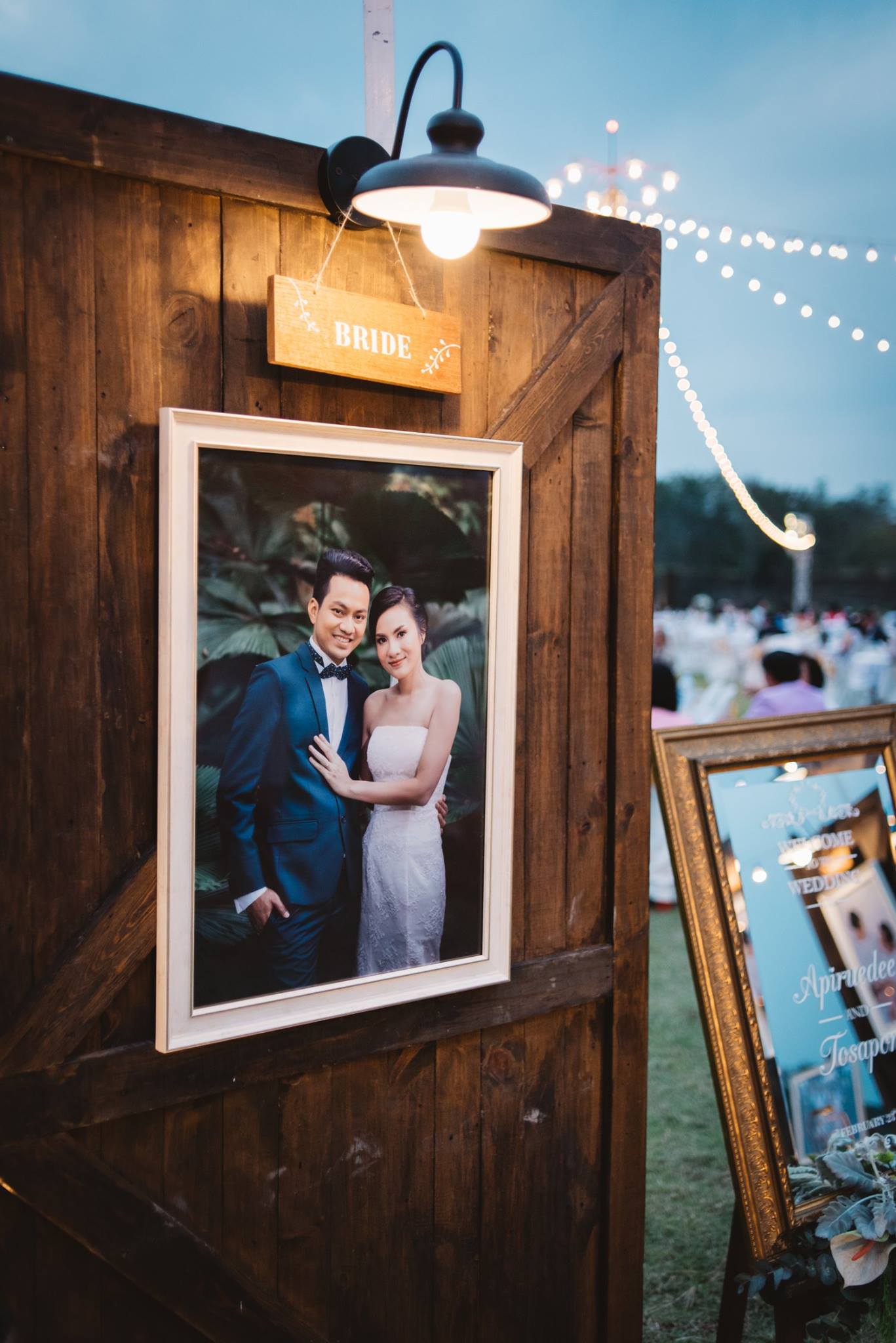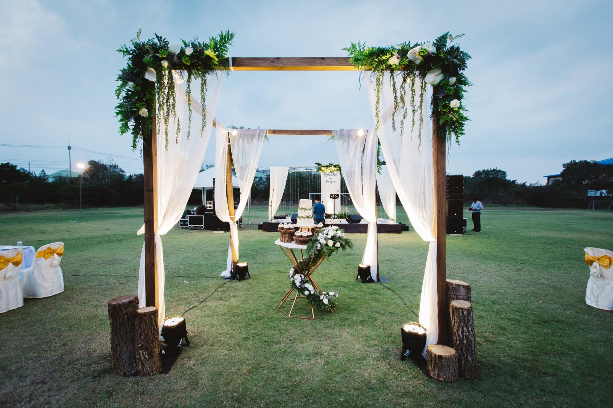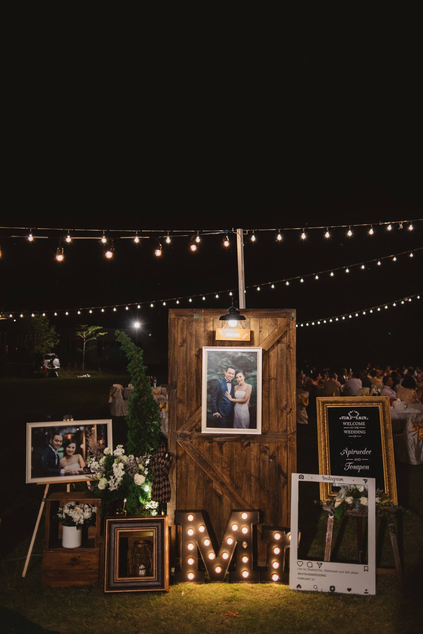 ขอขอบคุณคุณแคทและคุณคุณที่ไว้ใจทีม Shabby Chic Gardens ให้ได้ดูแลตกแต่งสถานที่จัดเลี่ยง งานนี้จัดกันที่อ.บางละมุง จ.ชลบุรี ท่ามกลางความเสี่ยงของพายุฝนกันเลยทีเดียว เพราะบริเวณที่จัดเลี้ยงอยู่กลางสนามฟุตบอลด้านหน้าของโบสถ์คริสที่สวยงาม เช้าวันจัดงานฝนกระหน่ำลงมาอย่างหนักก่อนจะซาไปในช่วงสายทำให้สนามหญ้าเดินได้แบบชุ่มๆ นุ่มเท้า แดดจึงไม่มีเท่าไหร่ ทำให้ดอกไม้สดที่ใช้ดูสดชื่นเหมื่อนกันคู่บ่าวสาวในวันนี้ของเราเลยค่ะ งานเป็นแบบโต๊ะจีน ทีมงานแบบสบายๆ ตามสไตล์ shabby chic gardens เรารันงานกันทั้งวันก่อนจะเสร็จสมบูรณ์ในช่วงก่อนงานในช่วงค่ำ แสงไฟปิงปองสวยนวลเข้ากับบรรยากาศงานตกแต่งแบบกลางแจ้งเป็นที่สุด งานนี้นอกจากบ่าวสาวแล้วต้องขอบคุณเพื่อนโอ Watcharain Boonprakob ช่างภาพมือฉมังที่ชักชวนให้เราได้ไปร่วมงานดีๆ แบบนี้ และยังใจดีเก็บภาพมาแบ่งปันกันด้วยนะคะ ไปชมกันเลยค่ะ