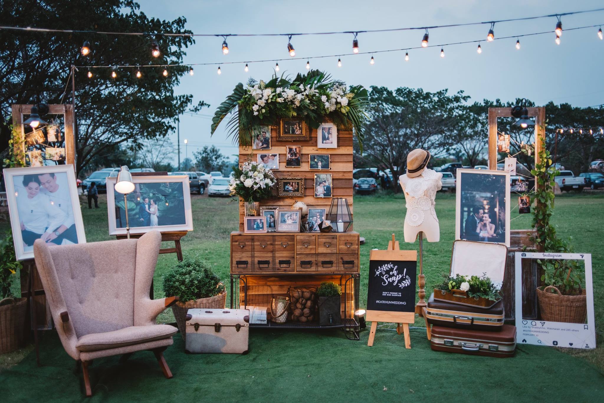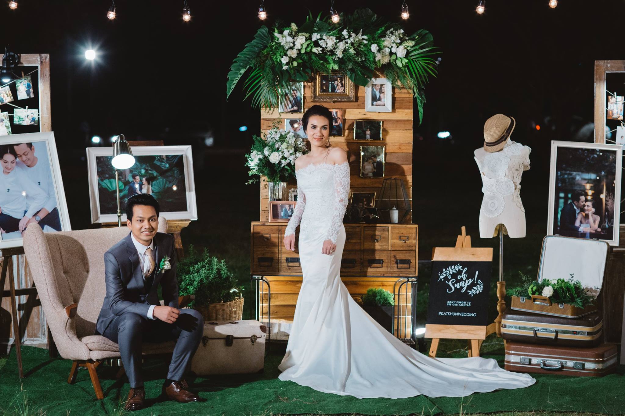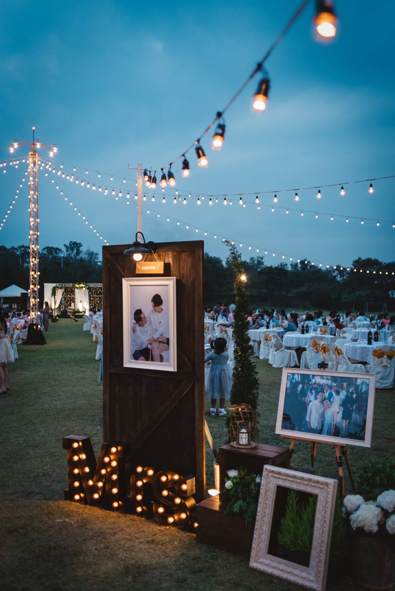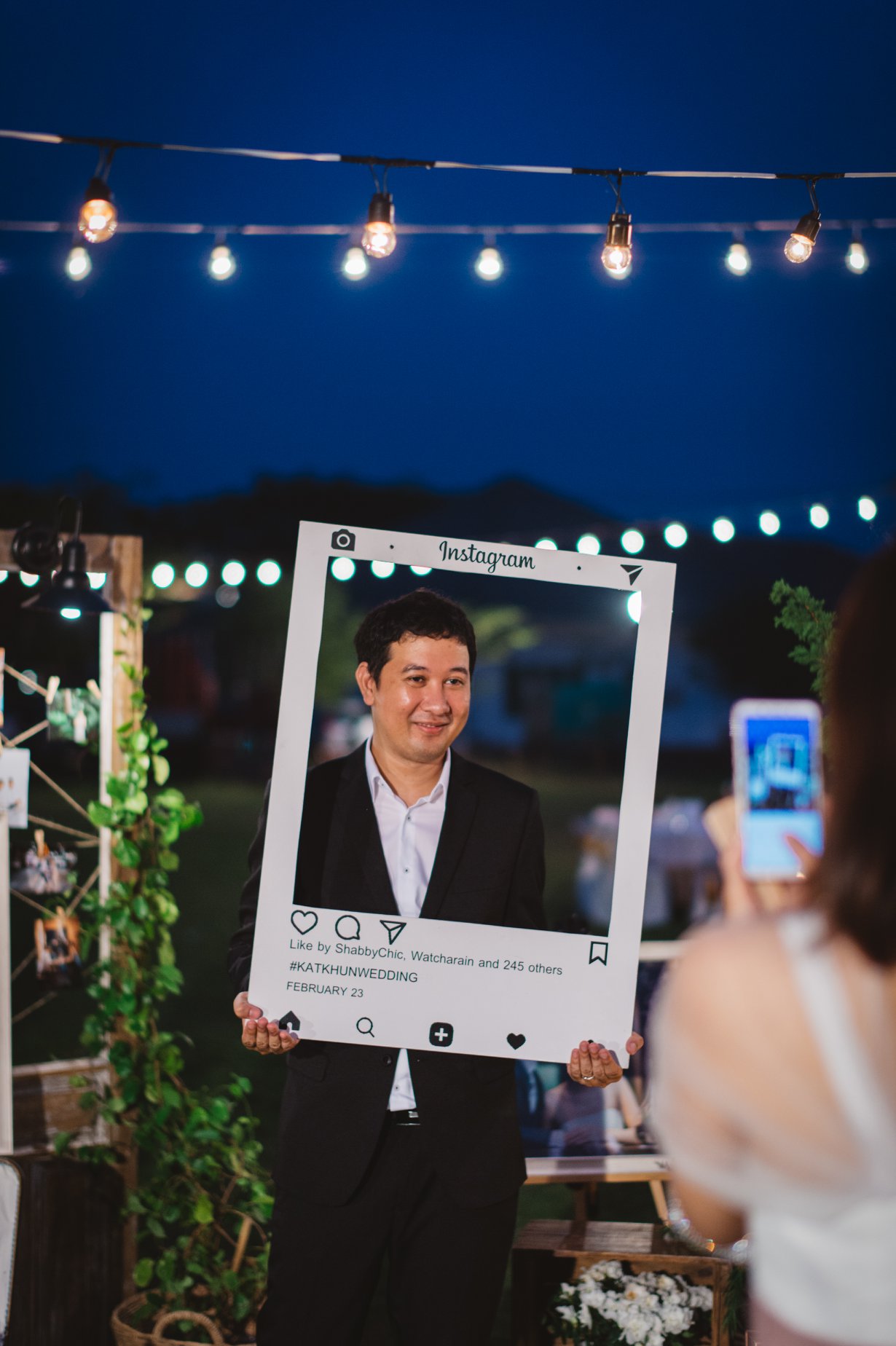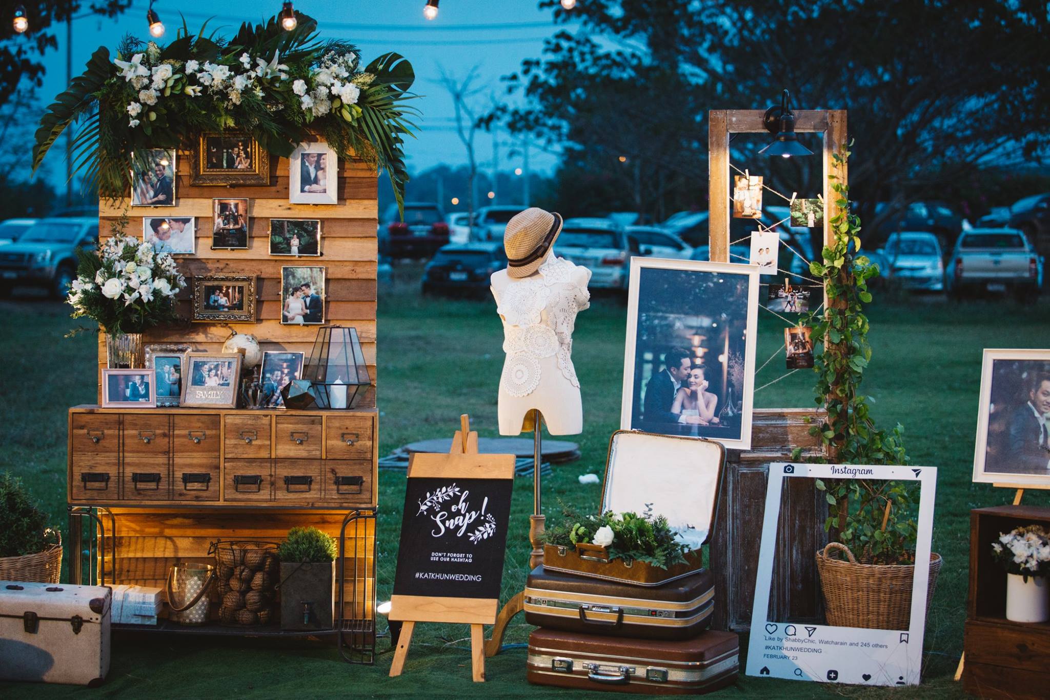 ขอขอบคุณคุณแคทและคุณคุณที่ไว้ใจทีม Shabby Chic Gardens ให้ได้ดูแลตกแต่งสถานที่จัดเลี่ยง งานนี้จัดกันที่อ.บางละมุง จ.ชลบุรี ท่ามกลางความเสี่ยงของพายุฝนกันเลยทีเดียว เพราะบริเวณที่จัดเลี้ยงอยู่กลางสนามฟุตบอลด้านหน้าของโบสถ์คริสที่สวยงาม เช้าวันจัดงานฝนกระหน่ำลงมาอย่างหนักก่อนจะซาไปในช่วงสายทำให้สนามหญ้าเดินได้แบบชุ่มๆ นุ่มเท้า แดดจึงไม่มีเท่าไหร่ ทำให้ดอกไม้สดที่ใช้ดูสดชื่นเหมื่อนกันคู่บ่าวสาวในวันนี้ของเราเลยค่ะ งานเป็นแบบโต๊ะจีน ทีมงานแบบสบายๆ ตามสไตล์ shabby chic gardens เรารันงานกันทั้งวันก่อนจะเสร็จสมบูรณ์ในช่วงก่อนงานในช่วงค่ำ แสงไฟปิงปองสวยนวลเข้ากับบรรยากาศงานตกแต่งแบบกลางแจ้งเป็นที่สุด งานนี้นอกจากบ่าวสาวแล้วต้องขอบคุณเพื่อนโอ Watcharain Boonprakob ช่างภาพมือฉมังที่ชักชวนให้เราได้ไปร่วมงานดีๆ แบบนี้ และยังใจดีเก็บภาพมาแบ่งปันกันด้วยนะคะ ไปชมกันเลยค่ะ