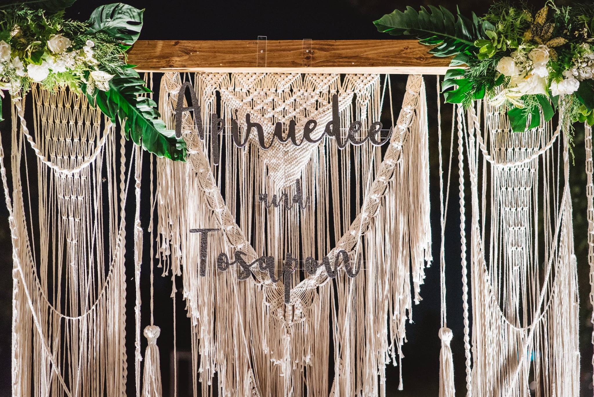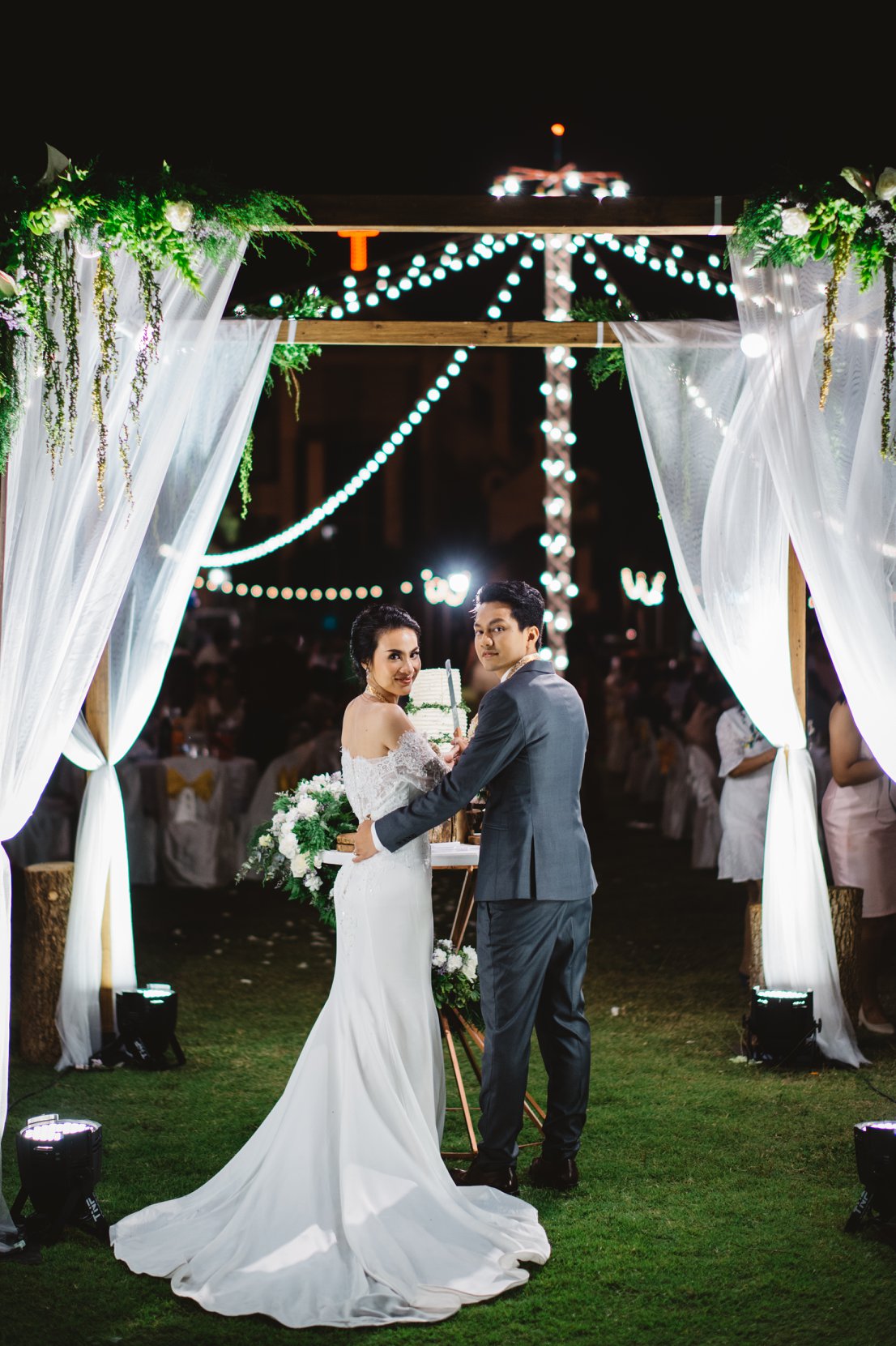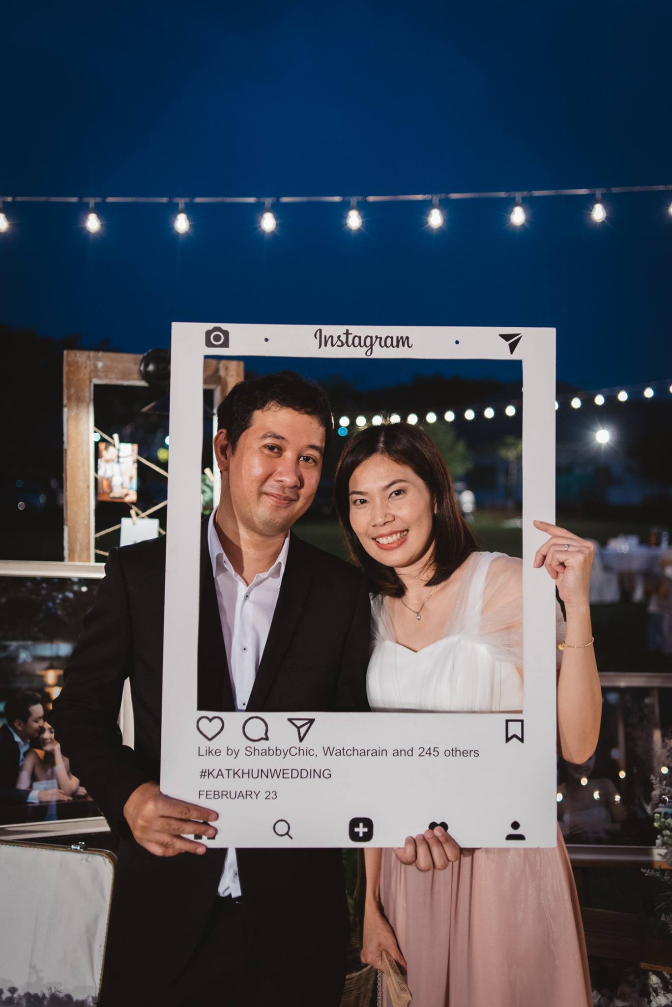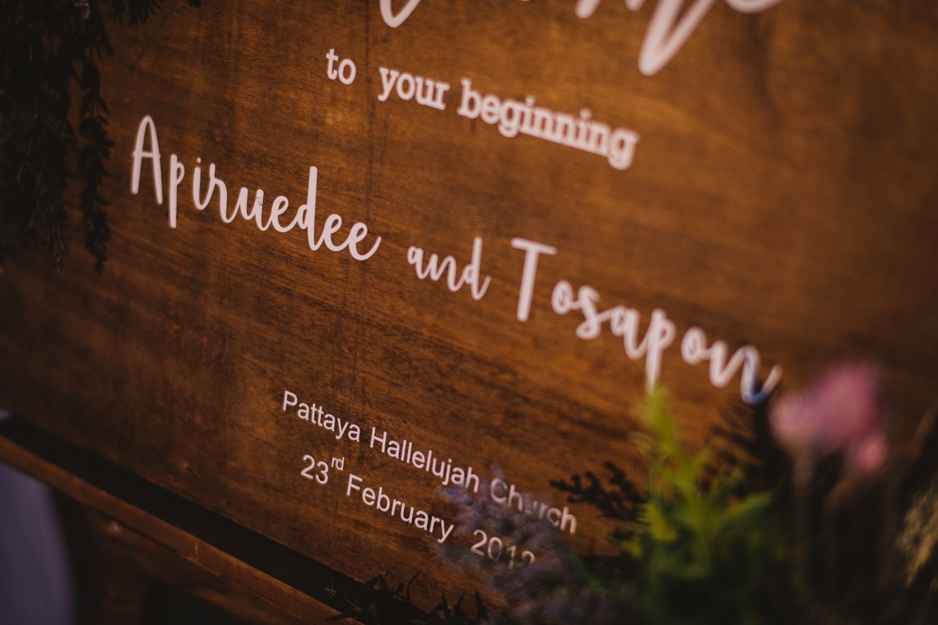 ขอขอบคุณคุณแคทและคุณคุณที่ไว้ใจทีม Shabby Chic Gardens ให้ได้ดูแลตกแต่งสถานที่จัดเลี่ยง งานนี้จัดกันที่อ.บางละมุง จ.ชลบุรี ท่ามกลางความเสี่ยงของพายุฝนกันเลยทีเดียว เพราะบริเวณที่จัดเลี้ยงอยู่กลางสนามฟุตบอลด้านหน้าของโบสถ์คริสที่สวยงาม เช้าวันจัดงานฝนกระหน่ำลงมาอย่างหนักก่อนจะซาไปในช่วงสายทำให้สนามหญ้าเดินได้แบบชุ่มๆ นุ่มเท้า แดดจึงไม่มีเท่าไหร่ ทำให้ดอกไม้สดที่ใช้ดูสดชื่นเหมื่อนกันคู่บ่าวสาวในวันนี้ของเราเลยค่ะ งานเป็นแบบโต๊ะจีน ทีมงานแบบสบายๆ ตามสไตล์ shabby chic gardens เรารันงานกันทั้งวันก่อนจะเสร็จสมบูรณ์ในช่วงก่อนงานในช่วงค่ำ แสงไฟปิงปองสวยนวลเข้ากับบรรยากาศงานตกแต่งแบบกลางแจ้งเป็นที่สุด งานนี้นอกจากบ่าวสาวแล้วต้องขอบคุณเพื่อนโอ Watcharain Boonprakob ช่างภาพมือฉมังที่ชักชวนให้เราได้ไปร่วมงานดีๆ แบบนี้ และยังใจดีเก็บภาพมาแบ่งปันกันด้วยนะคะ ไปชมกันเลยค่ะ