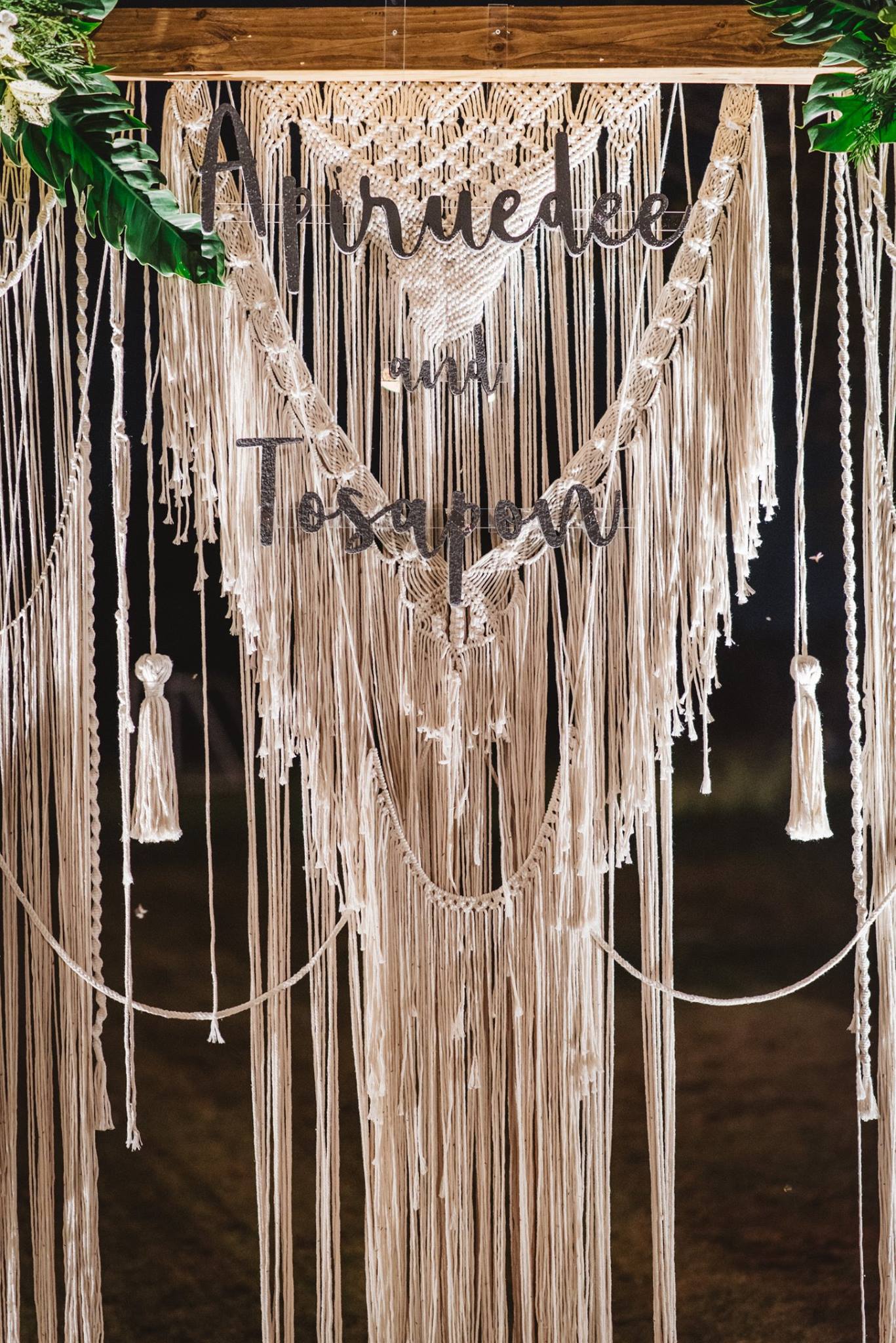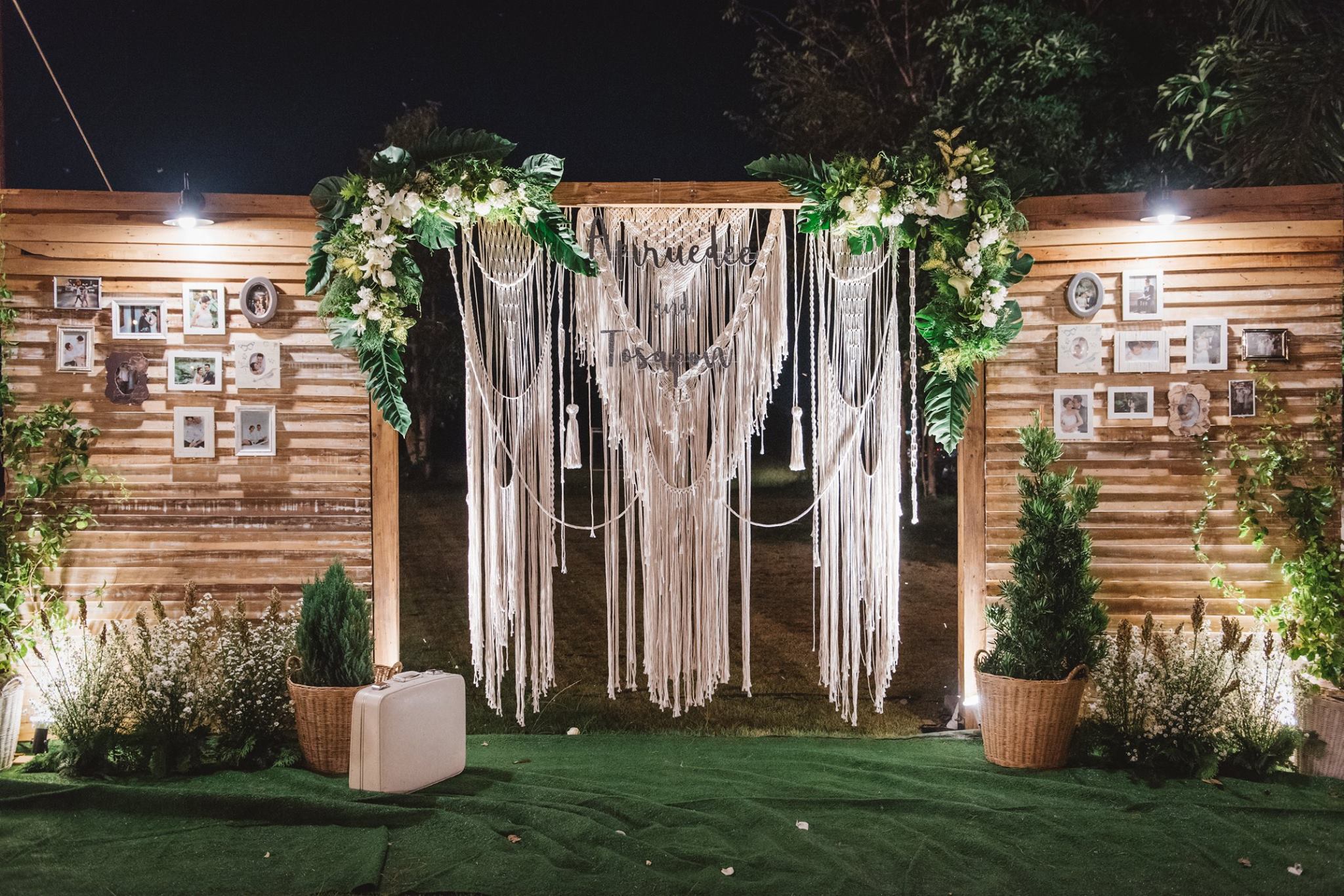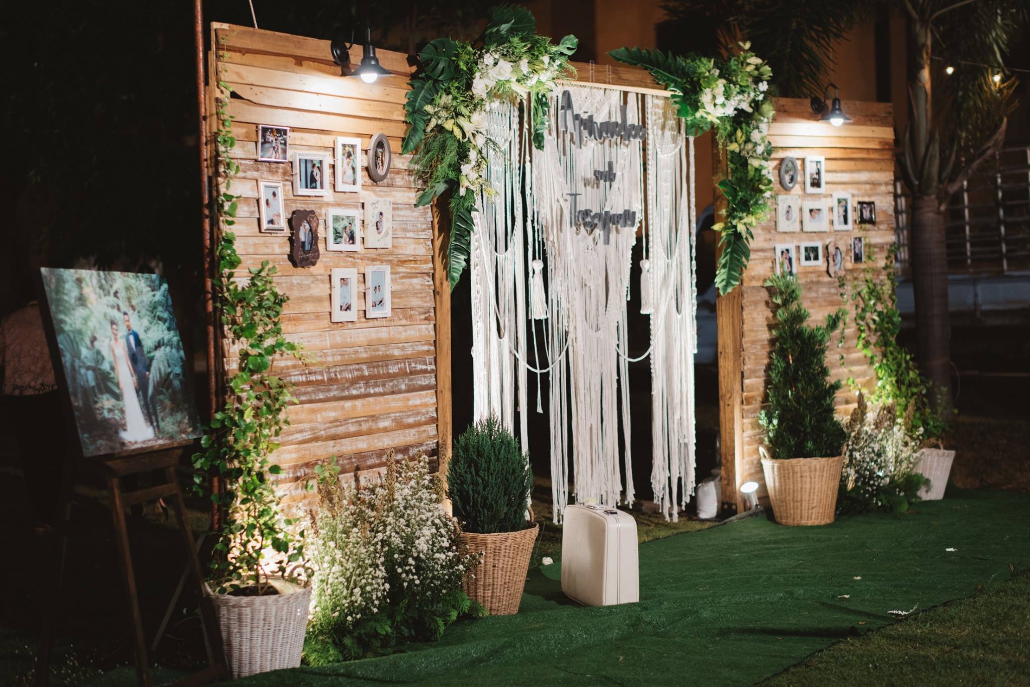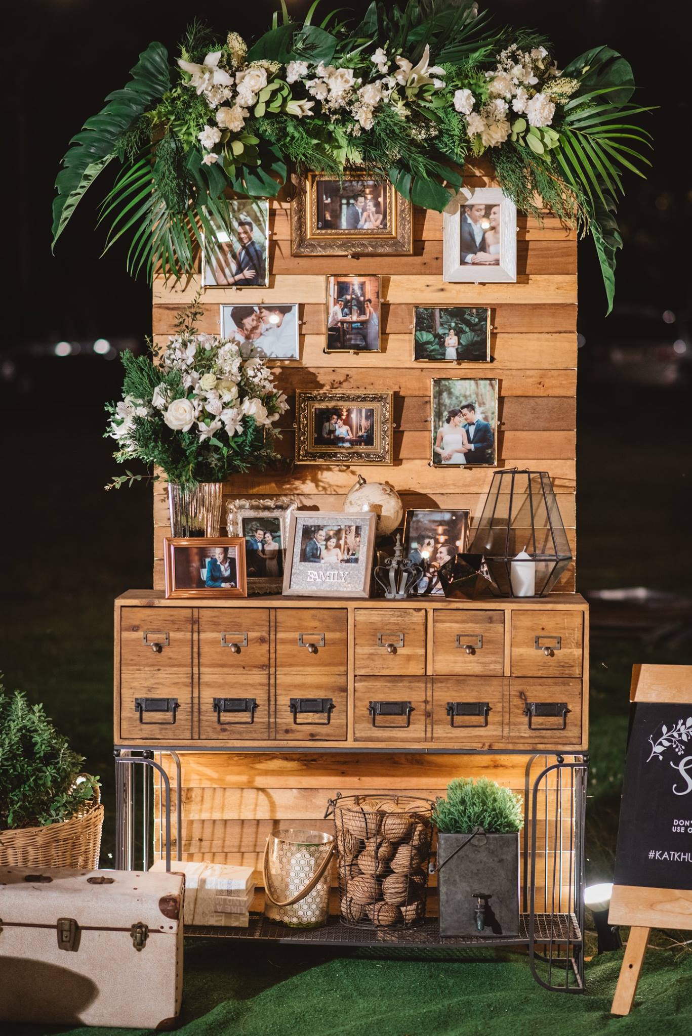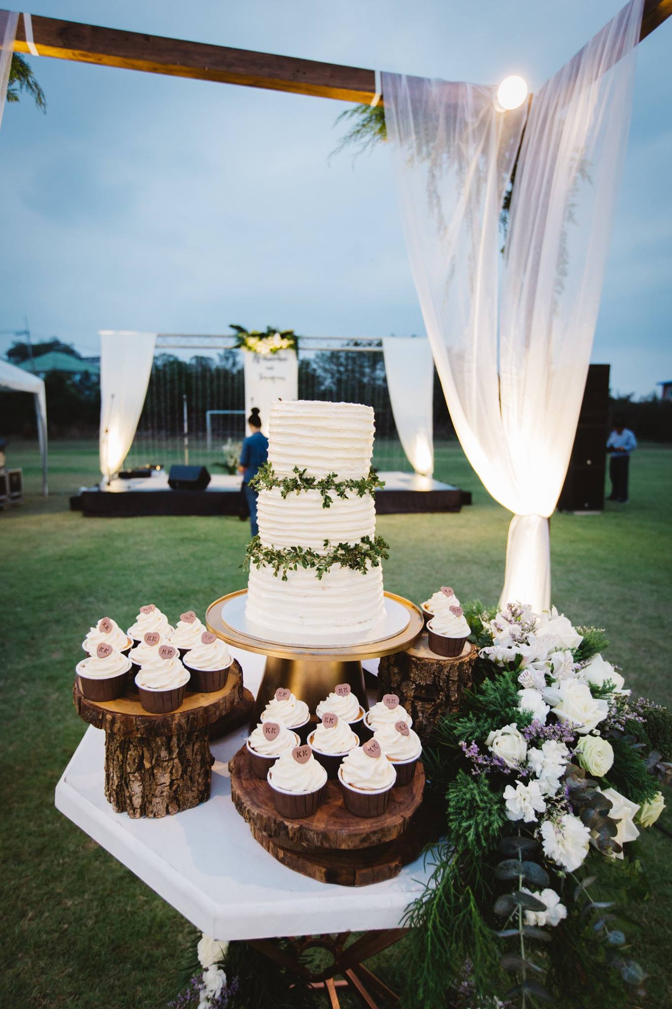 ขอขอบคุณคุณแคทและคุณคุณที่ไว้ใจทีม Shabby Chic Gardens ให้ได้ดูแลตกแต่งสถานที่จัดเลี่ยง งานนี้จัดกันที่อ.บางละมุง จ.ชลบุรี ท่ามกลางความเสี่ยงของพายุฝนกันเลยทีเดียว เพราะบริเวณที่จัดเลี้ยงอยู่กลางสนามฟุตบอลด้านหน้าของโบสถ์คริสที่สวยงาม เช้าวันจัดงานฝนกระหน่ำลงมาอย่างหนักก่อนจะซาไปในช่วงสายทำให้สนามหญ้าเดินได้แบบชุ่มๆ นุ่มเท้า แดดจึงไม่มีเท่าไหร่ ทำให้ดอกไม้สดที่ใช้ดูสดชื่นเหมื่อนกันคู่บ่าวสาวในวันนี้ของเราเลยค่ะ งานเป็นแบบโต๊ะจีน ทีมงานแบบสบายๆ ตามสไตล์ shabby chic gardens เรารันงานกันทั้งวันก่อนจะเสร็จสมบูรณ์ในช่วงก่อนงานในช่วงค่ำ แสงไฟปิงปองสวยนวลเข้ากับบรรยากาศงานตกแต่งแบบกลางแจ้งเป็นที่สุด งานนี้นอกจากบ่าวสาวแล้วต้องขอบคุณเพื่อนโอ Watcharain Boonprakob ช่างภาพมือฉมังที่ชักชวนให้เราได้ไปร่วมงานดีๆ แบบนี้ และยังใจดีเก็บภาพมาแบ่งปันกันด้วยนะคะ ไปชมกันเลยค่ะ