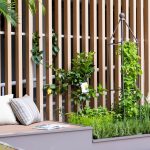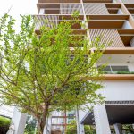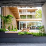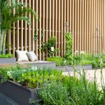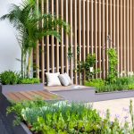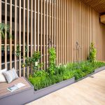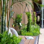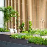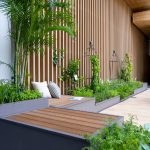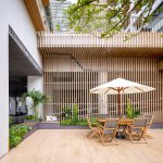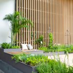 รูปแบบสวนถูกจัดในอยู่ในกระบะปลูกความสูงลดหลั่นแตกต่างกันสร้างมิติให้สวน รวมทั้งสอดแทรกฟังก์ชั่นกรใช้งานด้วยที่นั่งกรุไม้เทียมเข้ากับผนังระแนงไม้เทียมที่มีเป็นฉากเดิม ทำให้สวนดูกลมกลืนแต่มีลูกเล่นน่าสนใจขึ้น