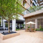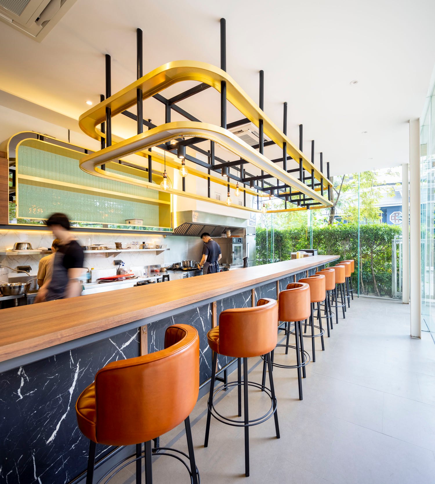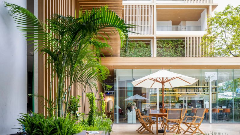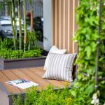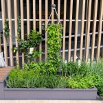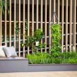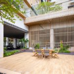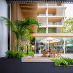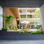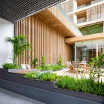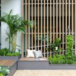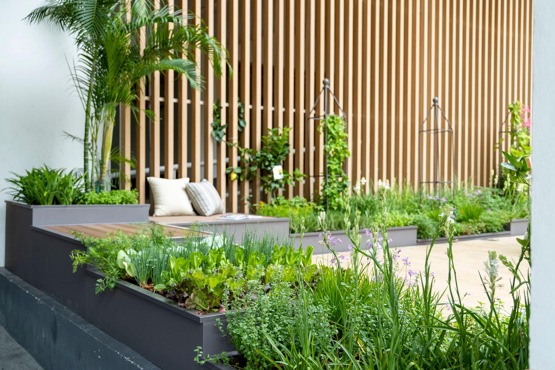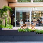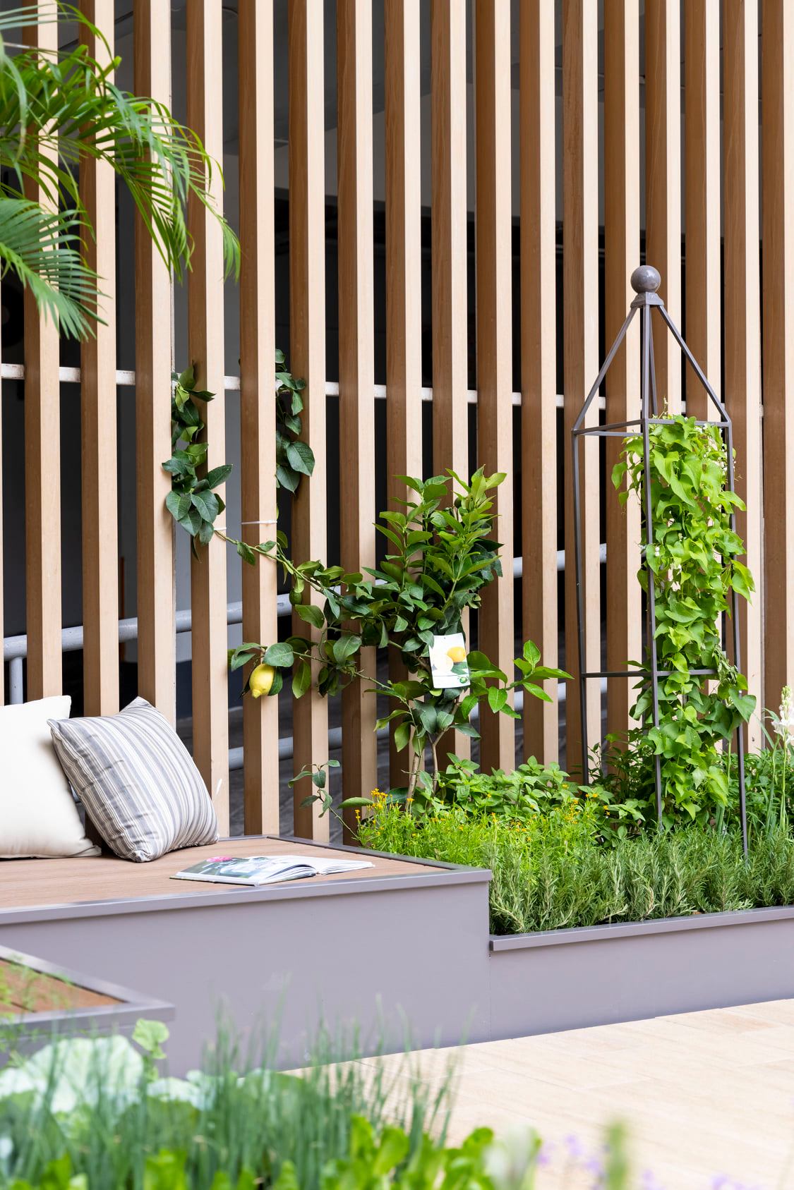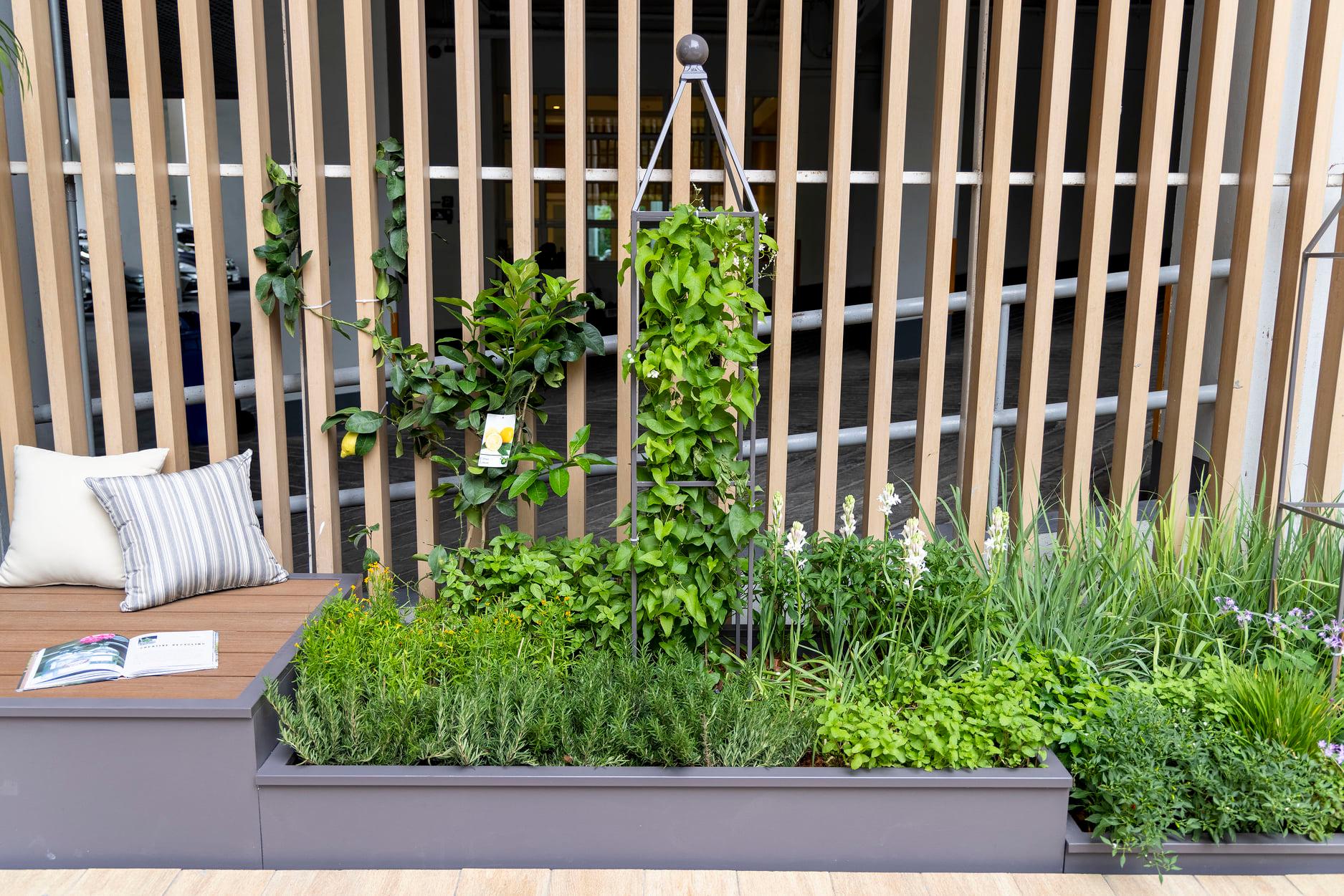 รูปแบบสวนถูกจัดในอยู่ในกระบะปลูกความสูงลดหลั่นแตกต่างกันสร้างมิติให้สวน รวมทั้งสอดแทรกฟังก์ชั่นกรใช้งานด้วยที่นั่งกรุไม้เทียมเข้ากับผนังระแนงไม้เทียมที่มีเป็นฉากเดิม ทำให้สวนดูกลมกลืนแต่มีลูกเล่นน่าสนใจขึ้น