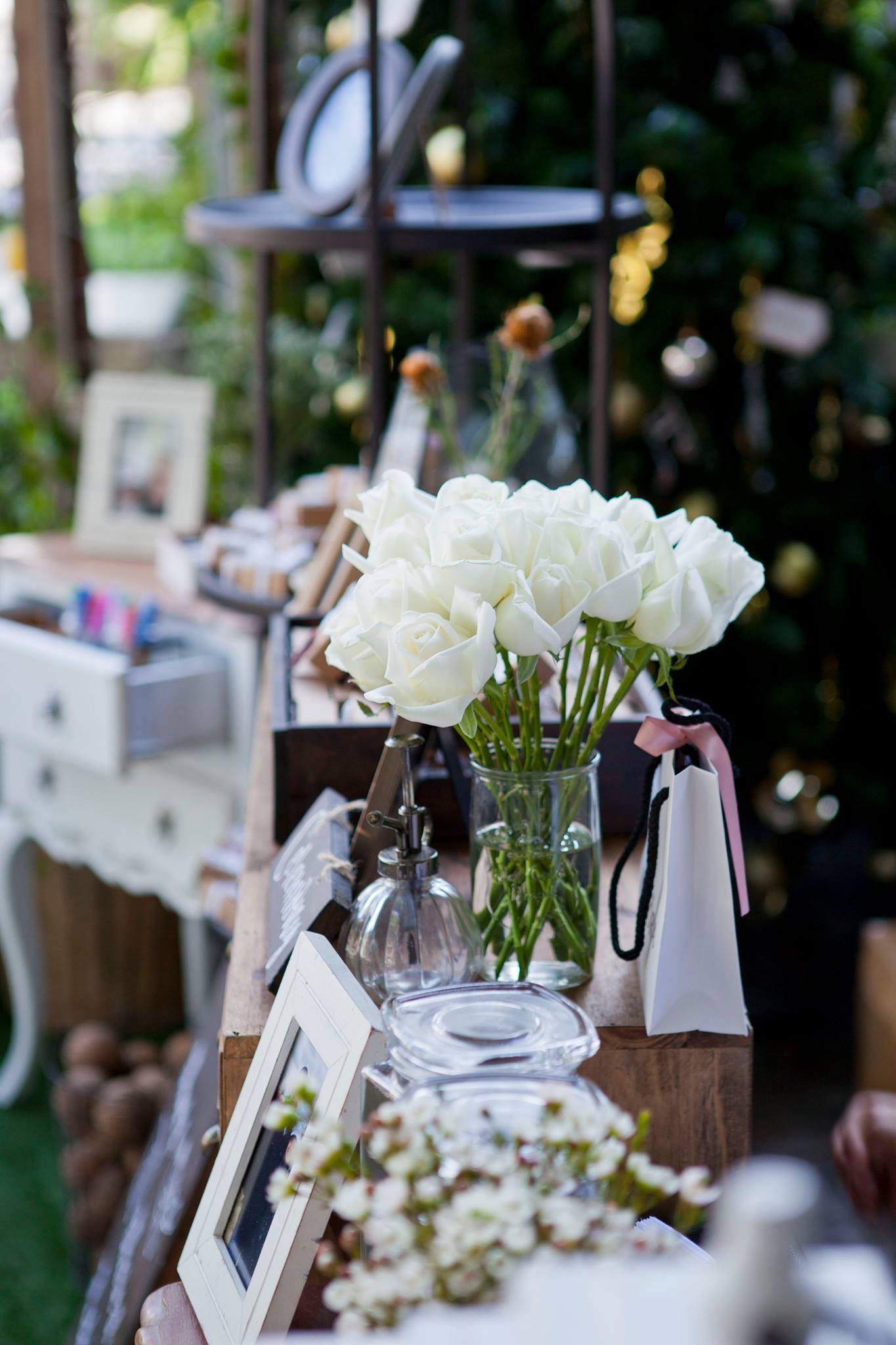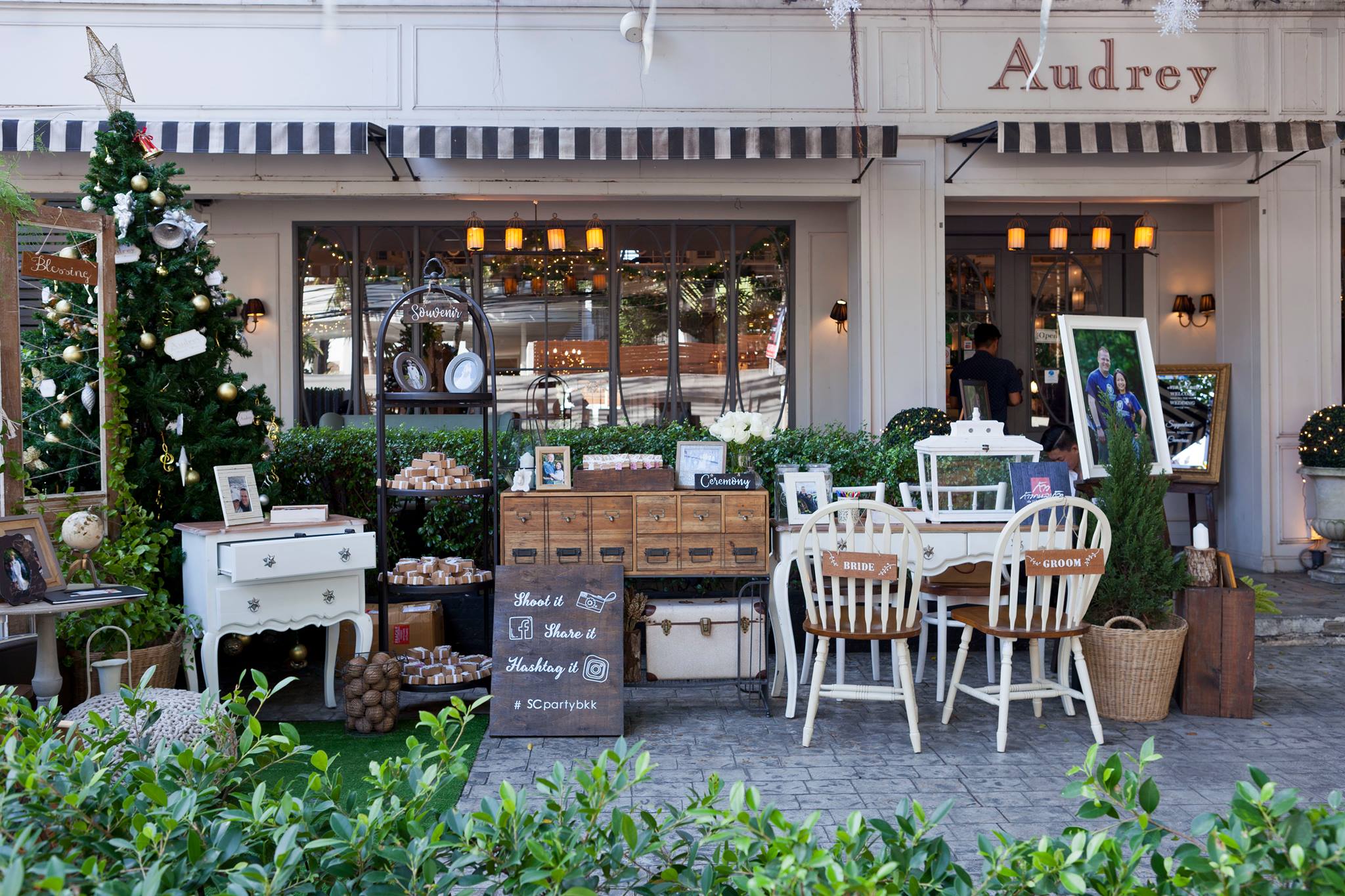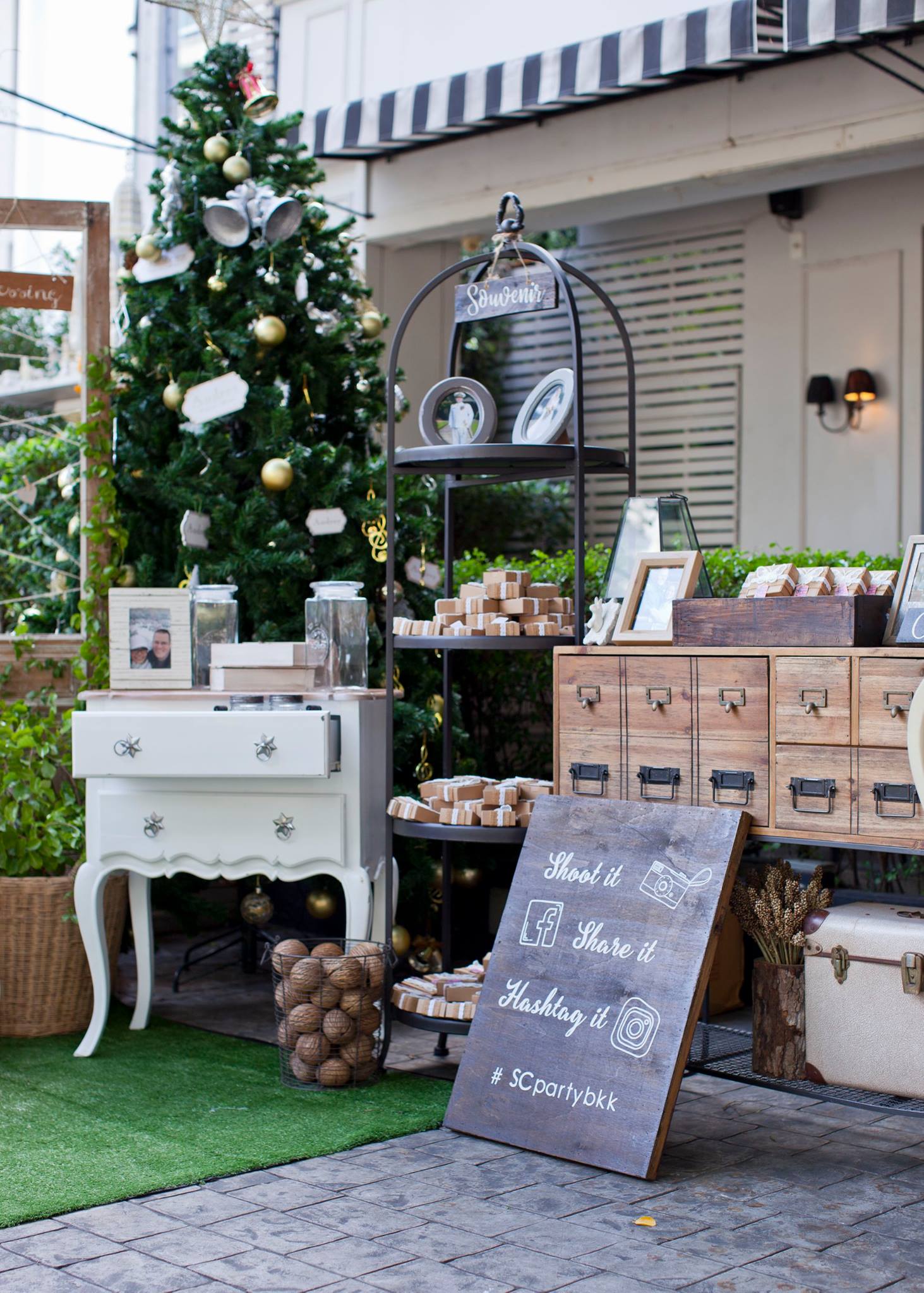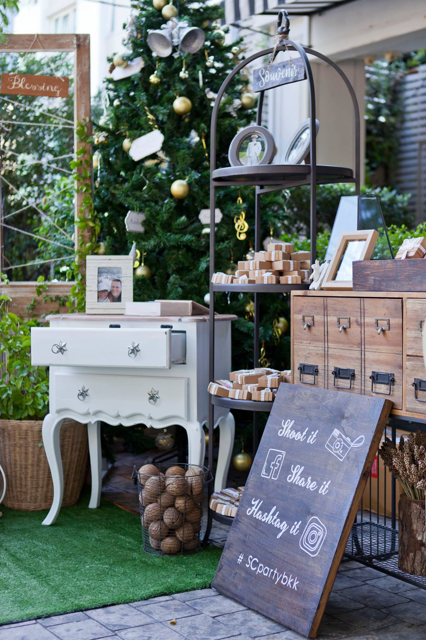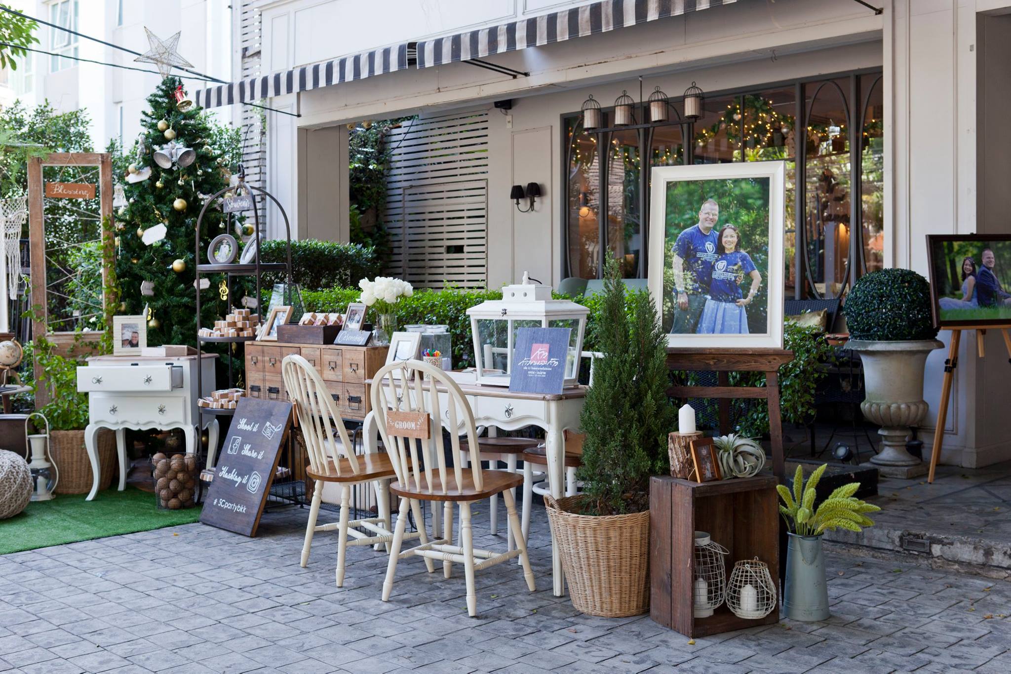 ยินดีกับบ่าวสาวคู่ที่แสนน่ารักอย่างคุณนุ้ย และคุณ Cam อีกครั้งนะคะ และของคุณสำหรับความไว้วางใจให้นุ่นและ Shabby Chic Gardens ได้ดูแลในส่วนของงานตกแต่งสถานที่ ทั้งให้อิสระทางไอเดียทำให้งานน่ารักออกมาแบบอบอุ่นๆ ตามโจทย์ที่เจ้าสาวอยากได้เลยค่ะ ต้นไม้ใหญ่สร้างร่มเงาและเส้นสายทั้งยังเป็น background ได้เป็นอย่างดีสำหรับมุมเอกของการต้อนรับแขก ดูเข้ากันสุดๆ กับงาน macrame เก๋ๆ Little Pink Knot ส่วนมุมลงทะเบียนและรับของชำร่วยก็ชิคไม่แพ้กัน เพราะบ่าวสาวแจ้งว่าไม่รับซองนะคะ แต่เชิญชวนให้ร่วมกันบริจาคเงินให้กับโครงการก้าวคนละก้าว อ้าว+ เก๋ไปกันอี๊กคร้าาา ส่วนของชำร่วยเราก็จัดวางบนชั้นให้แบบสวยๆ ให้แขกสามารถหยิบได้เองเลยค่ะ ติดกันเป็นมุม display gallery รูปภาพของบ่าวสาวและมุมอวยพร จัดวางเก้าอี้ให้นั่งเซลฟี่กันแบบชิวๆ กันไปเลยคร้า บรรยาขนาดนี้แล้วคงต้องไปชมด้วยตาตัวเองกันเลยค่ะ