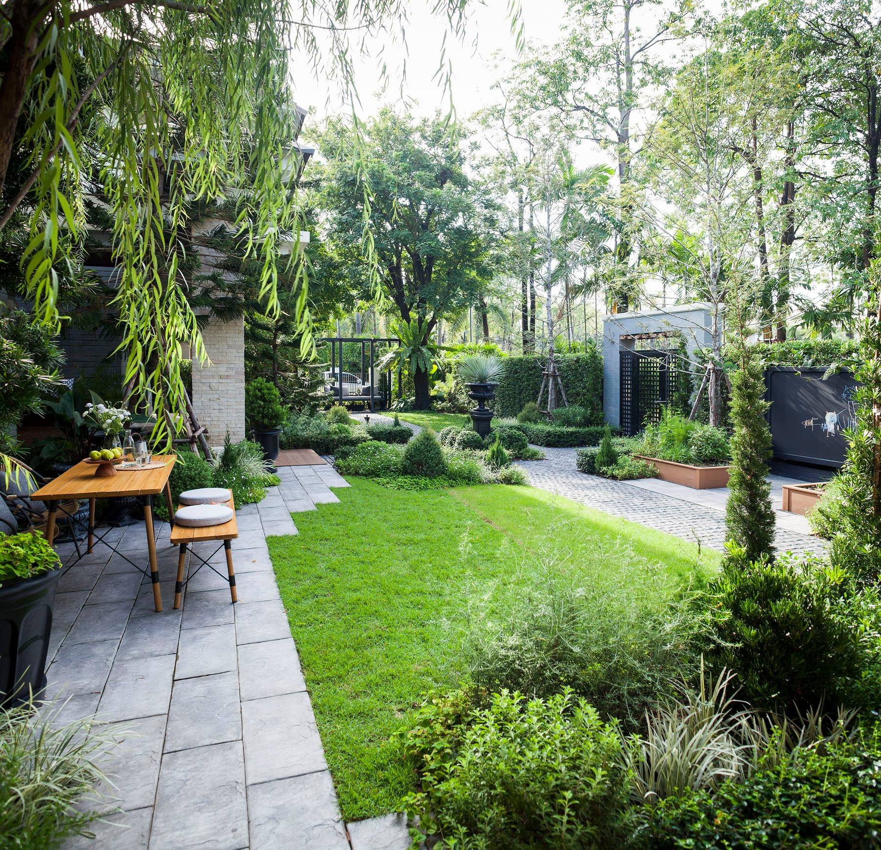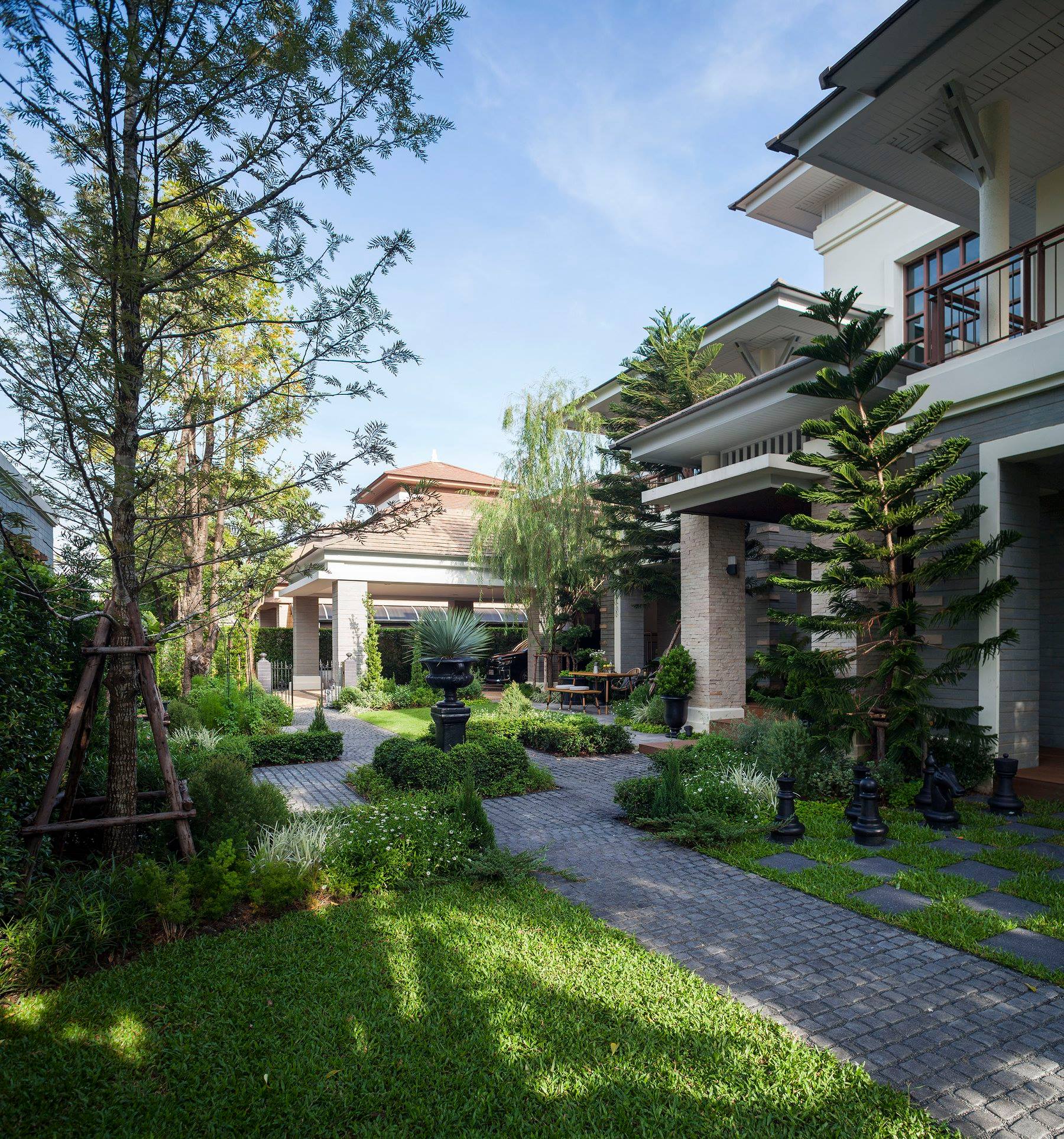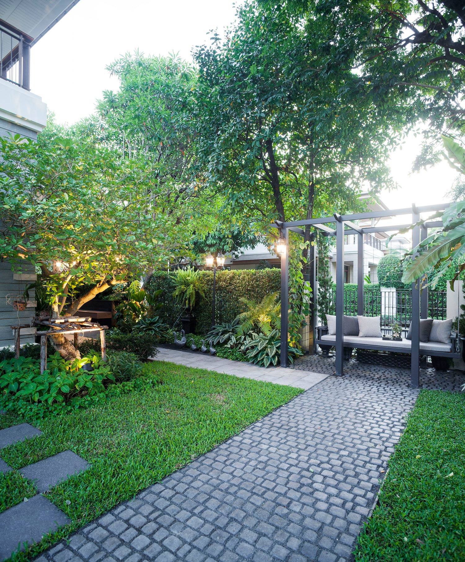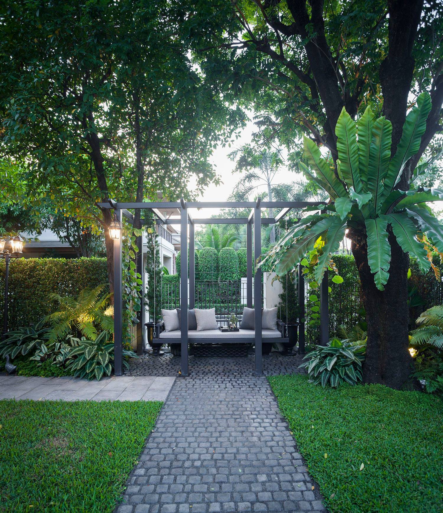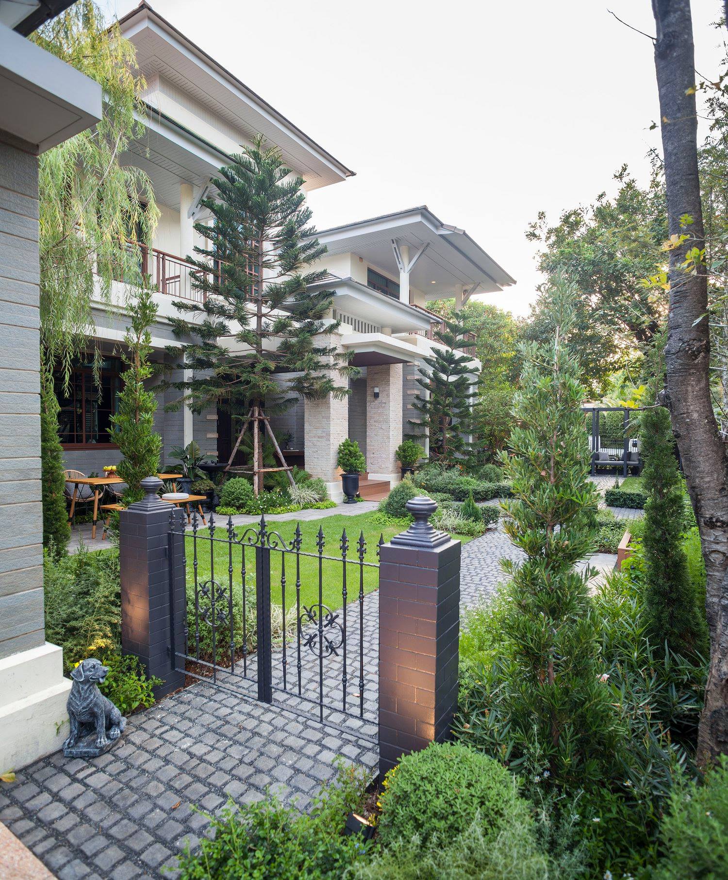 สวนนี้ก็เป็นอีกผลงานหนึ่งที่เราภาคภูมิใจ เพราะได้ใส่ไอเดียและฟังก์ชั่นไว้แบบครบครัน แบบที่เรียกได้ว่าไม่มีกั๊ก ทุกจุดผ่านการคิดวิเคราะห์มุมมองให้เกิดความเหมาะสมกับการใช้งานและสวยงามที่สุด ประกอบกับการทำการบ้านระหว่างเจ้าของบ้านและทีมงานของเราในการปรับหาจุดที่ลงตัว ปล่อยอิสระในการออกแบบและจัดสรรพื้นที่ ทำให้เกิดความสอดคล้องกับการใช้งานในชีวิตประจำวัน สวนแห่งนี้จึงตอบโจทย์สำหรับคนรักสวนอังกฤษที่ชอบความเป็นระเบียบเรียบร้อย สะอาด โปร่งโล่ง เดินสะดวกใช้งานสบาย แต่จะสวยงามแค่ไหนตามมาชมภาพกันเลยค่ะ