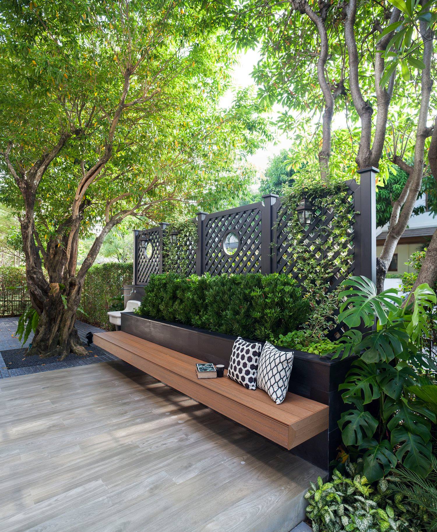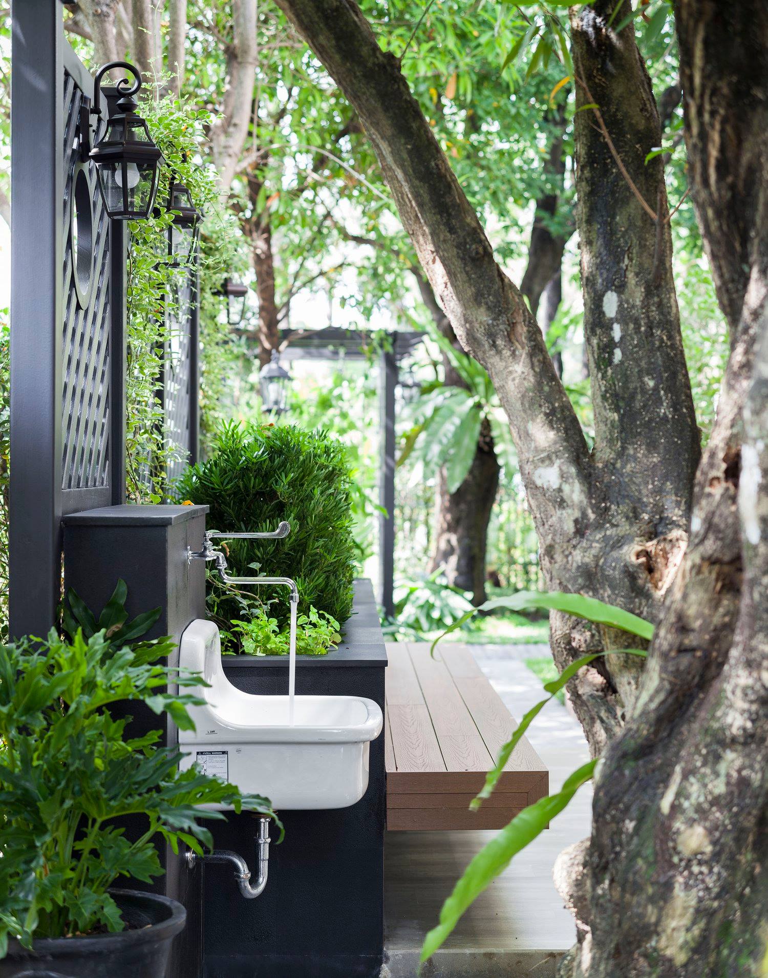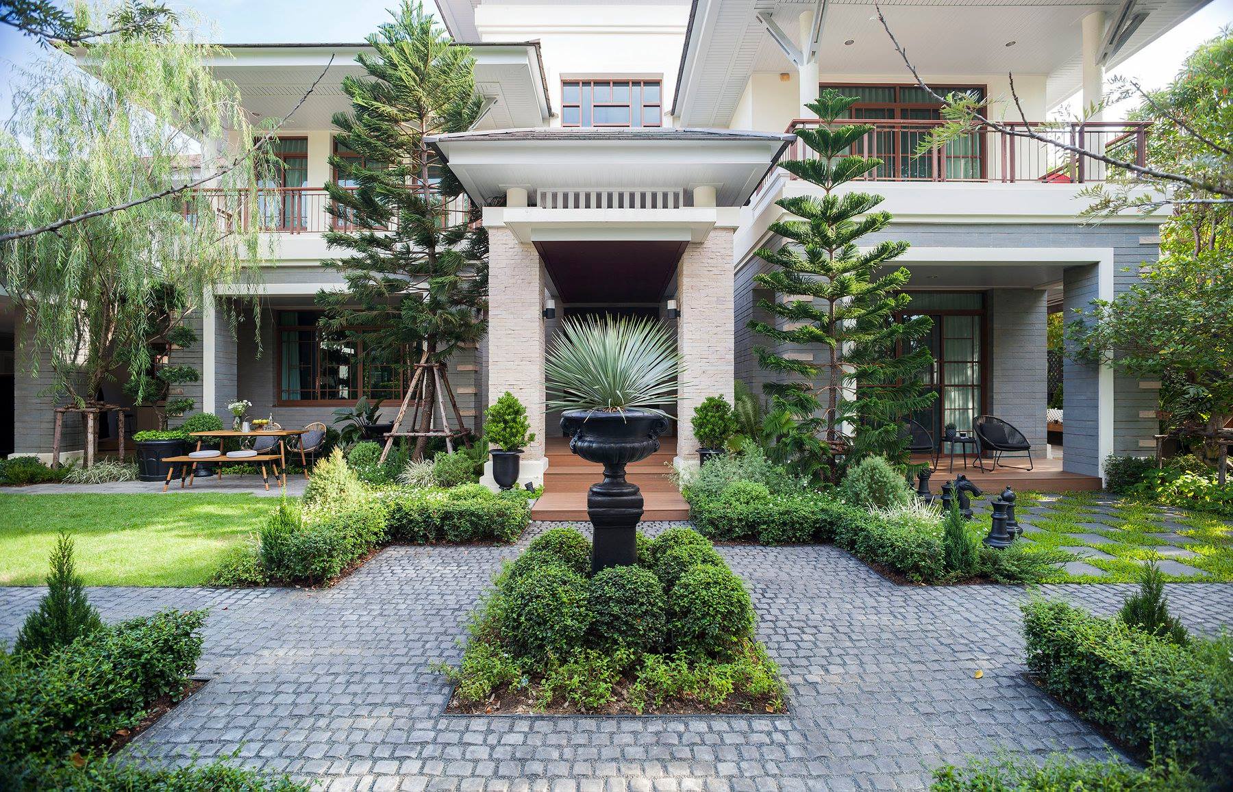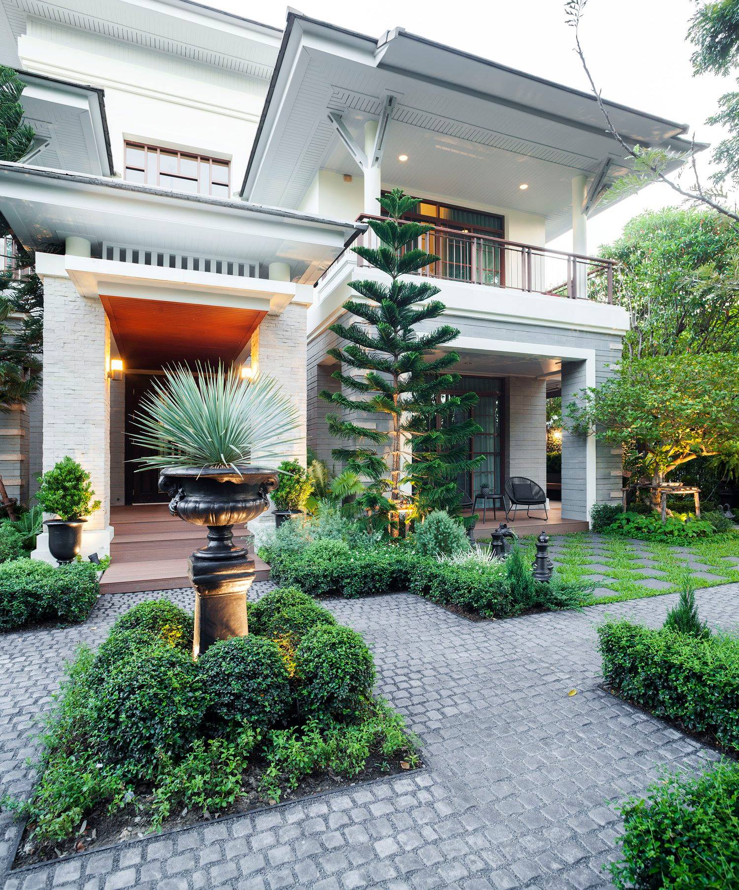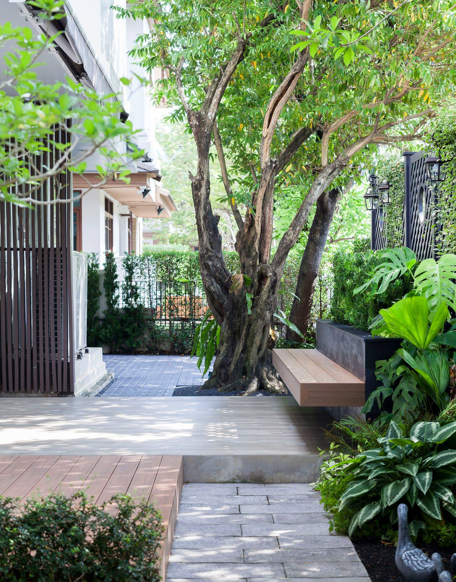สวนนี้ก็เป็นอีกผลงานหนึ่งที่เราภาคภูมิใจ เพราะได้ใส่ไอเดียและฟังก์ชั่นไว้แบบครบครัน แบบที่เรียกได้ว่าไม่มีกั๊ก ทุกจุดผ่านการคิดวิเคราะห์มุมมองให้เกิดความเหมาะสมกับการใช้งานและสวยงามที่สุด ประกอบกับการทำการบ้านระหว่างเจ้าของบ้านและทีมงานของเราในการปรับหาจุดที่ลงตัว ปล่อยอิสระในการออกแบบและจัดสรรพื้นที่ ทำให้เกิดความสอดคล้องกับการใช้งานในชีวิตประจำวัน สวนแห่งนี้จึงตอบโจทย์สำหรับคนรักสวนอังกฤษที่ชอบความเป็นระเบียบเรียบร้อย สะอาด โปร่งโล่ง เดินสะดวกใช้งานสบาย แต่จะสวยงามแค่ไหนตามมาชมภาพกันเลยค่ะ