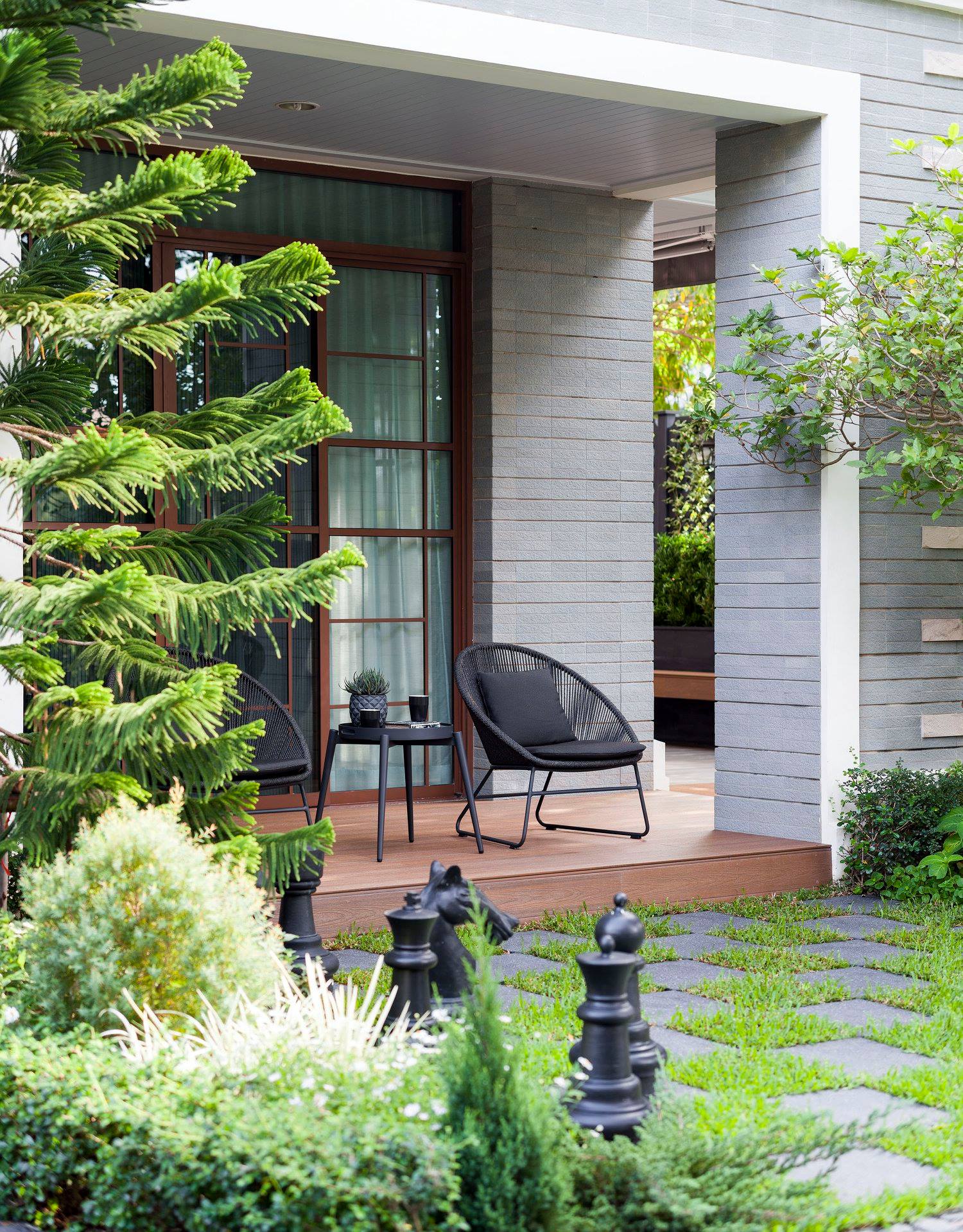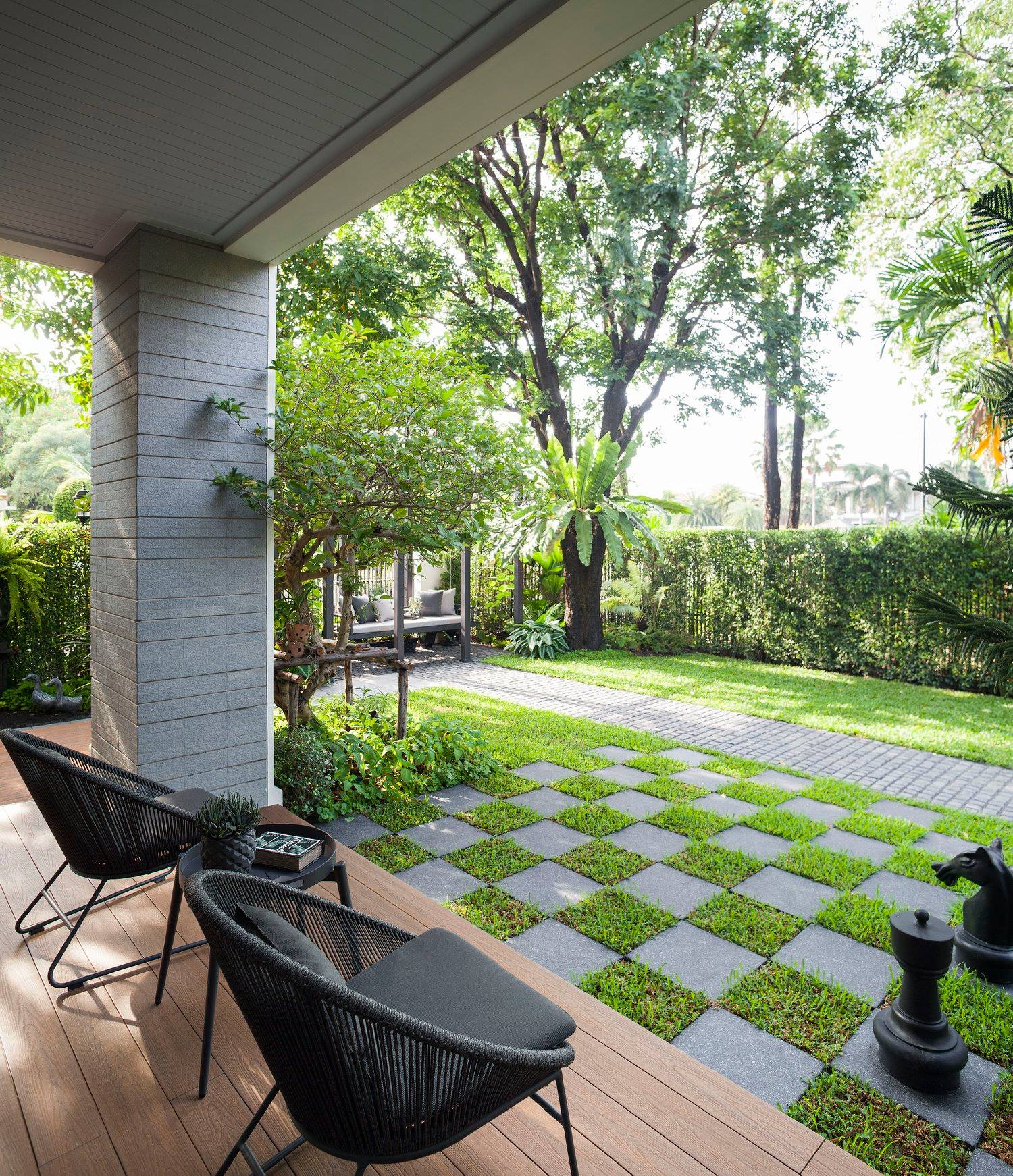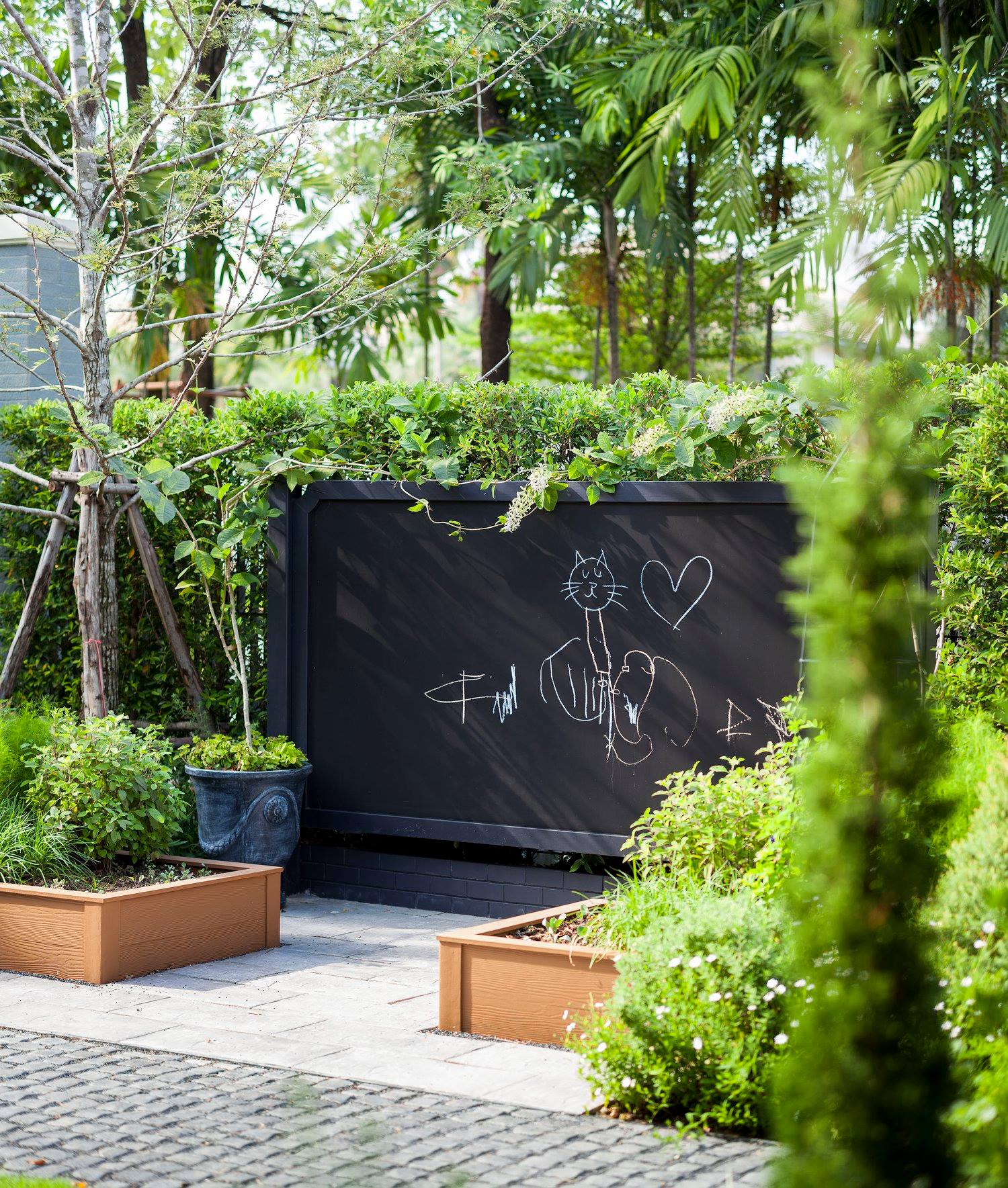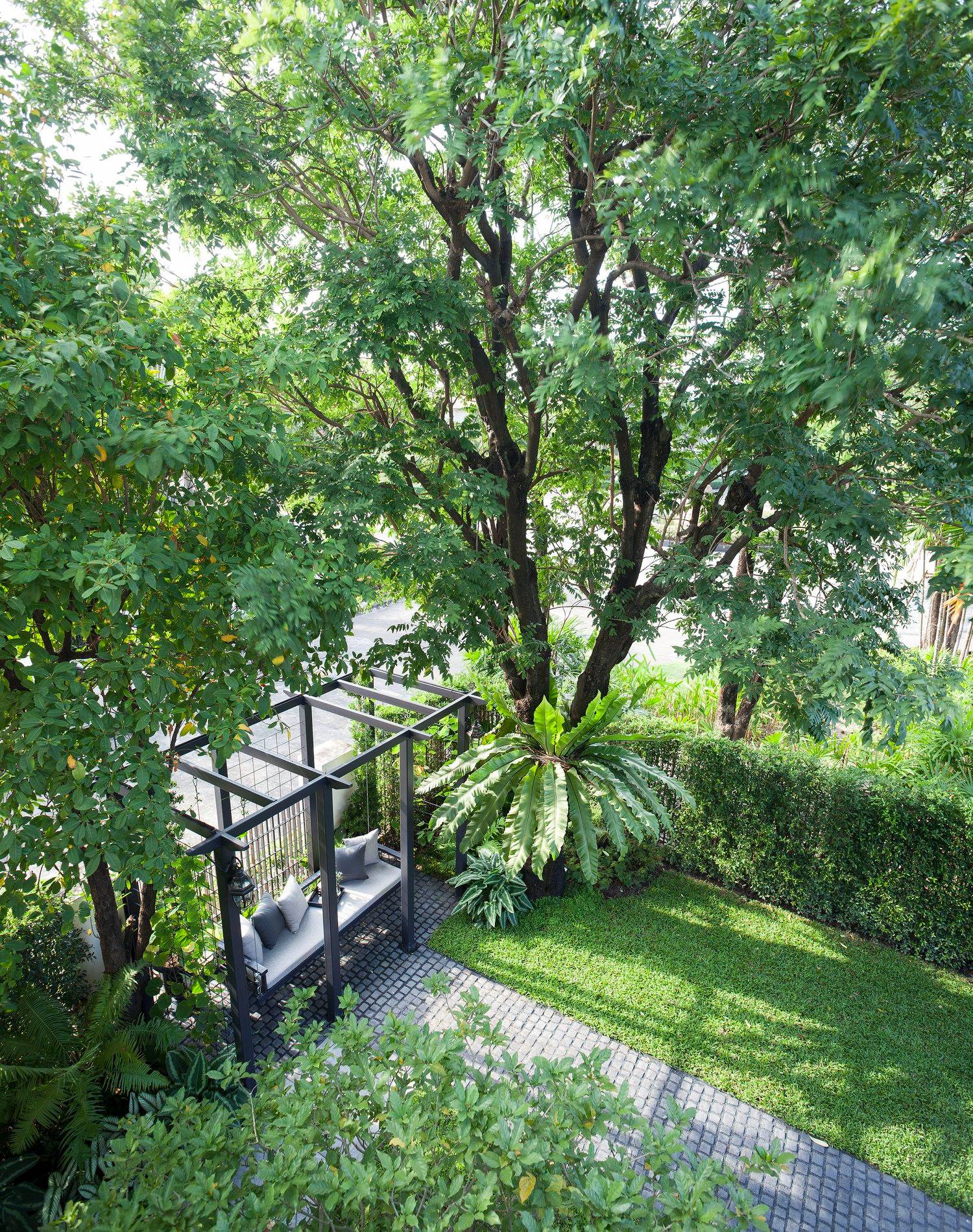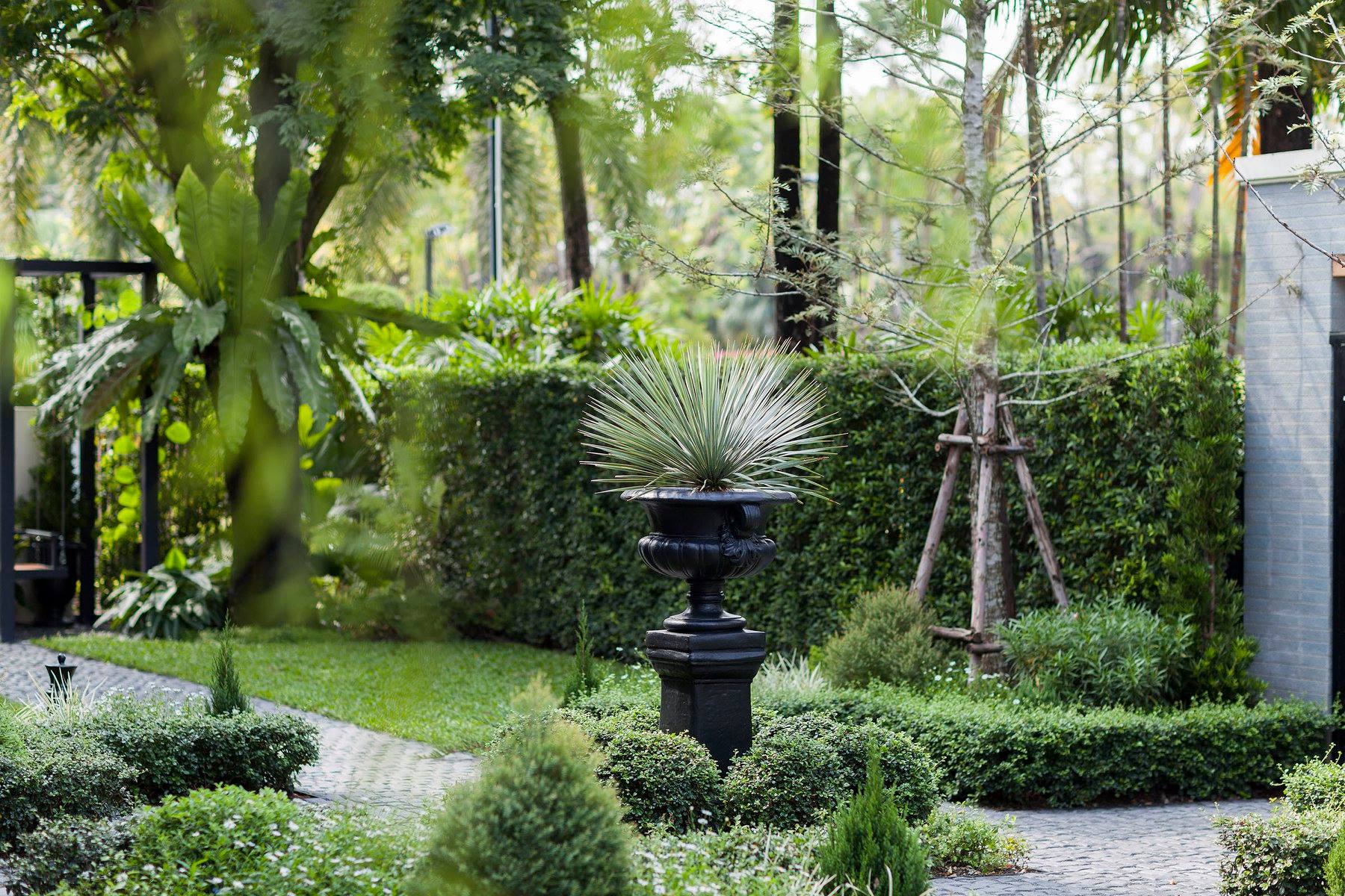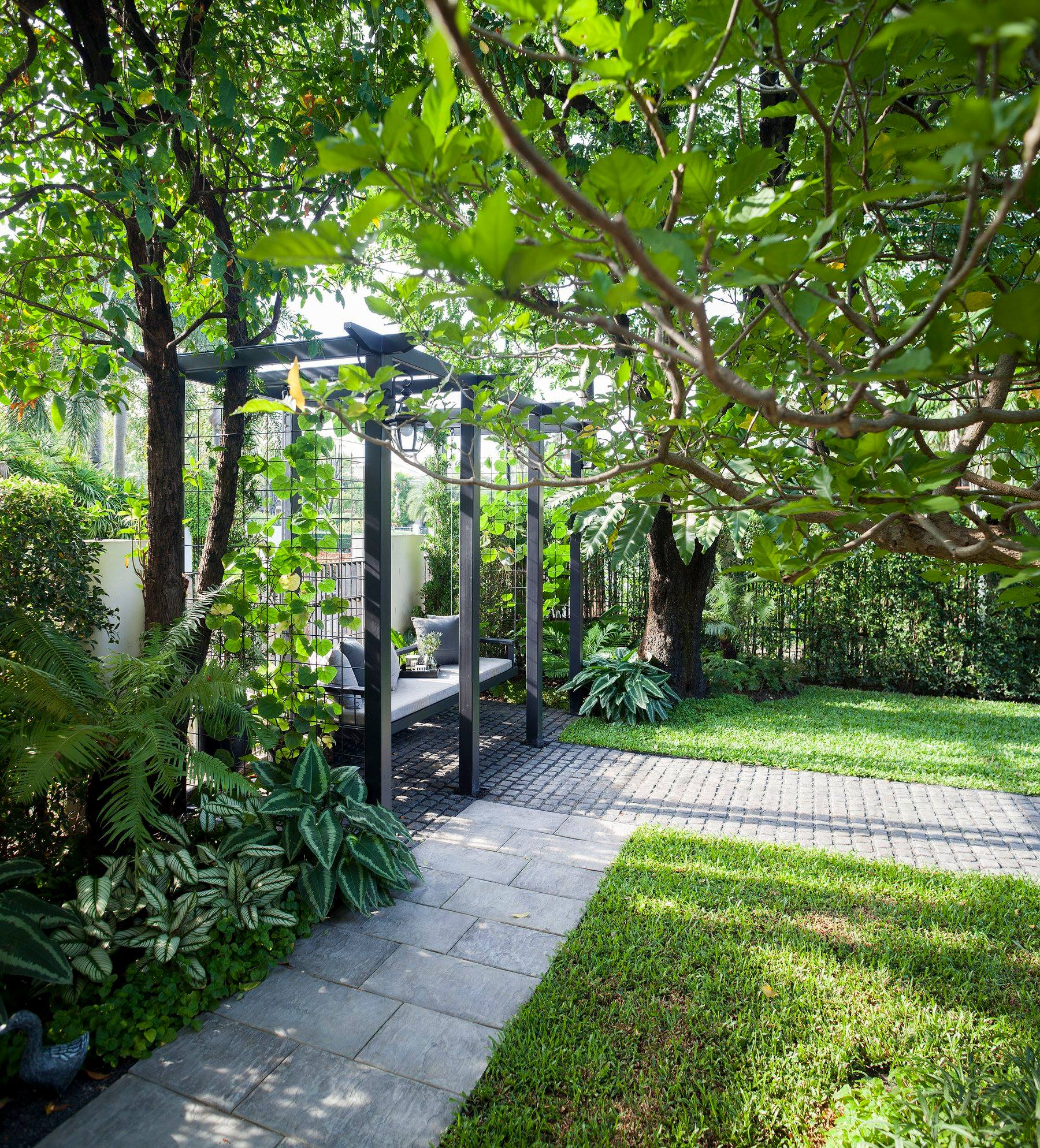 สวนนี้ก็เป็นอีกผลงานหนึ่งที่เราภาคภูมิใจ เพราะได้ใส่ไอเดียและฟังก์ชั่นไว้แบบครบครัน แบบที่เรียกได้ว่าไม่มีกั๊ก ทุกจุดผ่านการคิดวิเคราะห์มุมมองให้เกิดความเหมาะสมกับการใช้งานและสวยงามที่สุด ประกอบกับการทำการบ้านระหว่างเจ้าของบ้านและทีมงานของเราในการปรับหาจุดที่ลงตัว ปล่อยอิสระในการออกแบบและจัดสรรพื้นที่ ทำให้เกิดความสอดคล้องกับการใช้งานในชีวิตประจำวัน สวนแห่งนี้จึงตอบโจทย์สำหรับคนรักสวนอังกฤษที่ชอบความเป็นระเบียบเรียบร้อย สะอาด โปร่งโล่ง เดินสะดวกใช้งานสบาย แต่จะสวยงามแค่ไหนตามมาชมภาพกันเลยค่ะ