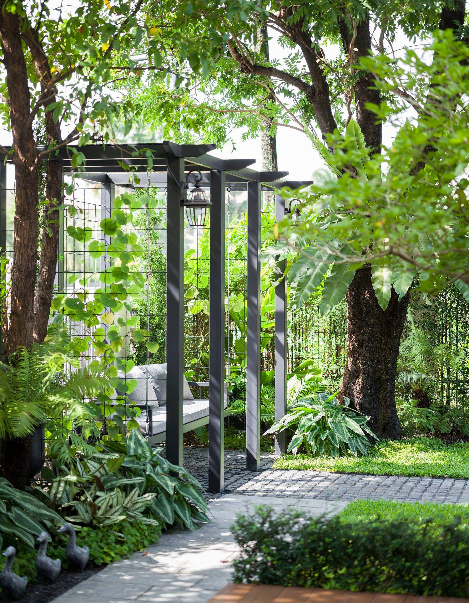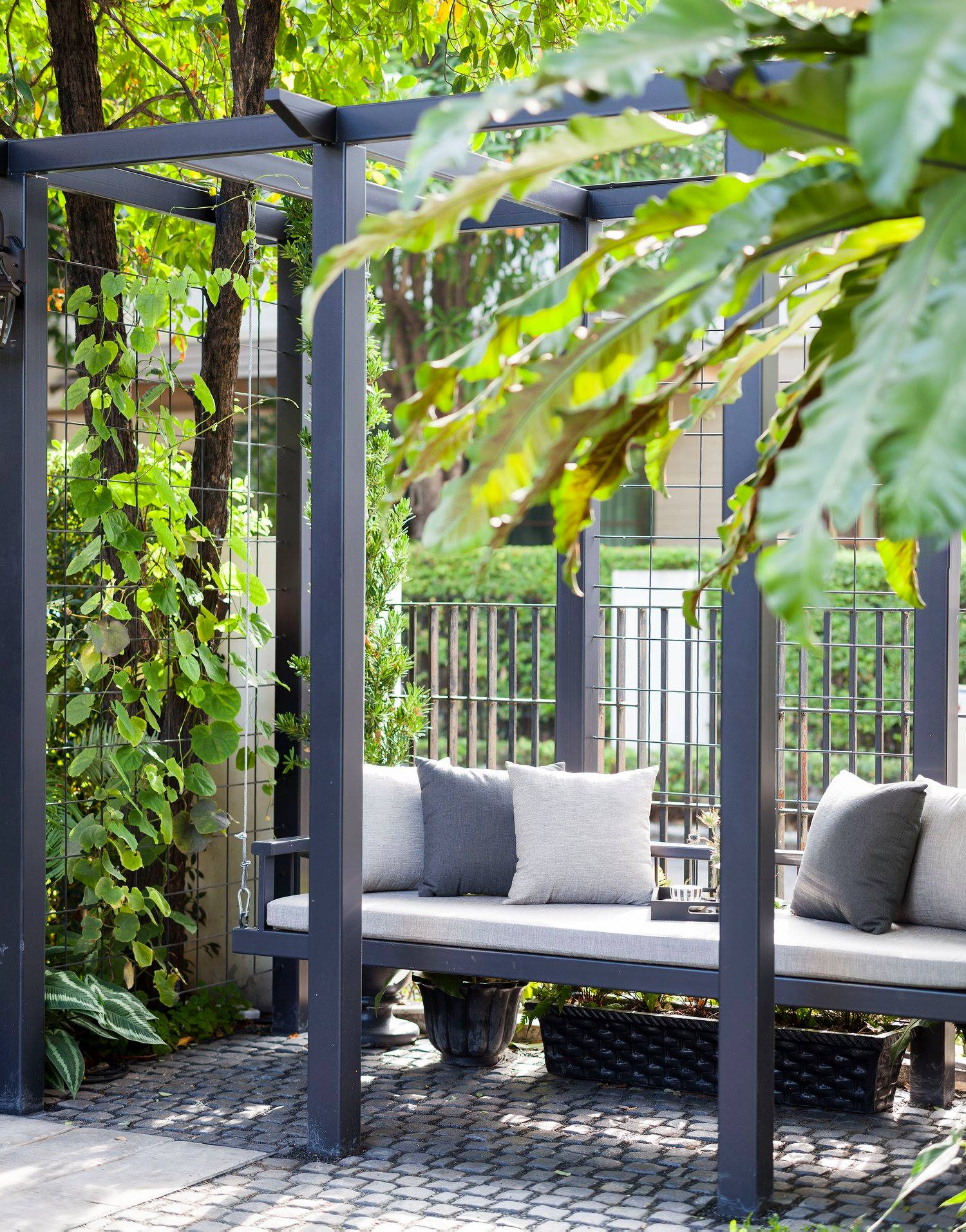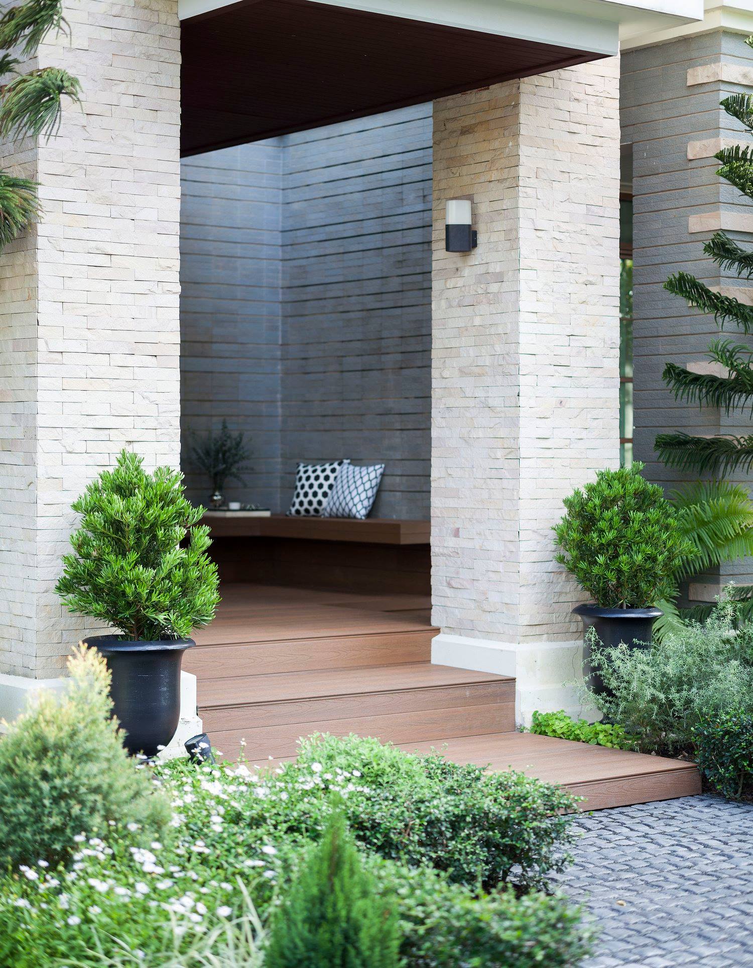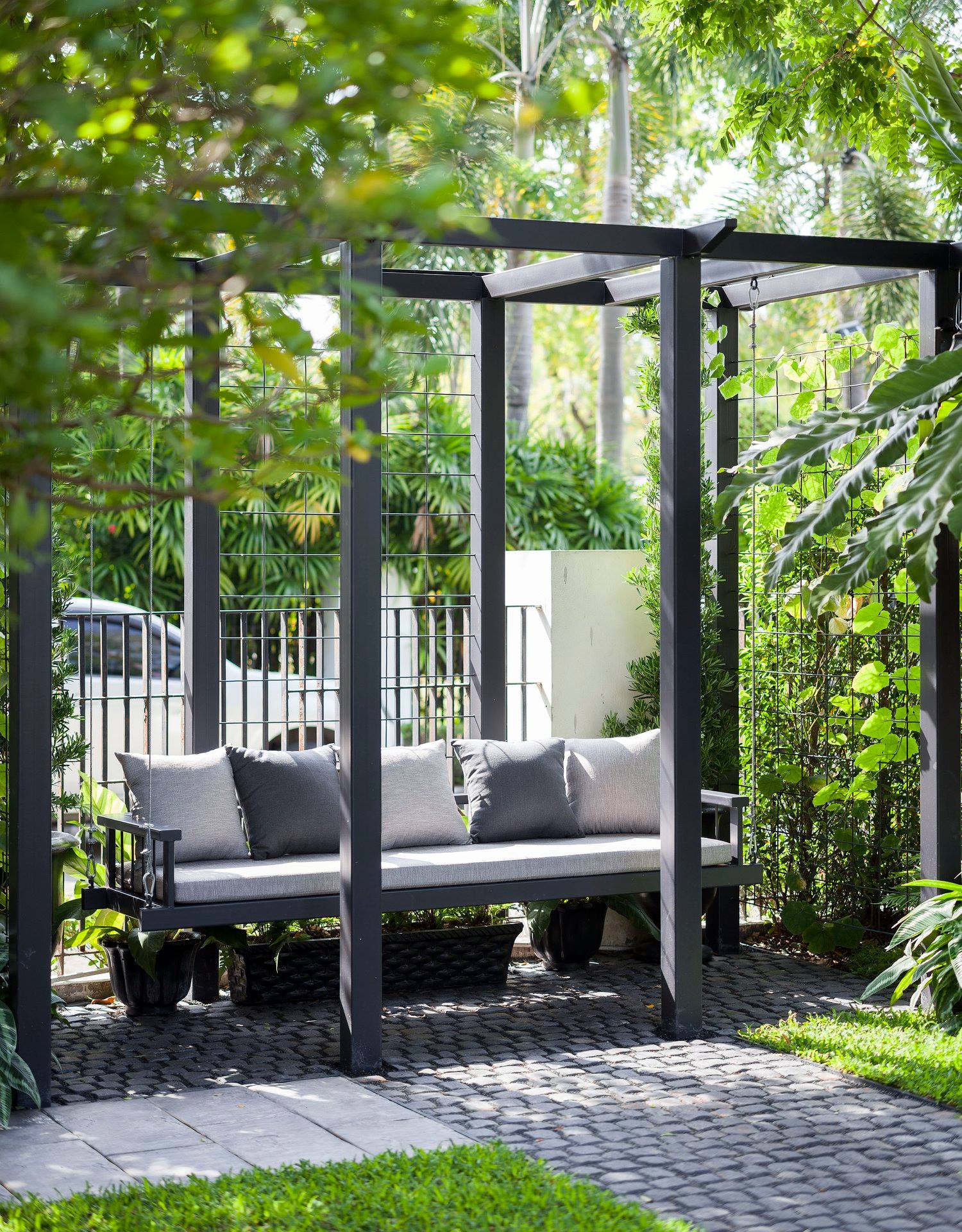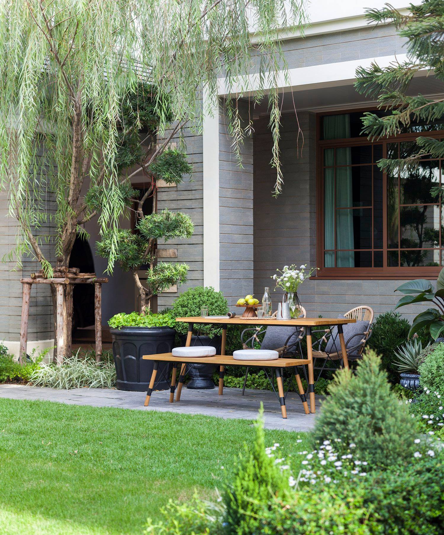 สวนนี้ก็เป็นอีกผลงานหนึ่งที่เราภาคภูมิใจ เพราะได้ใส่ไอเดียและฟังก์ชั่นไว้แบบครบครัน แบบที่เรียกได้ว่าไม่มีกั๊ก ทุกจุดผ่านการคิดวิเคราะห์มุมมองให้เกิดความเหมาะสมกับการใช้งานและสวยงามที่สุด ประกอบกับการทำการบ้านระหว่างเจ้าของบ้านและทีมงานของเราในการปรับหาจุดที่ลงตัว ปล่อยอิสระในการออกแบบและจัดสรรพื้นที่ ทำให้เกิดความสอดคล้องกับการใช้งานในชีวิตประจำวัน สวนแห่งนี้จึงตอบโจทย์สำหรับคนรักสวนอังกฤษที่ชอบความเป็นระเบียบเรียบร้อย สะอาด โปร่งโล่ง เดินสะดวกใช้งานสบาย แต่จะสวยงามแค่ไหนตามมาชมภาพกันเลยค่ะ