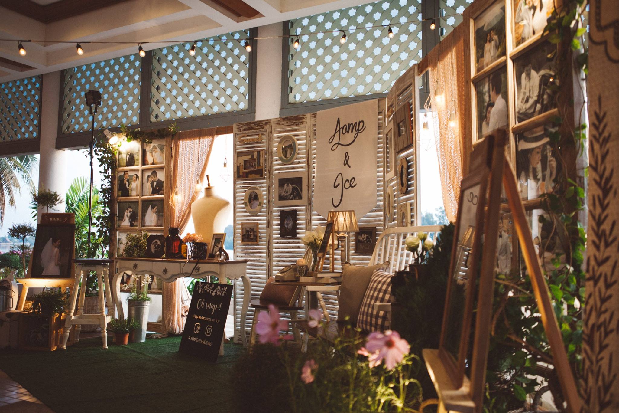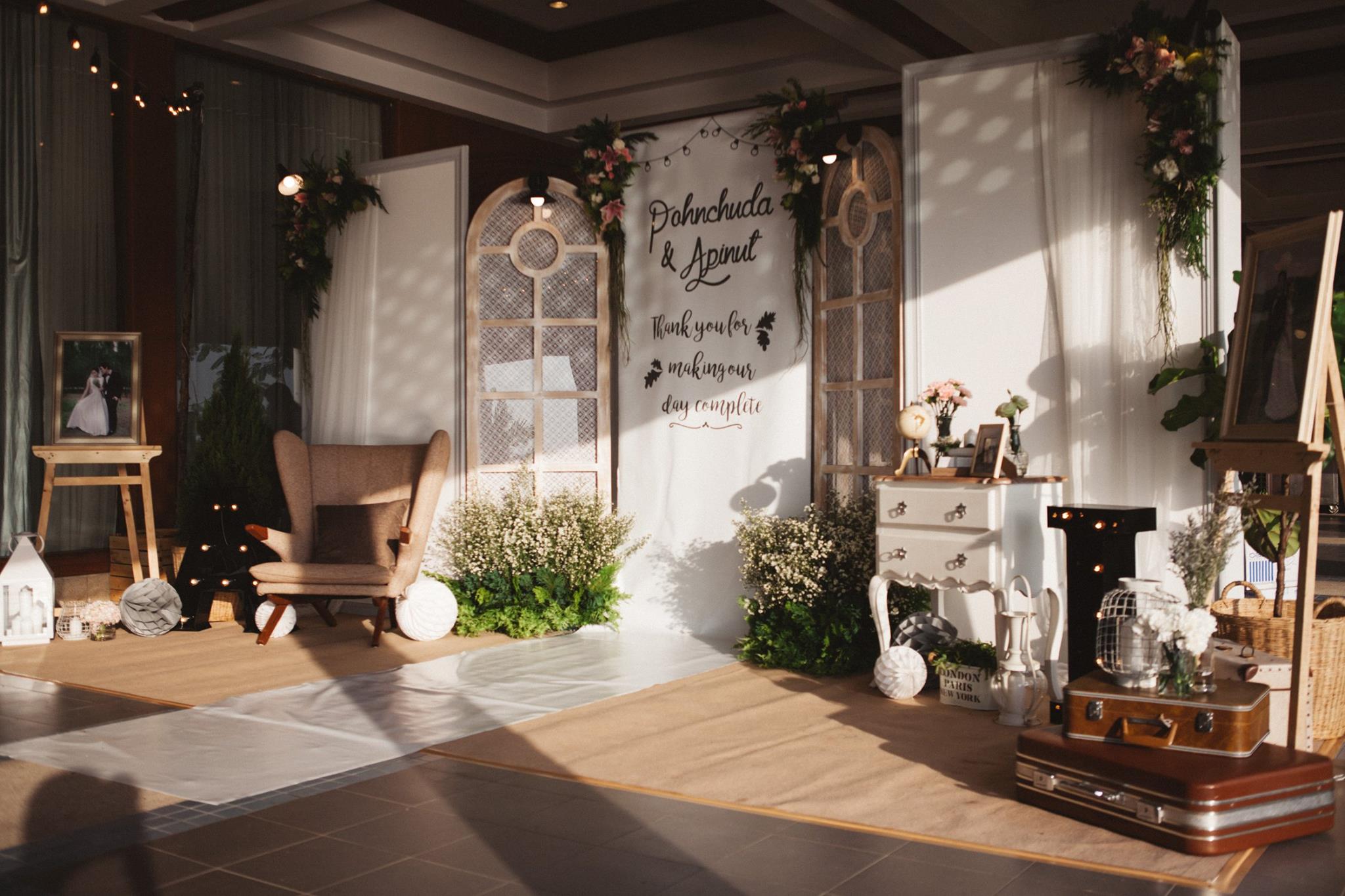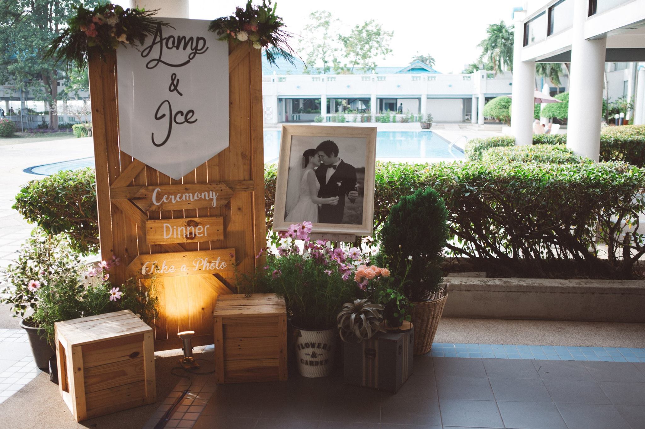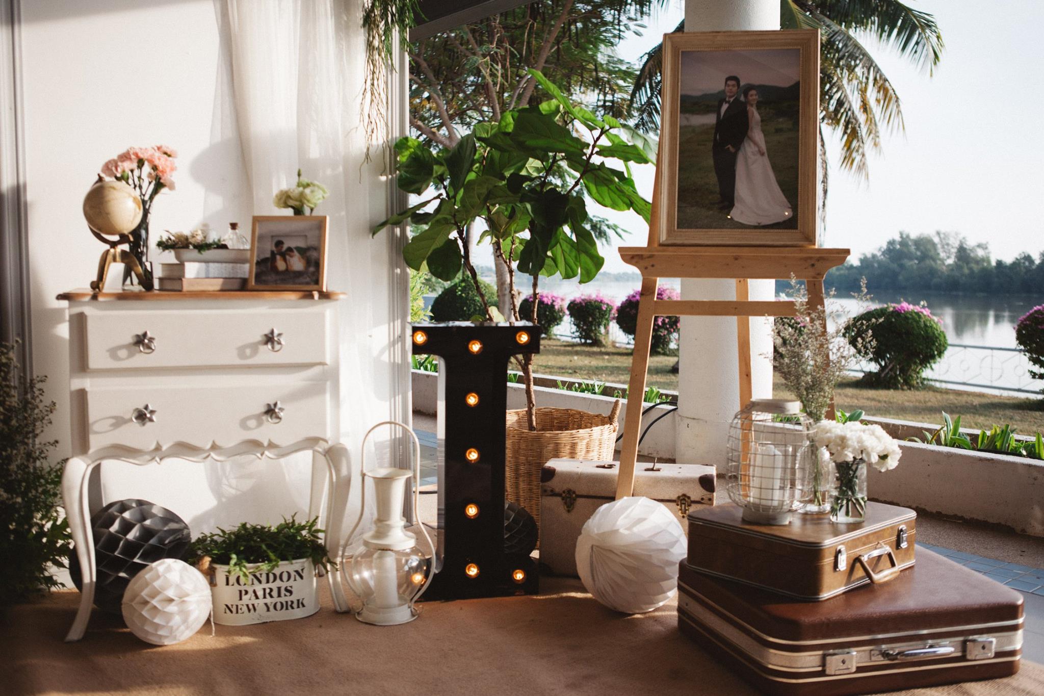 งานนี้ต้องขอขอบคุณคุณอ้อมและคุณไอซ์ที่มั่นใจทีม Shabby Chic Gardens ให้มีโอกาสได้มีส่วนร่วมในวันสำคัญของทั้งคู่่ค่ะ งานนี้จัดกันที่ริมแม่น้ำบางปะกง จ.ฉะเชิงเทรา กันเลยที่เดียวค่ะ คุณหมอไอซ์เจ้าบ่าวจองงานกันตั้งแต่ต้นปีกันเลยทีเดียว เพื่อให้ได้คิวกับทีมของเรา นับเป็นคู่ที่น่ารักคู่หนึ่ง ด้วยสไตล์ที่ชื่นชอบตรงกับสไตล์การตกแต่งของทีมเราอยู่แล้ว ทำให้คุยกันง่าย ทั้งคู่จึงปล่อยนุ่นใส่ไอเดียได้เต็มแม็ค ประกอบกับคุณอ้อมเจ้าสาวได้ให้คอนเซ็ปที่ชอบซึ่งตรงกับสไตล์เรามากๆ เรียบง่าย ไม่หรูหรา อบอุ่น แบบไม่ซ้ำใคร เราเลยจัดไปค่ะ งานนี้มีเวลาให้เราได้แต่งเติมกันพอสมควร จึงทำให้รายละเอียดค่อนข้างสมบูรณ์ และเป็นงานหนึ่งที่เราประทับใจมากๆ ค่ะ