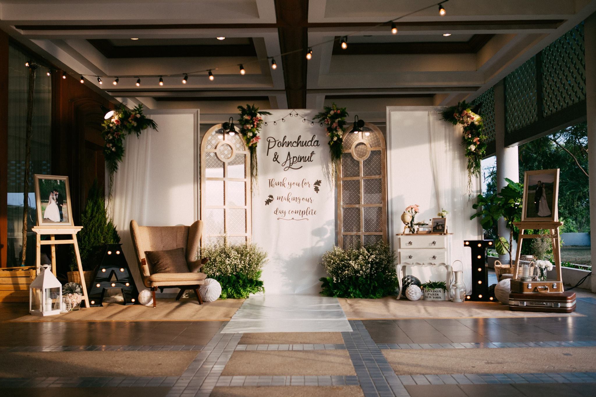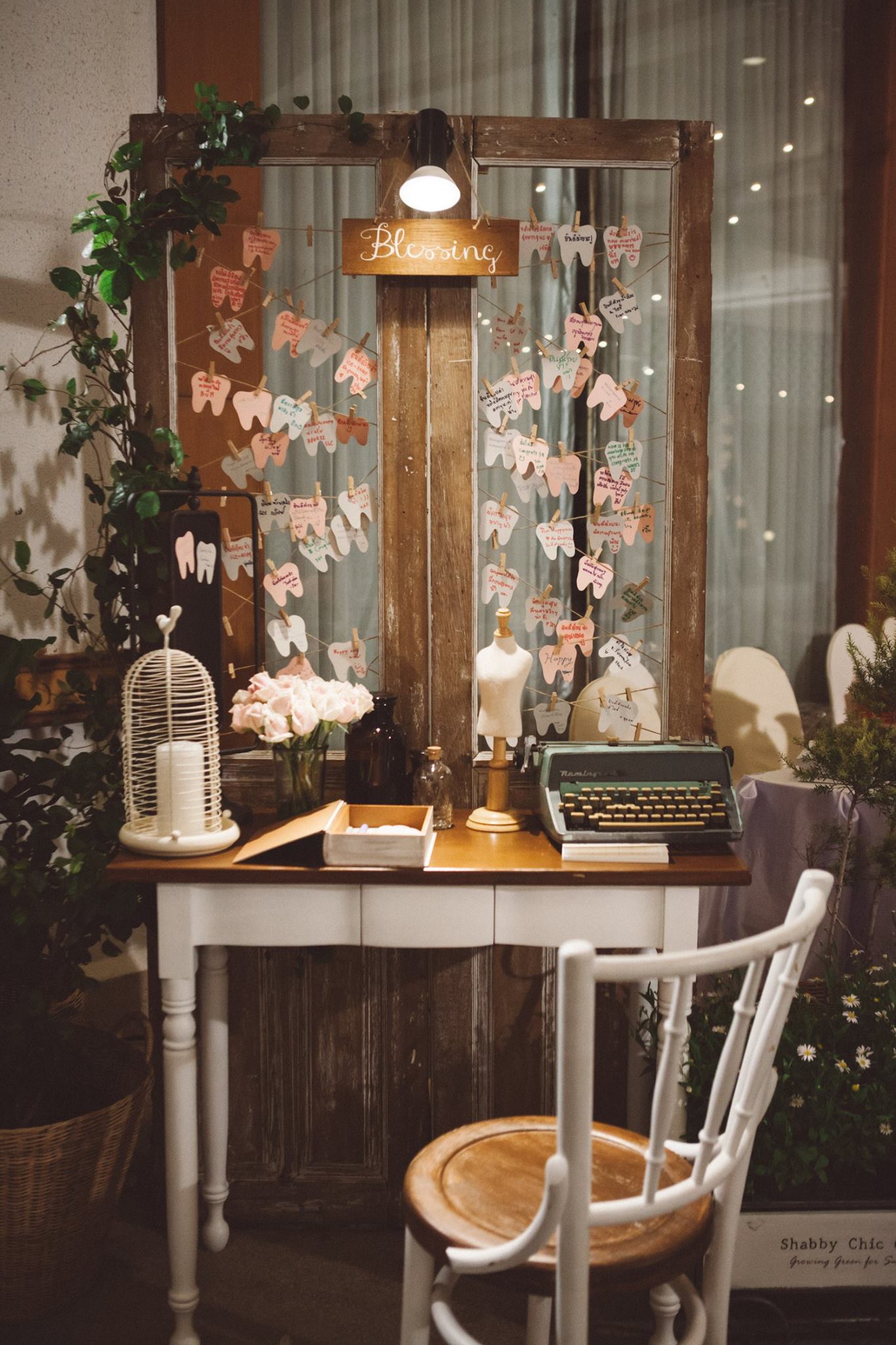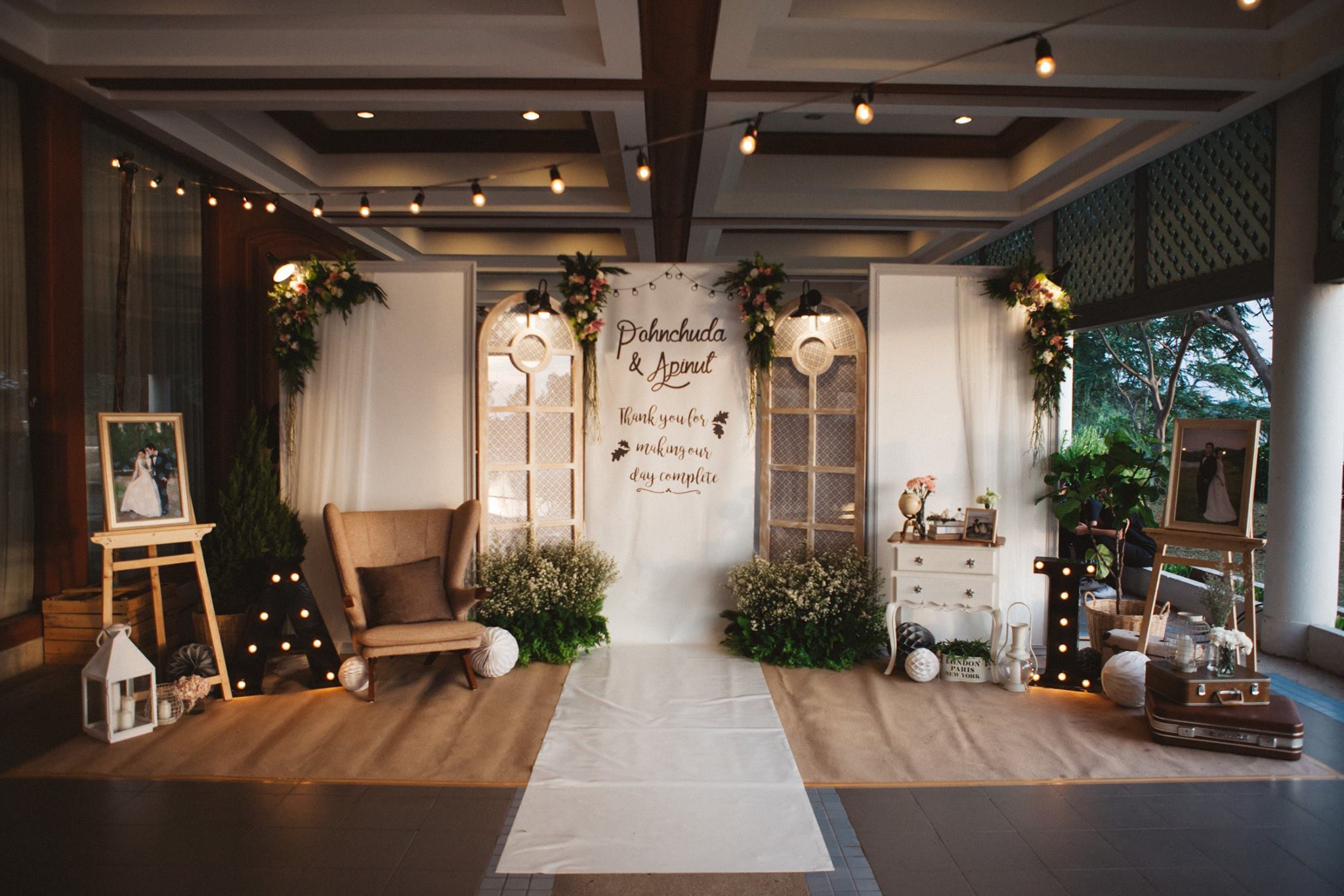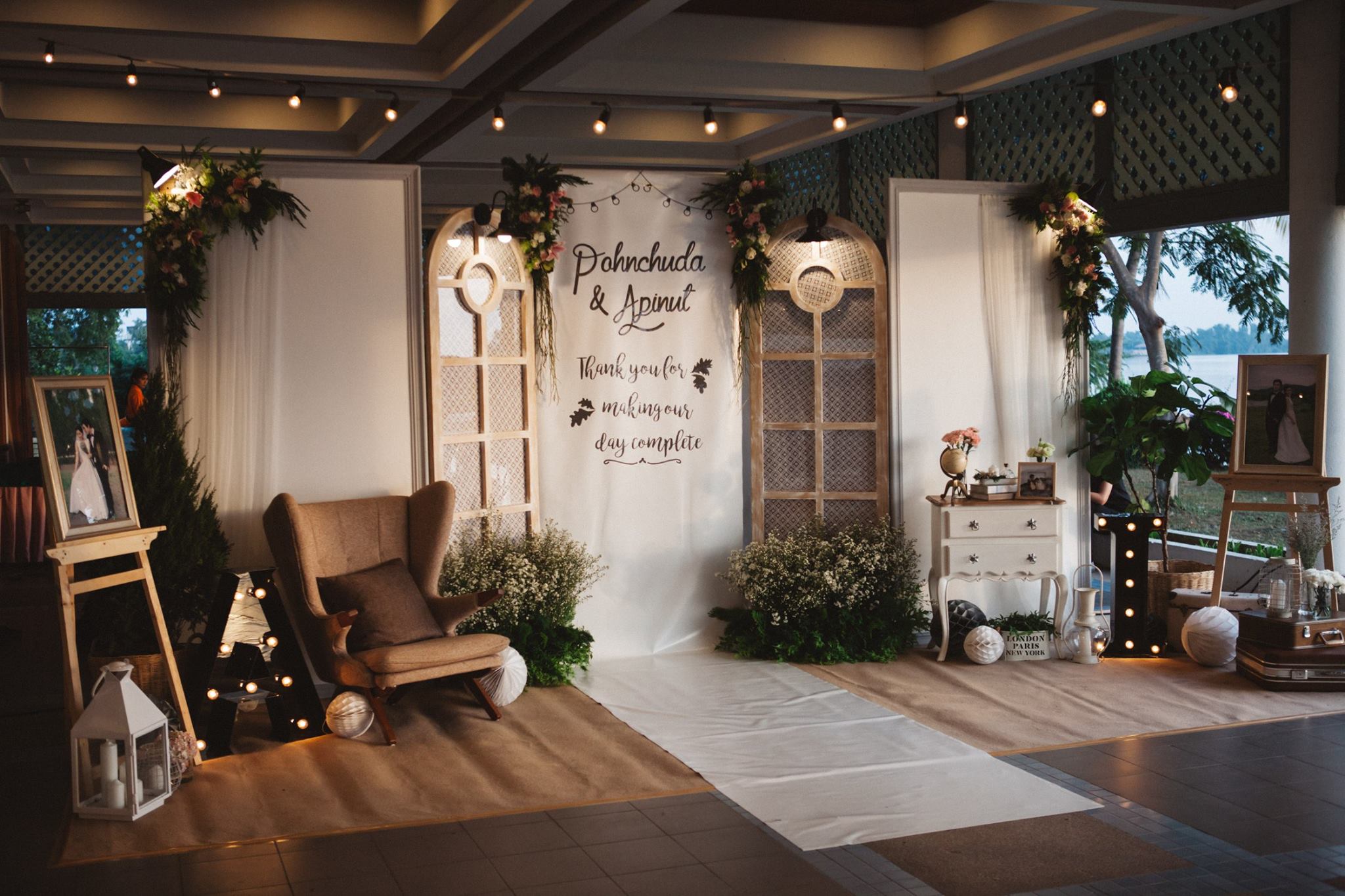งานนี้ต้องขอขอบคุณคุณอ้อมและคุณไอซ์ที่มั่นใจทีม Shabby Chic Gardens ให้มีโอกาสได้มีส่วนร่วมในวันสำคัญของทั้งคู่่ค่ะ งานนี้จัดกันที่ริมแม่น้ำบางปะกง จ.ฉะเชิงเทรา กันเลยที่เดียวค่ะ คุณหมอไอซ์เจ้าบ่าวจองงานกันตั้งแต่ต้นปีกันเลยทีเดียว เพื่อให้ได้คิวกับทีมของเรา นับเป็นคู่ที่น่ารักคู่หนึ่ง ด้วยสไตล์ที่ชื่นชอบตรงกับสไตล์การตกแต่งของทีมเราอยู่แล้ว ทำให้คุยกันง่าย ทั้งคู่จึงปล่อยนุ่นใส่ไอเดียได้เต็มแม็ค ประกอบกับคุณอ้อมเจ้าสาวได้ให้คอนเซ็ปที่ชอบซึ่งตรงกับสไตล์เรามากๆ เรียบง่าย ไม่หรูหรา อบอุ่น แบบไม่ซ้ำใคร เราเลยจัดไปค่ะ งานนี้มีเวลาให้เราได้แต่งเติมกันพอสมควร จึงทำให้รายละเอียดค่อนข้างสมบูรณ์ และเป็นงานหนึ่งที่เราประทับใจมากๆ ค่ะ