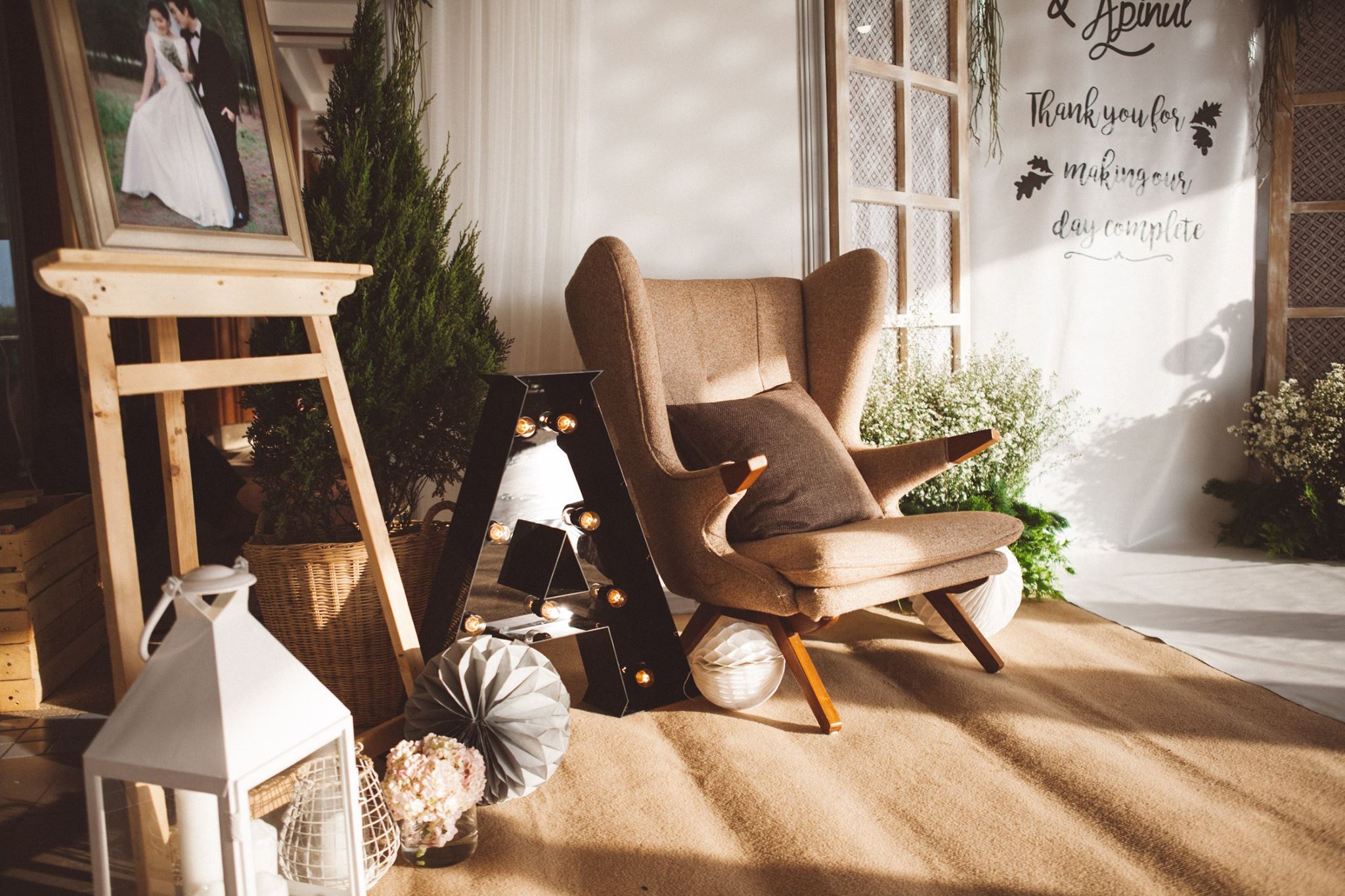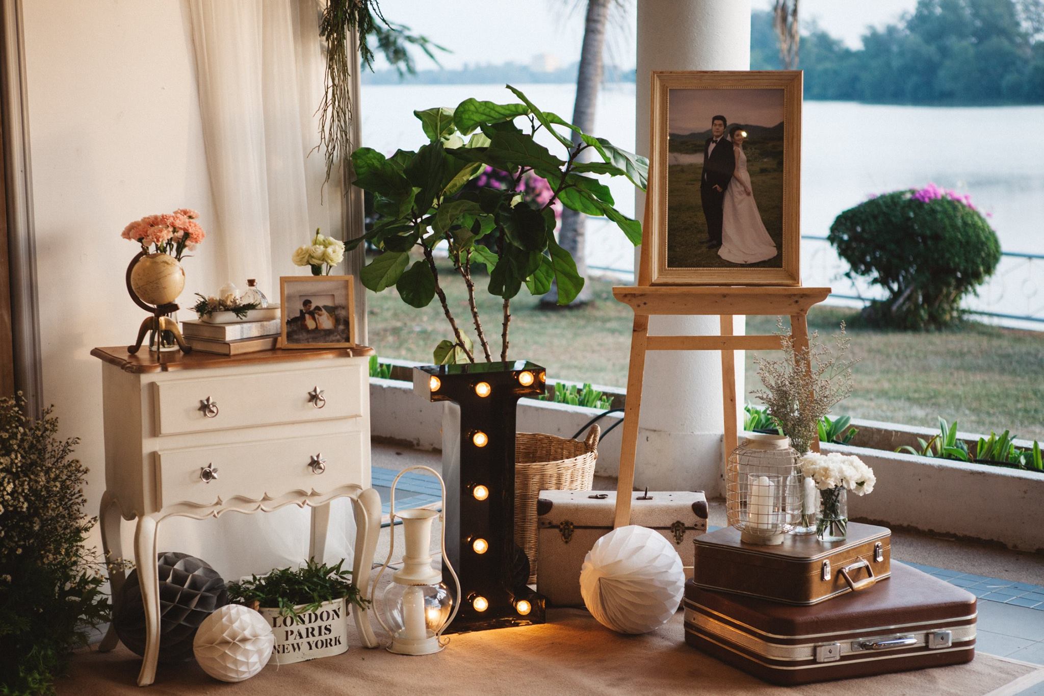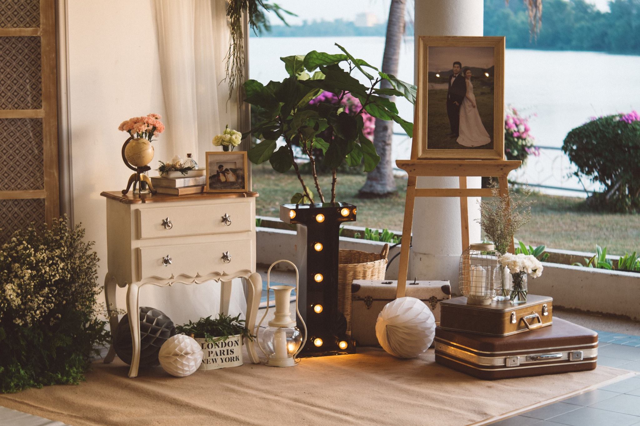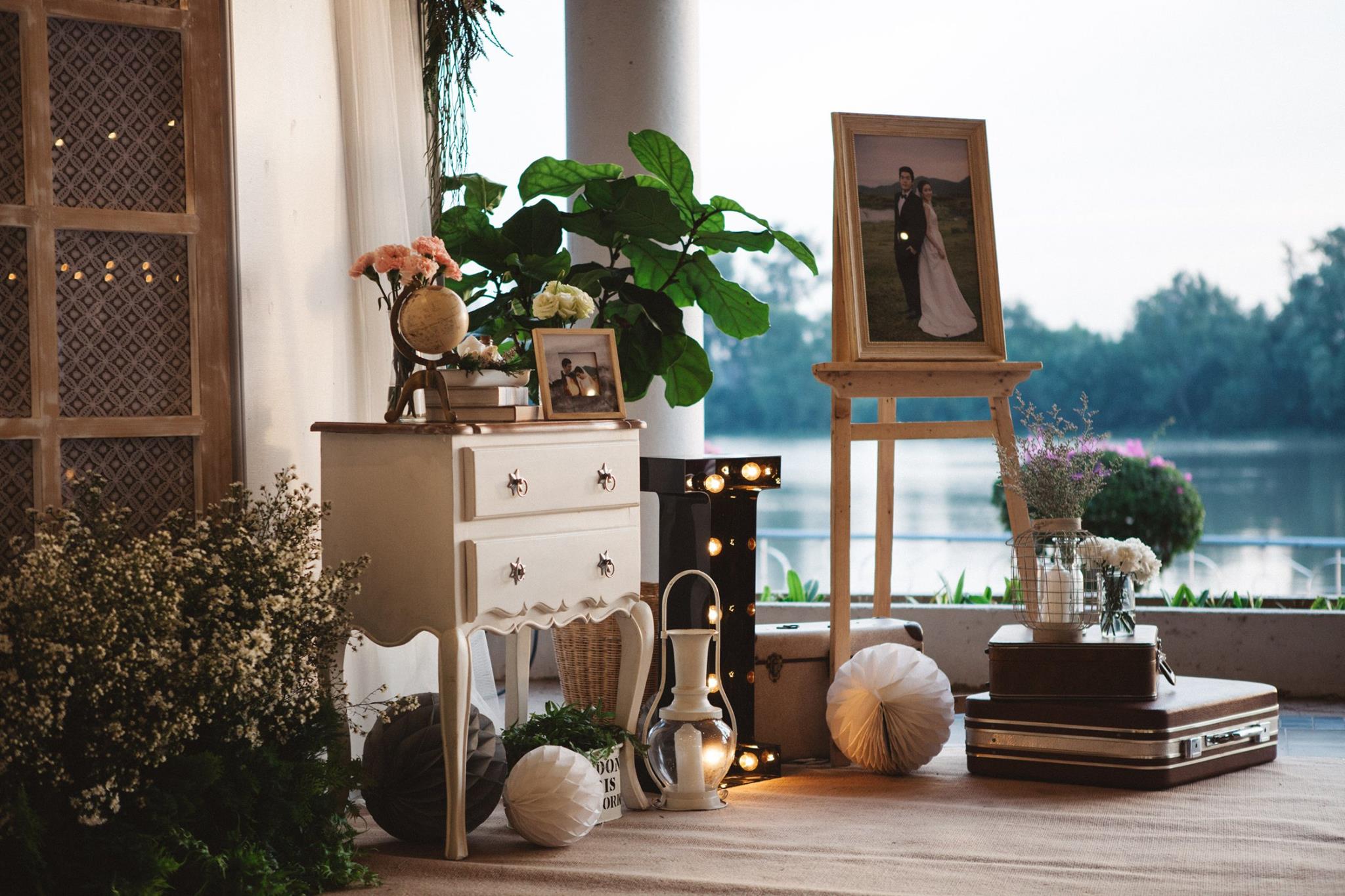 งานนี้ต้องขอขอบคุณคุณอ้อมและคุณไอซ์ที่มั่นใจทีม Shabby Chic Gardens ให้มีโอกาสได้มีส่วนร่วมในวันสำคัญของทั้งคู่่ค่ะ งานนี้จัดกันที่ริมแม่น้ำบางปะกง จ.ฉะเชิงเทรา กันเลยที่เดียวค่ะ คุณหมอไอซ์เจ้าบ่าวจองงานกันตั้งแต่ต้นปีกันเลยทีเดียว เพื่อให้ได้คิวกับทีมของเรา นับเป็นคู่ที่น่ารักคู่หนึ่ง ด้วยสไตล์ที่ชื่นชอบตรงกับสไตล์การตกแต่งของทีมเราอยู่แล้ว ทำให้คุยกันง่าย ทั้งคู่จึงปล่อยนุ่นใส่ไอเดียได้เต็มแม็ค ประกอบกับคุณอ้อมเจ้าสาวได้ให้คอนเซ็ปที่ชอบซึ่งตรงกับสไตล์เรามากๆ เรียบง่าย ไม่หรูหรา อบอุ่น แบบไม่ซ้ำใคร เราเลยจัดไปค่ะ งานนี้มีเวลาให้เราได้แต่งเติมกันพอสมควร จึงทำให้รายละเอียดค่อนข้างสมบูรณ์ และเป็นงานหนึ่งที่เราประทับใจมากๆ ค่ะ