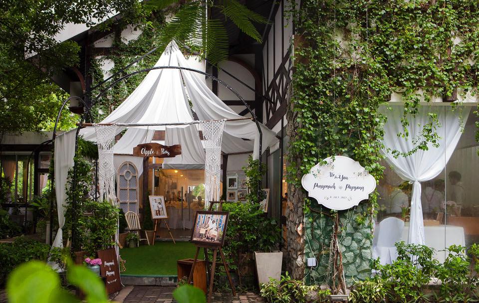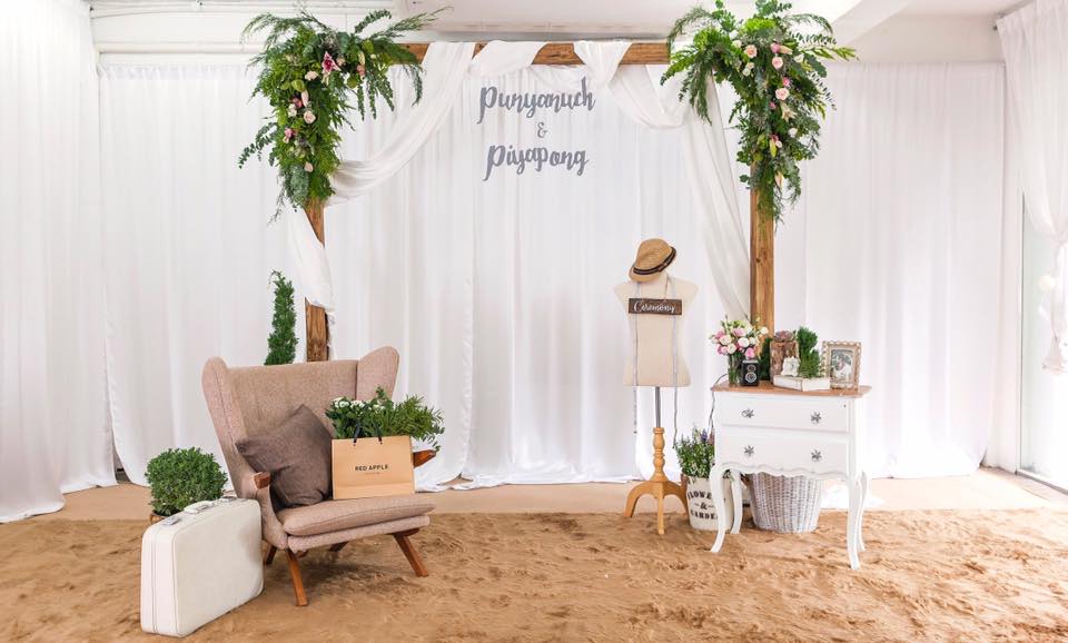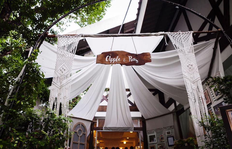 ขอขอบคุณและยินดีเป็นอย่างมาก ที่คุณเปิ้ลและคุณบาสได้ไว้ใจนุ่นและทีมงาน Shabby Chic Gardens ให้ดูแลงานตกแต่งสถานที่ในวันสำคัญของทั้งคู่นะคะ เป็นคู่ที่น่ารักมาก และเป็นเหมือนเป็นส่วนผสมที่ดูลงตัวจริงๆ ค่ะ งานนี้ถูกออกแบบตามโจทย์ที่ทั้งคู่ต้องการ ด้วยทั้งคู่ต้องการความเรียบง่าย แต่แฝงด้วยรายละเอียดที่น่าสนใจ และบ่งบอกความเป็นตัวตนของตัวเอง ในทุกจุดจึงเป็นการผสมผสานระหว่างสองฝ่าย จนได้ผลงานเก๋ๆ ทีมมีความปลื้มปริ่มมากเพราะงานน่ารักอย่างที่คิดไว้ และฝนก็ดูจะเป็นใจไม่ใจร้ายกับพวกเราจนเกินไป เพราะแม้จะเป็นฤดูฝนแต่วันงานฝนก็ไม่ตก ทำให้บ่าวสาวและแขกผู้มีเกียรติได้เก็บภาพสวยๆ กันได้อย่างจุใจกันเลยค่ะ