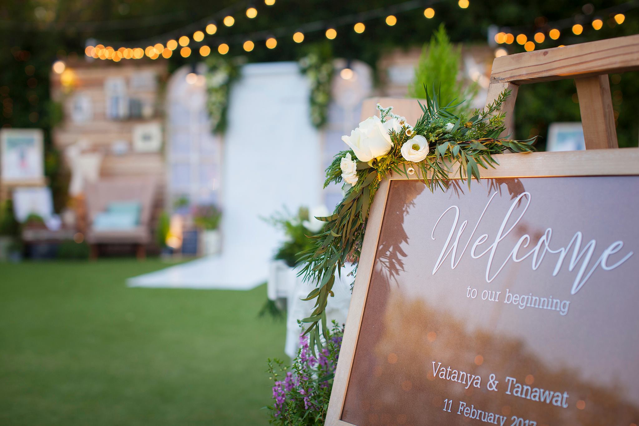 ต้องขอขอบคุณคุณต้าและคุณป๊อปที่ไว้ใจ Shabby Chic Gardens ได้ดูแลงานตกแต่งสถานที่ในวันสำคัญนะคะ งานนี้จัดกันกลางแจ้งท่ามกลางอุณหภูมิปรอทแทบทะลุกันเลยทีเดียว เรียกว่าเป็นความยากระดับ 10 ที่ดอกไม้สดสำหรับใช้ประดับในงานจะสามารถทนทานได้ กว่าจะได้ติดดอกไม้ก็เกือบจะบ่าย 4 โมงกันแล้วจ้า แต่ด้วยพลังของทีมที่แสนถึกและบึกบึนเราก็สามารถเสกงานได้อย่างที่เห็นกันนี่แหละคร้า (ขอยาดมด่วน…ลมแทบจับกันเลยทีเดียว 55555)